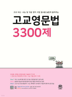 고교영문법 3300제 답지 해설은 고등학생을 위한 종합 영문법 문제집입니다. 이 교재는 기초부터 심화까지 다양한 난이도의 영문법 문제를 총 3300개 수록하여, 학생들이 문법 개념을 완벽하게 이해하고 실제 문제에 적용하는 능력을 기를 수 있도록 돕습니다. 명사, 대명사, 동사, 시제, 조동사, 수동태, 가정법, 관계사, 분사, 전치사 등 고교 과정에서 다루는 모든 영문법 영역을 체계적으로 다루며, 각 단원별로 충분한 연습 문제를 제공하여 학습 효과를 극대화합니다.