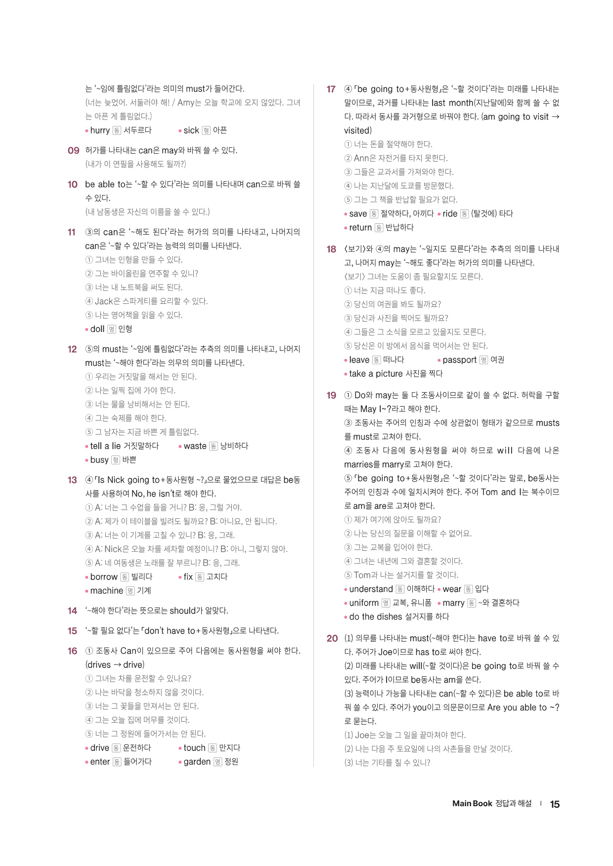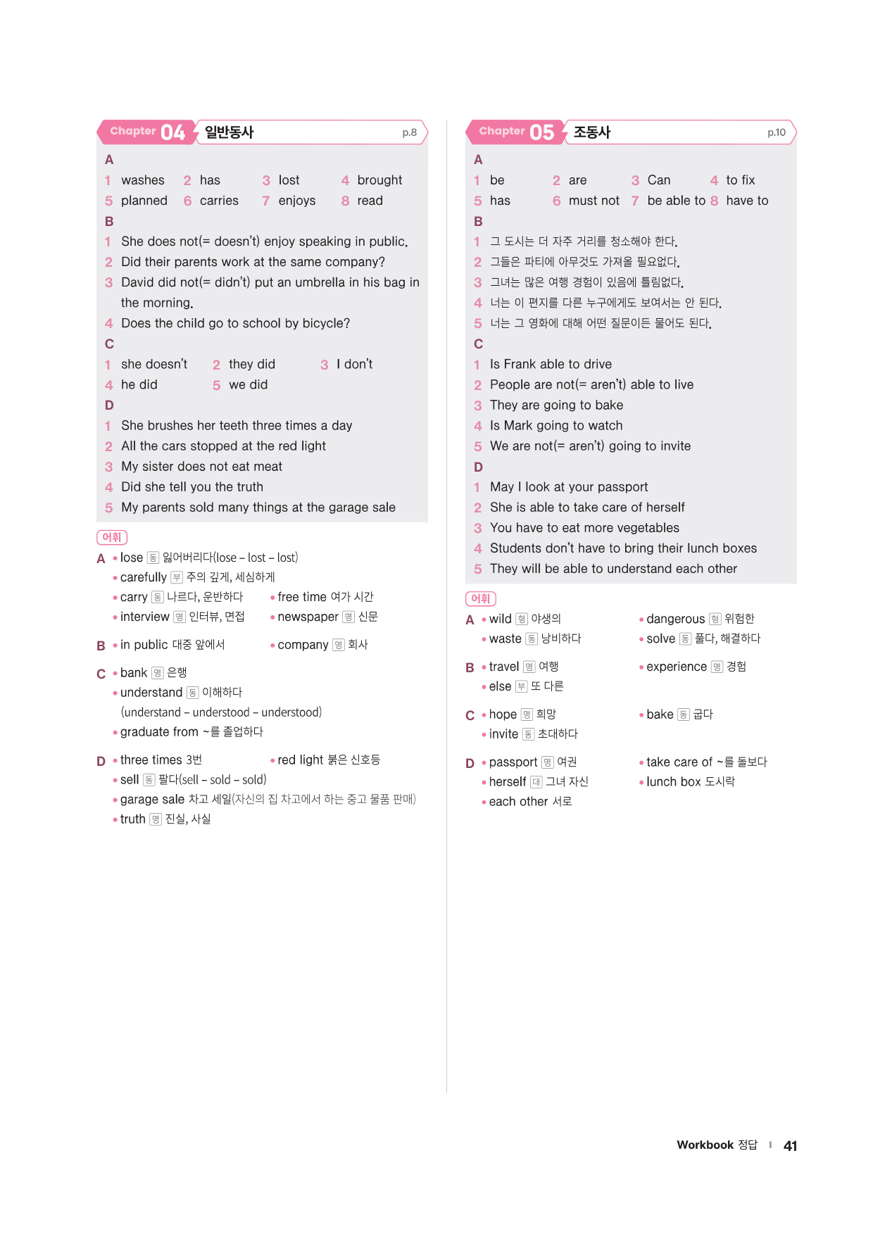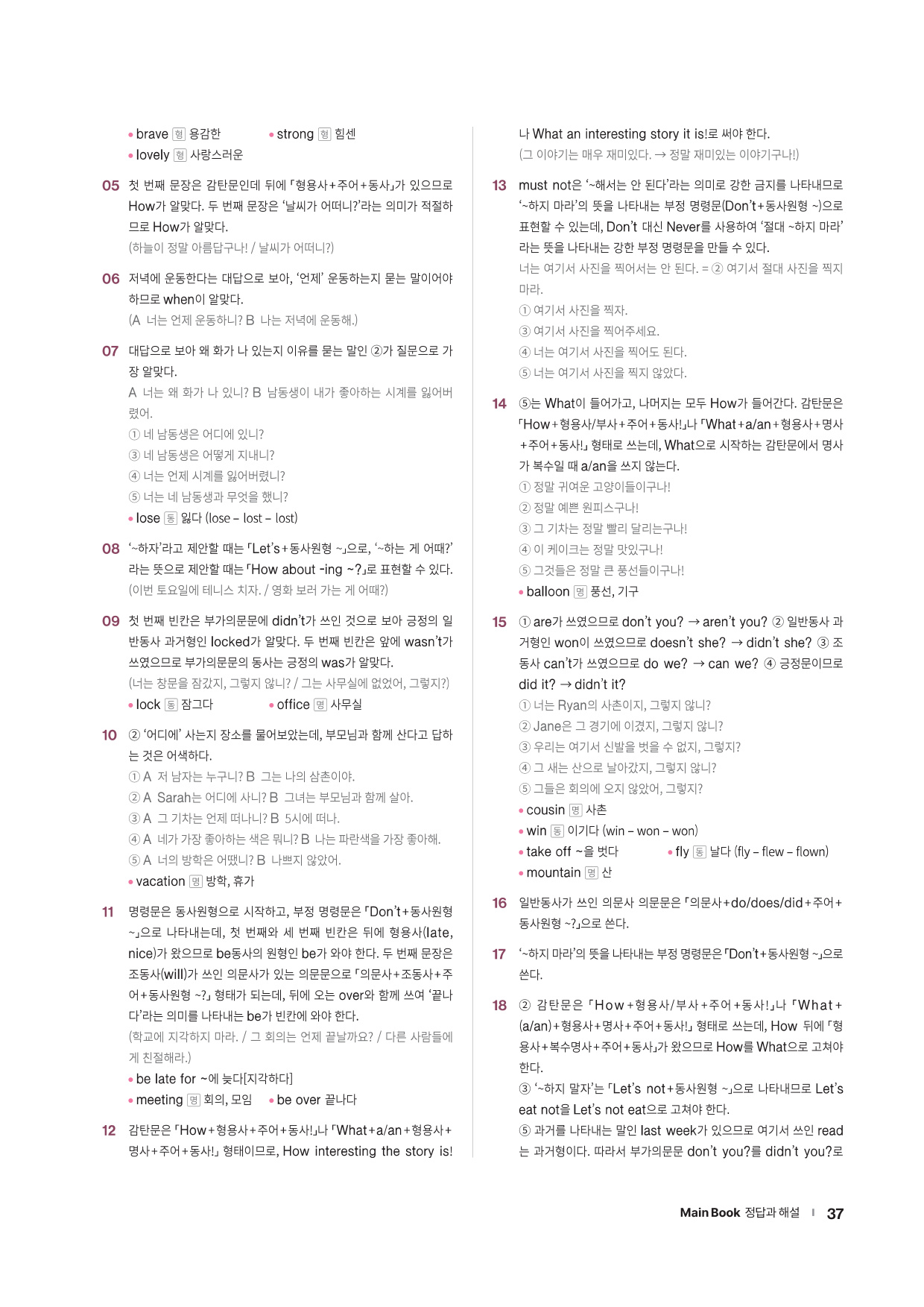 · Word List & Word Test - 앞에서 배운 주요 어휘의 목록과 어휘 테스트 문제를 제공합니다.