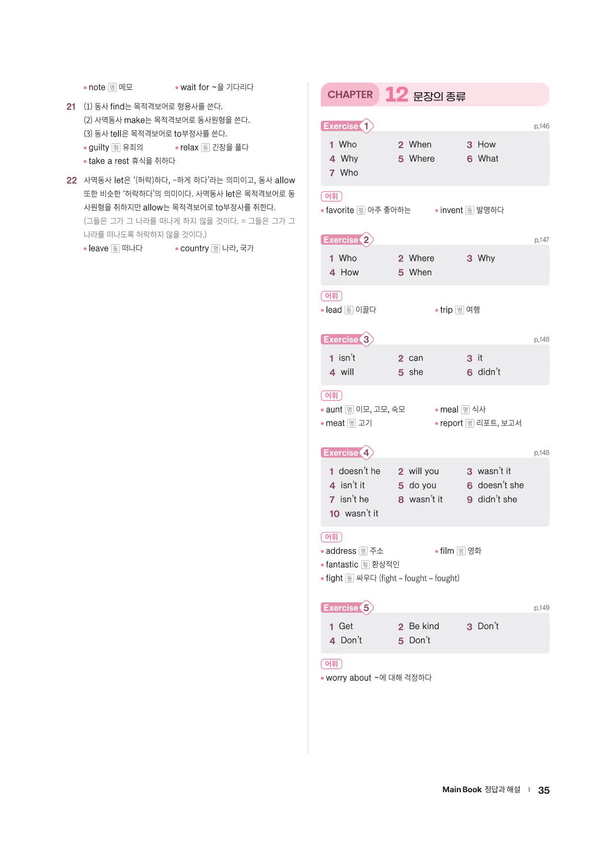 · Word List & Word Test - 앞에서 배운 주요 어휘의 목록과 어휘 테스트 문제를 제공합니다.