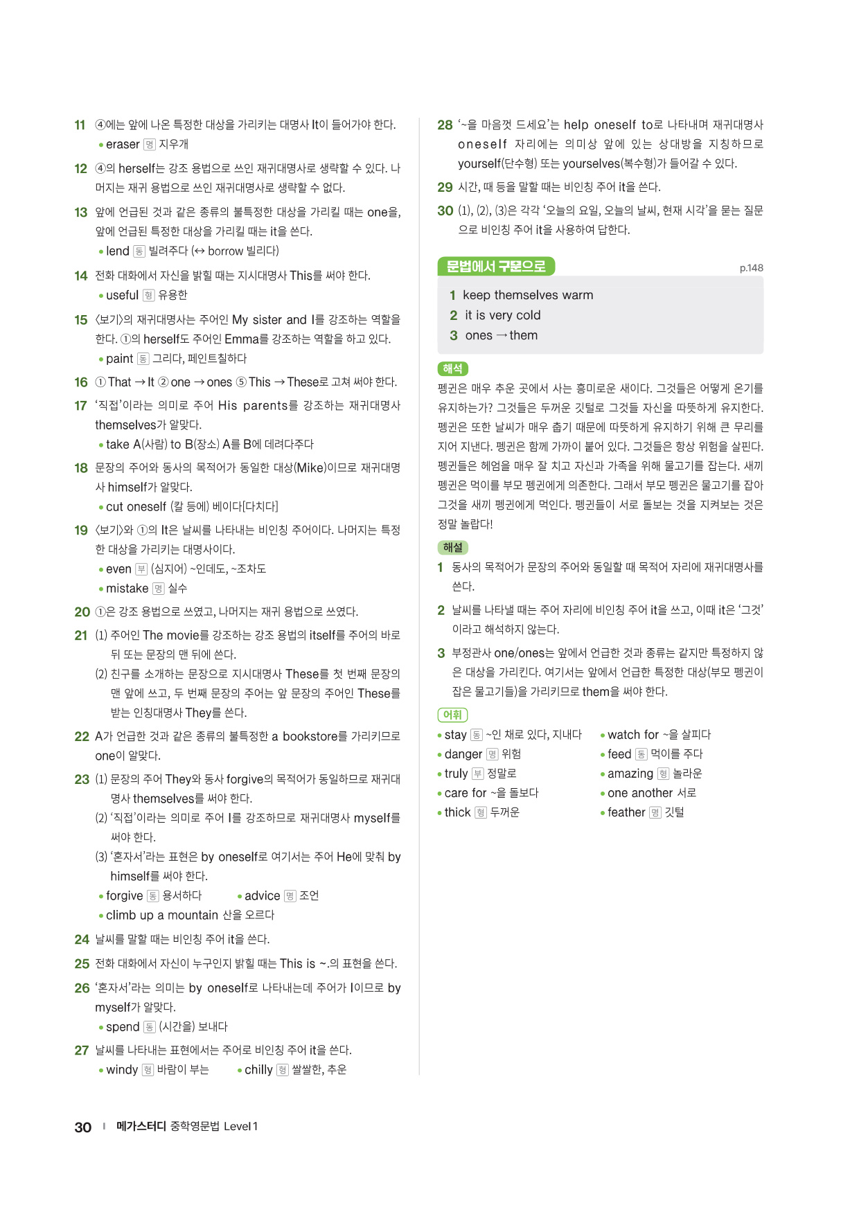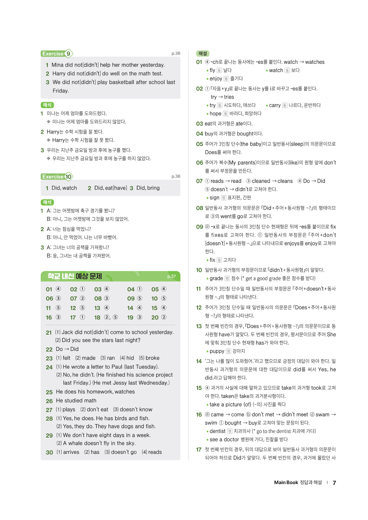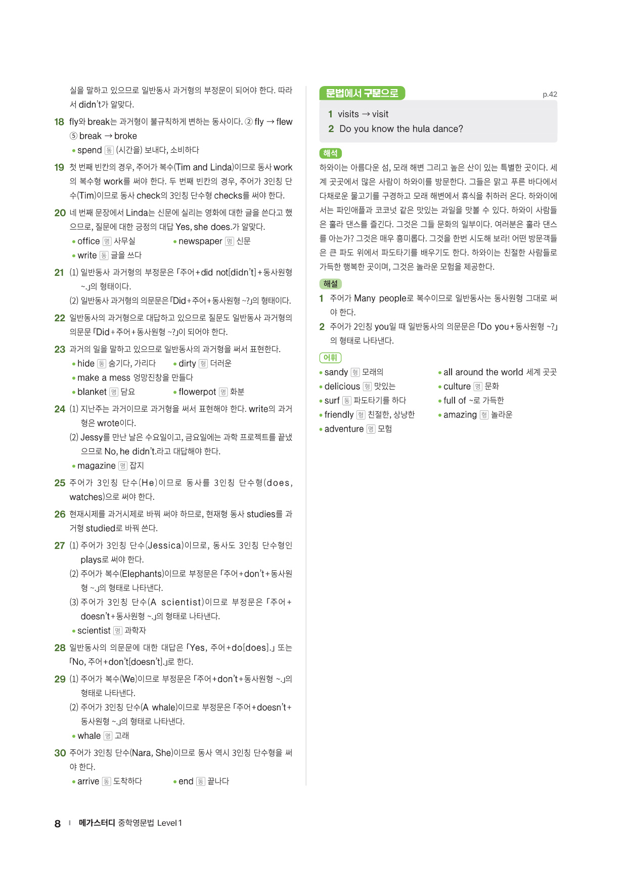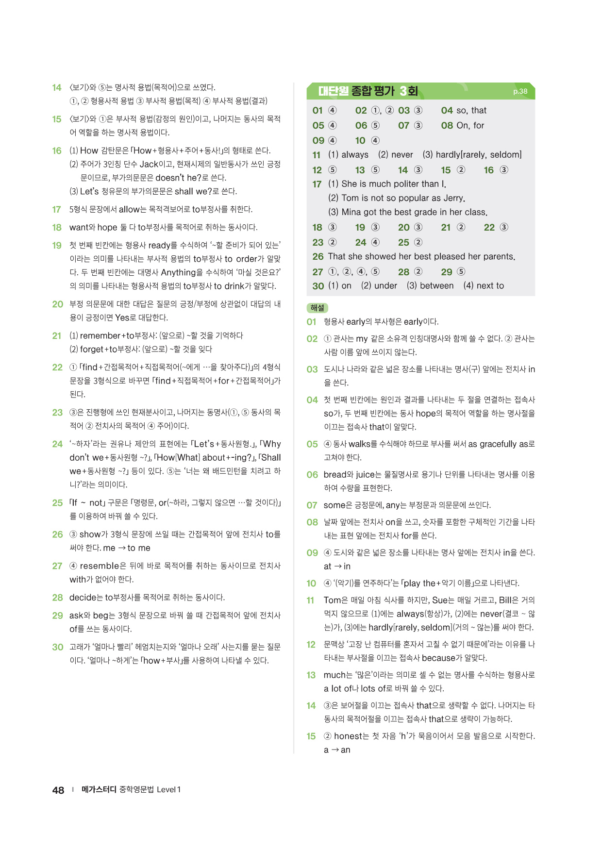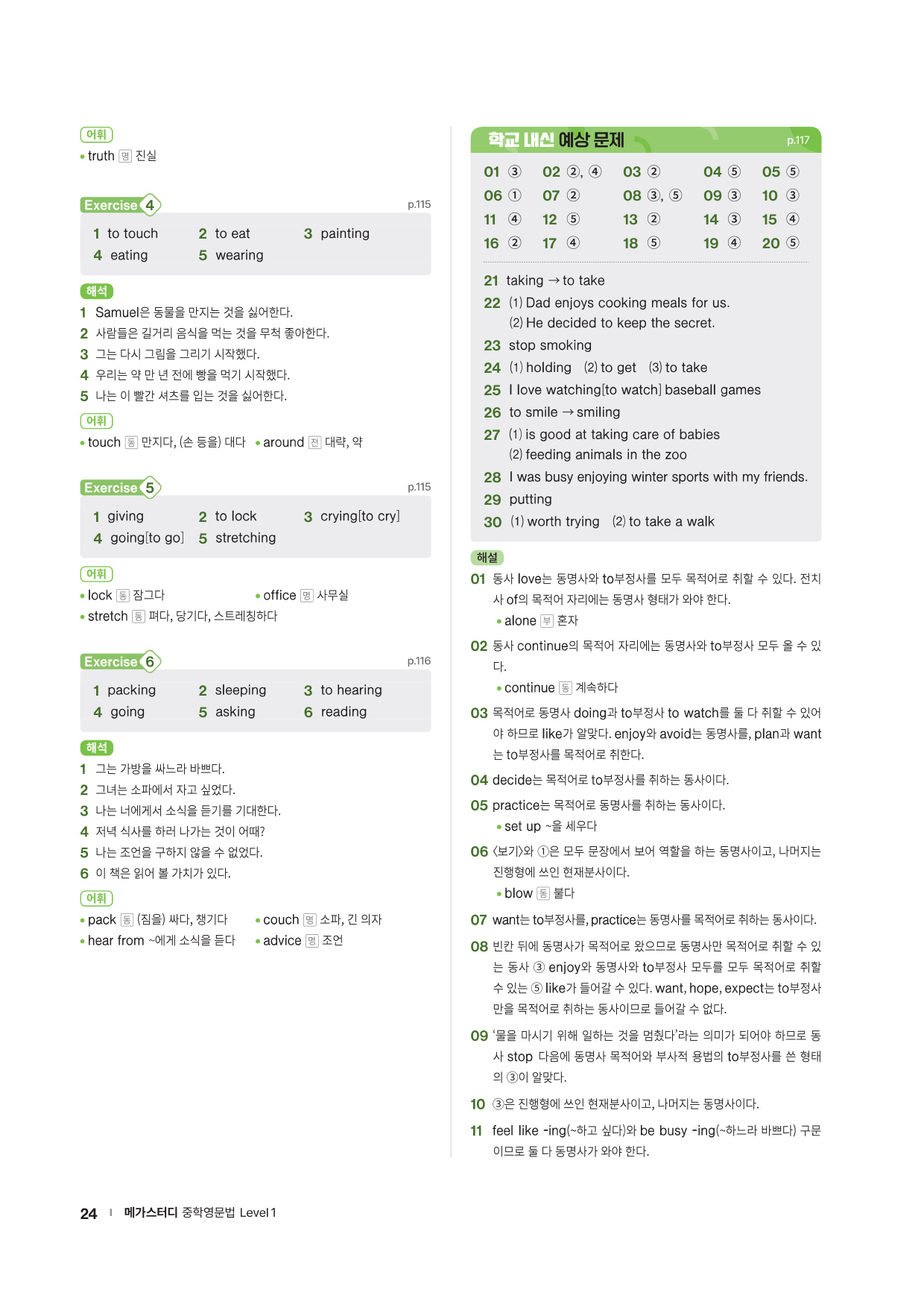 · Chapter Test - 각 챕터에서 학습한 문법 실력을 탄탄히 해 줄 추가 문제들을 제공합니다. 문법 확인 문제, 틀린 것 고치기, 문장 배열하기 유형의 문제들을 통해 학습한 문법을 복습합니다.