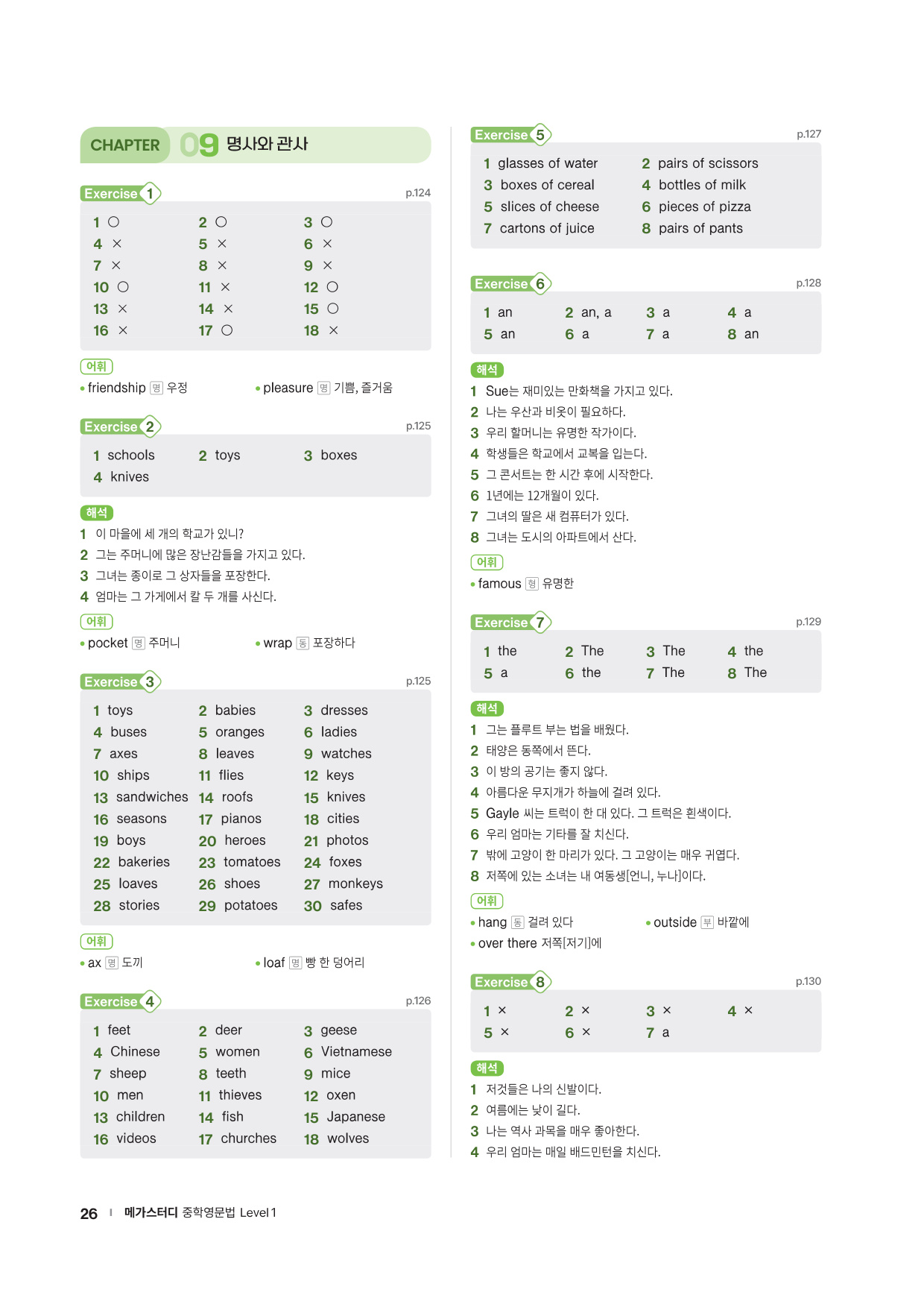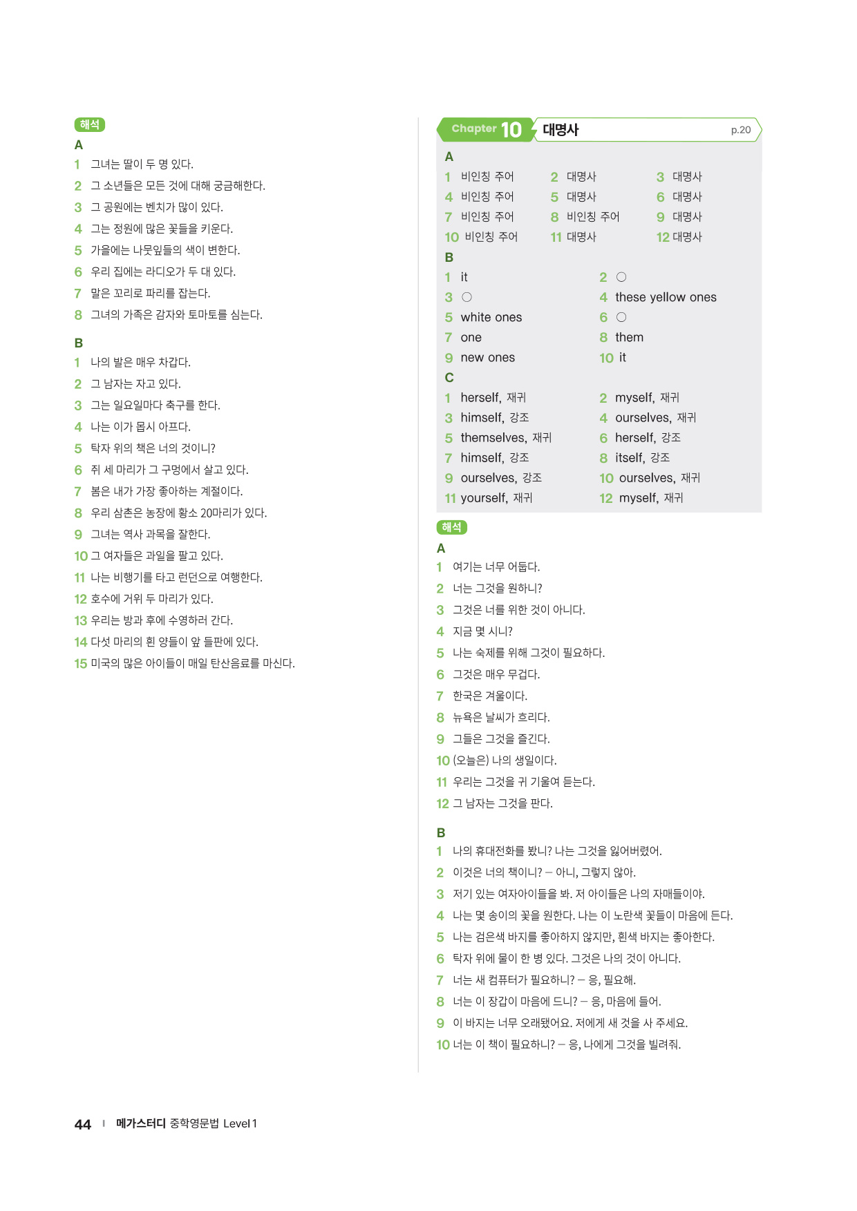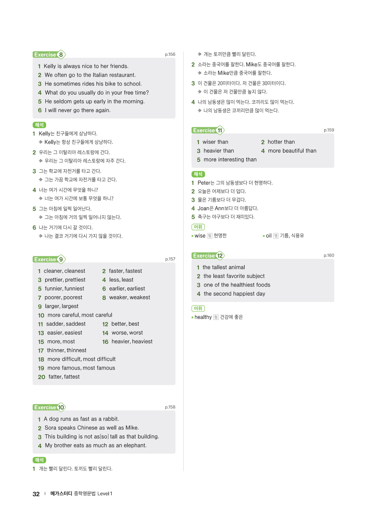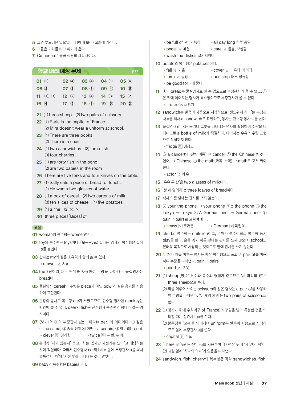 · Chapter Test - 각 챕터에서 학습한 문법 실력을 탄탄히 해 줄 추가 문제들을 제공합니다. 문법 확인 문제, 틀린 것 고치기, 문장 배열하기 유형의 문제들을 통해 학습한 문법을 복습합니다.