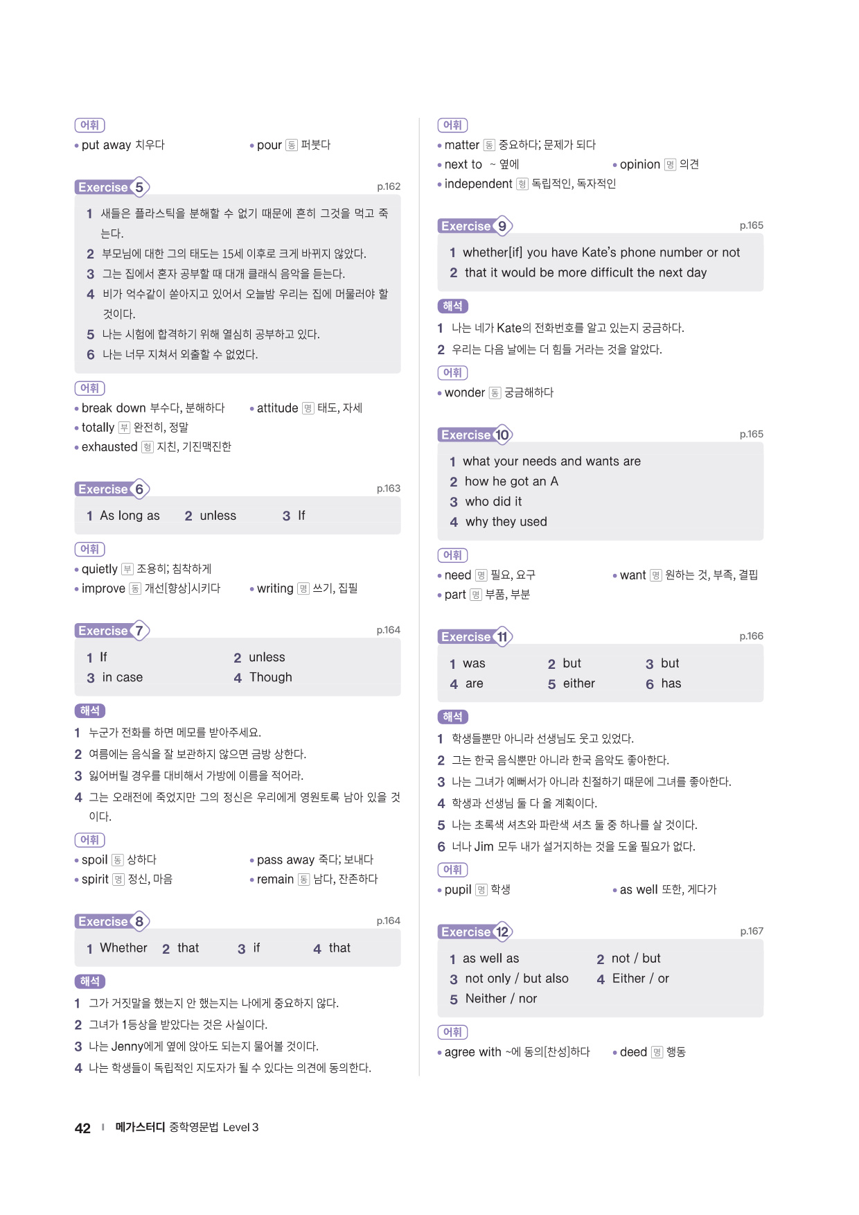 · Word List & Word Test - 앞에서 배운 주요 어휘의 목록과 어휘 테스트 문제를 제공합니다.