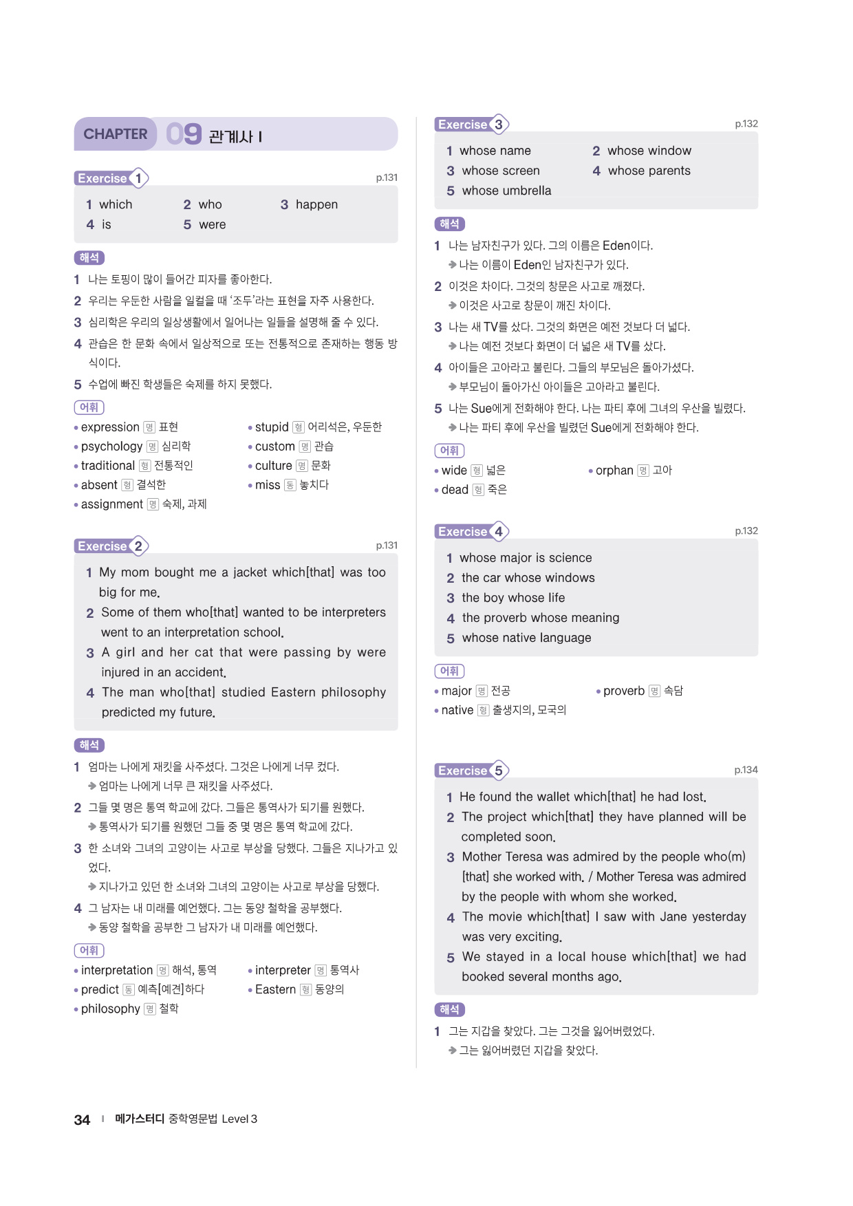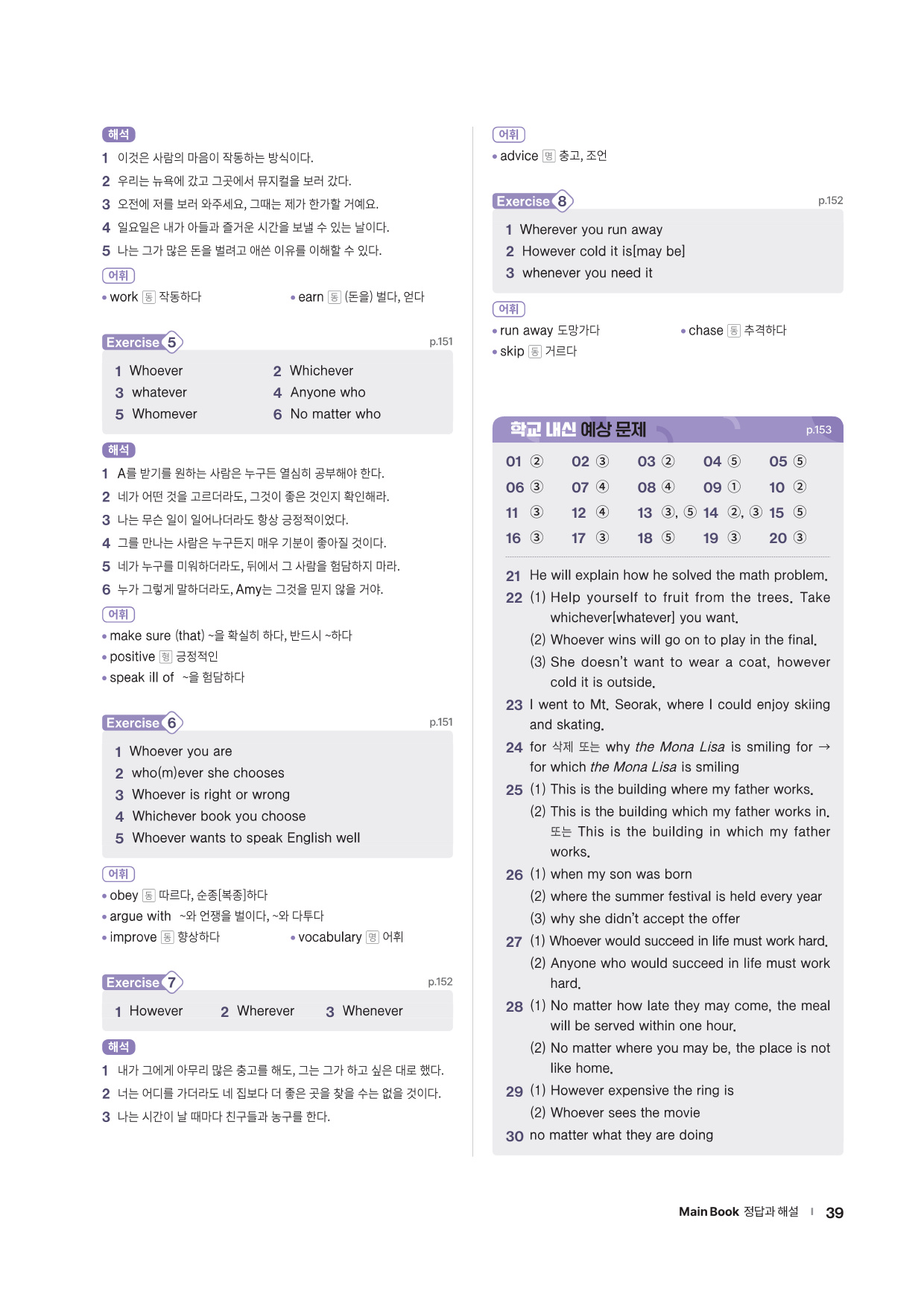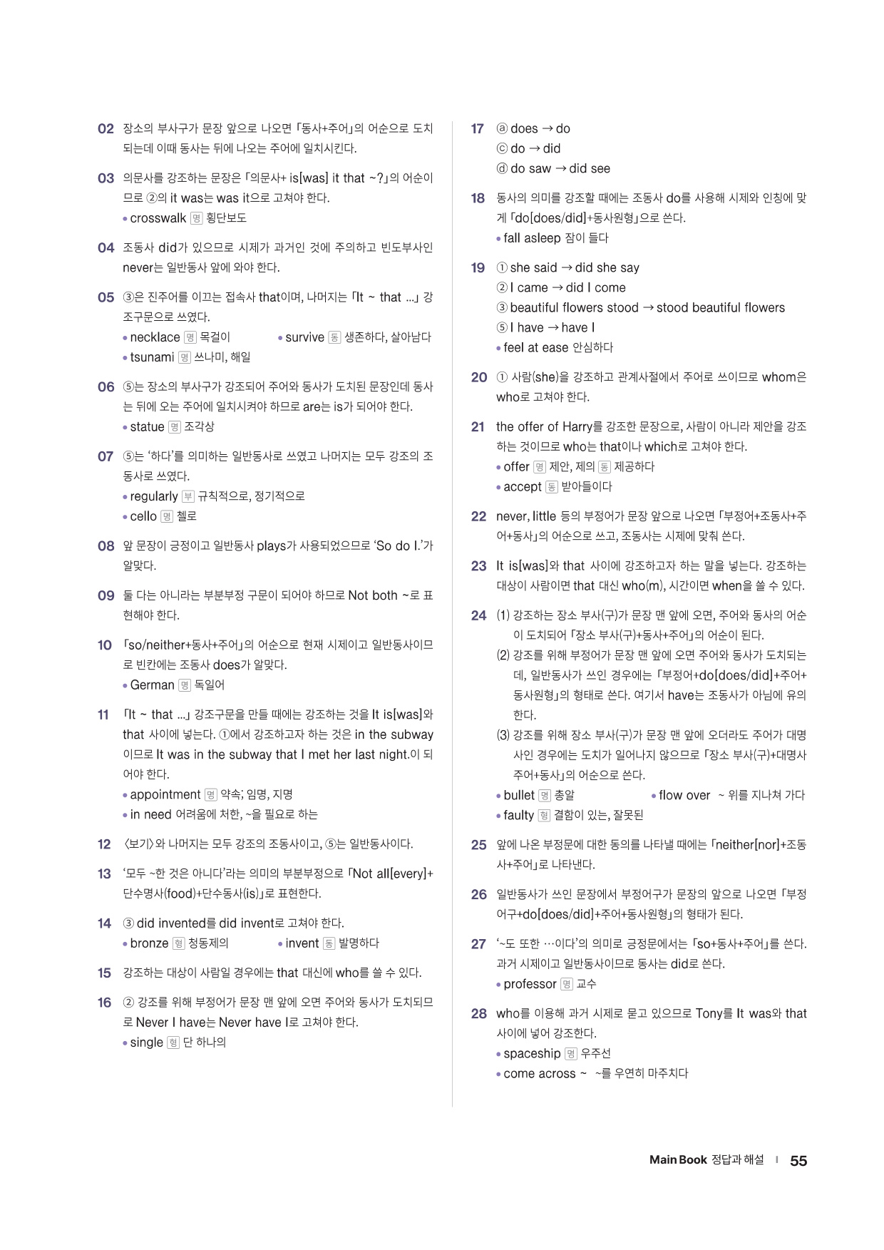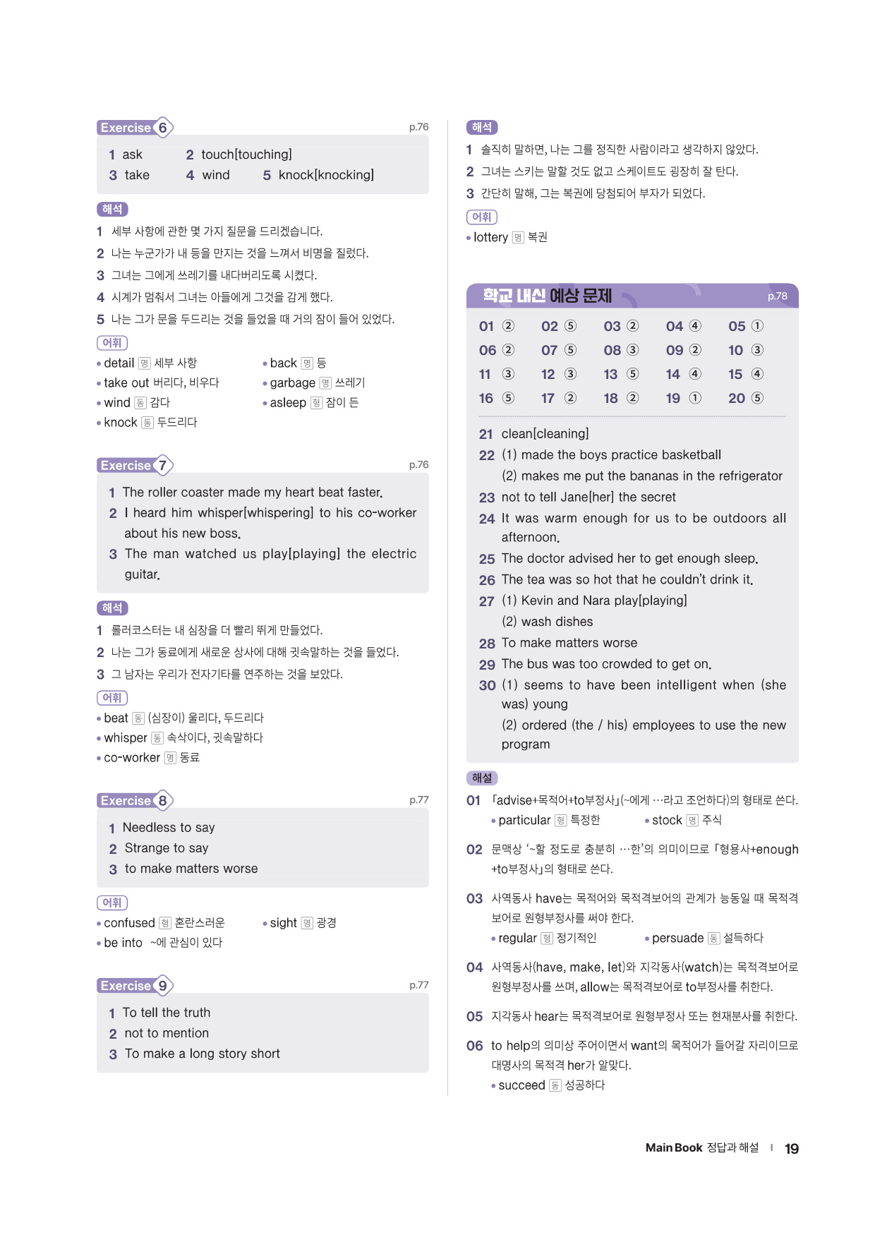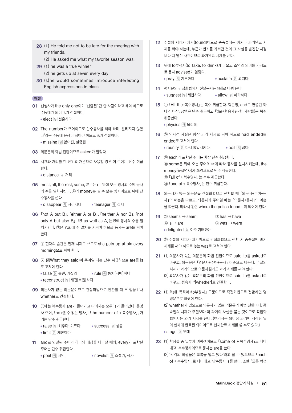 · Word List & Word Test - 앞에서 배운 주요 어휘의 목록과 어휘 테스트 문제를 제공합니다.
