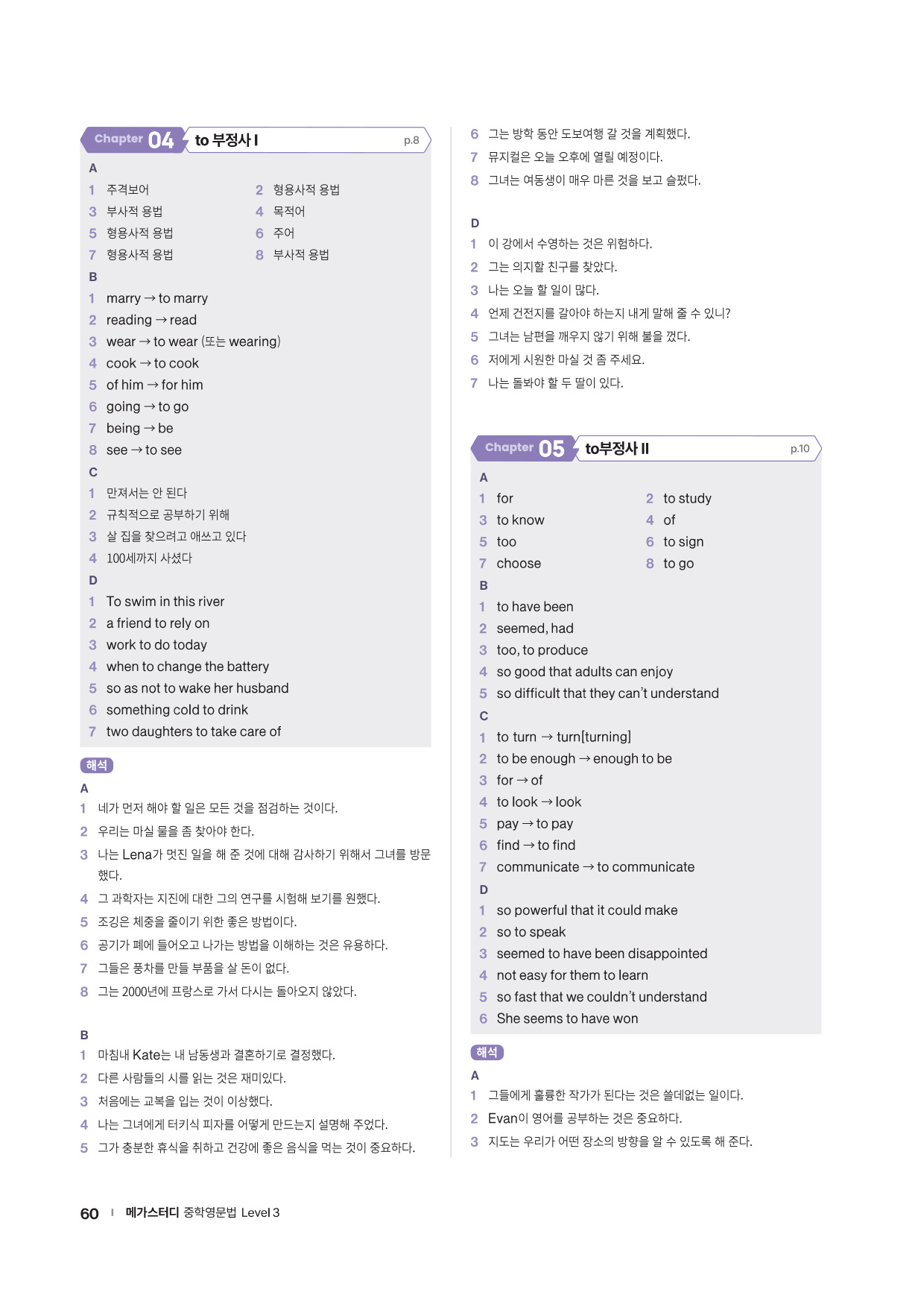 · 대단원 종합 문제 - 객관식, 서술형, 고난도 문제들을 포함한 챕터별 종합 문제 3회분을 제공합니다.