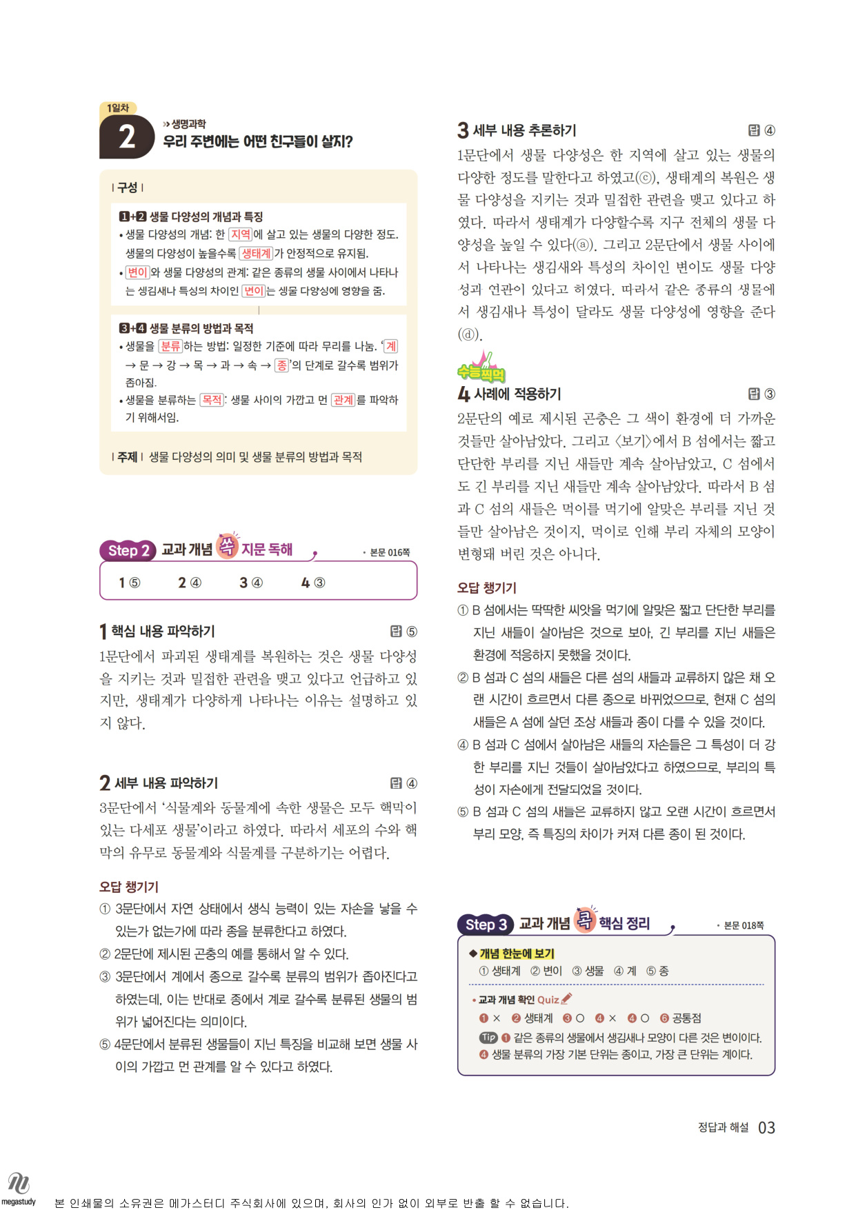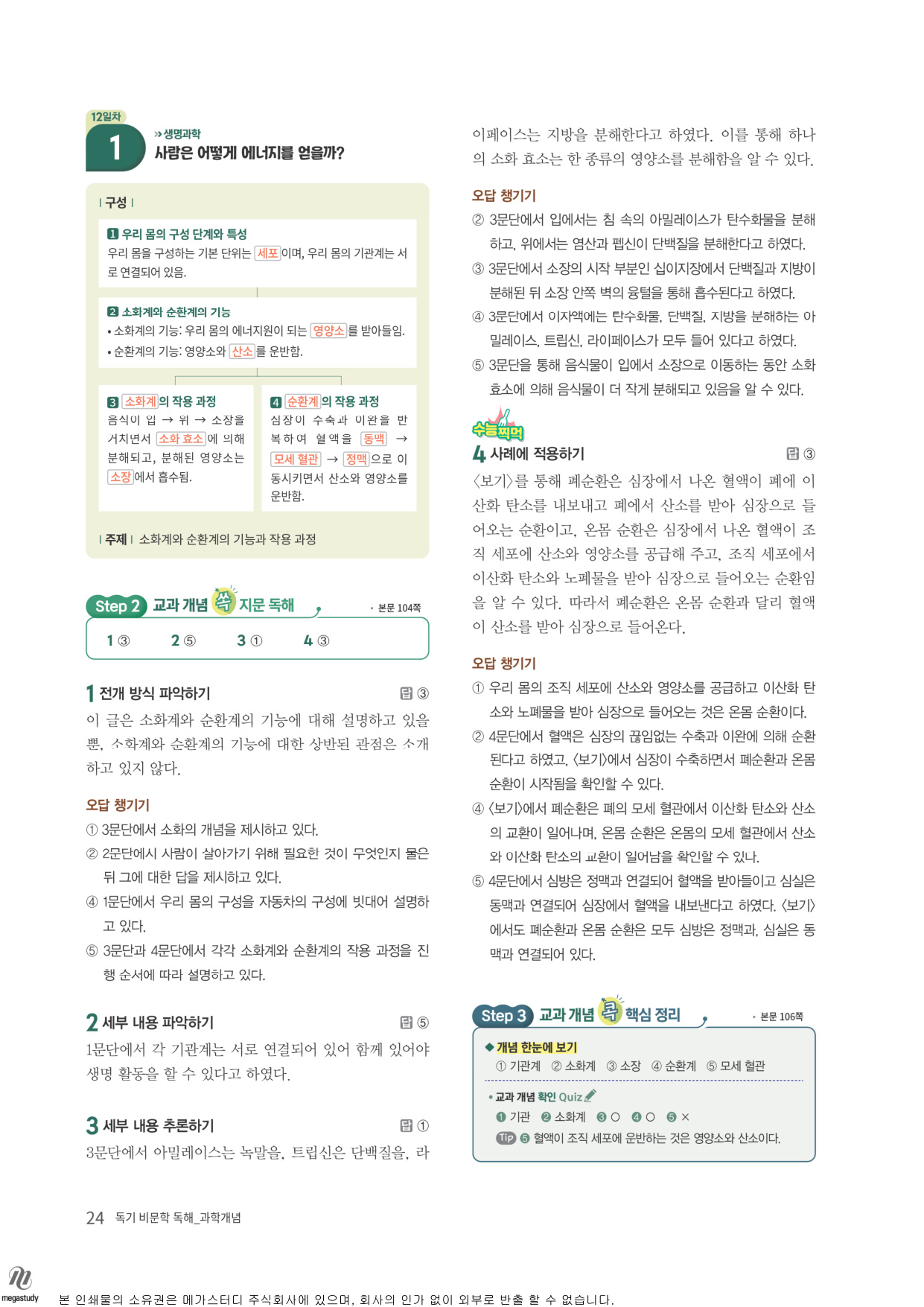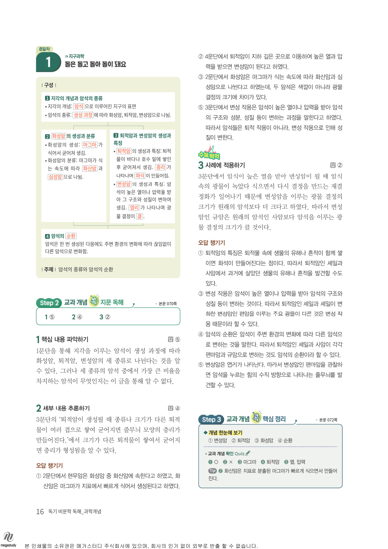 (1) 교과 지문 독해 훈련을 통해 ‘독해력+교과 과학 개념’을 한 번에 잡는 3단계 체계적 시스템