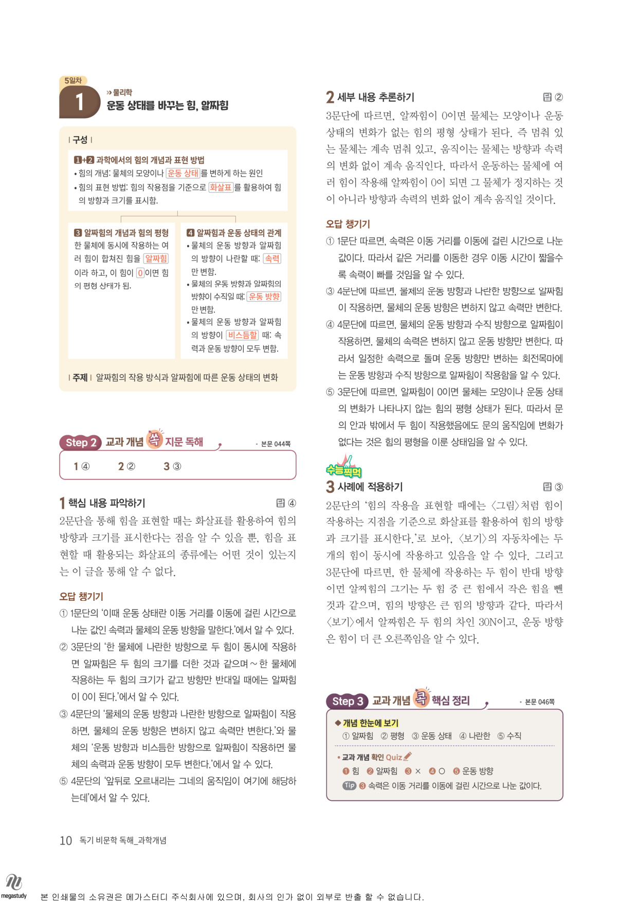 본문에서 학습한 과학 교과 필수 개념을 모두 모아 한 권으로 구성하여 과학 교과 개념을 손쉽게 찾아보며 효율적 반복 학습이 가능하도록 하였습니다.