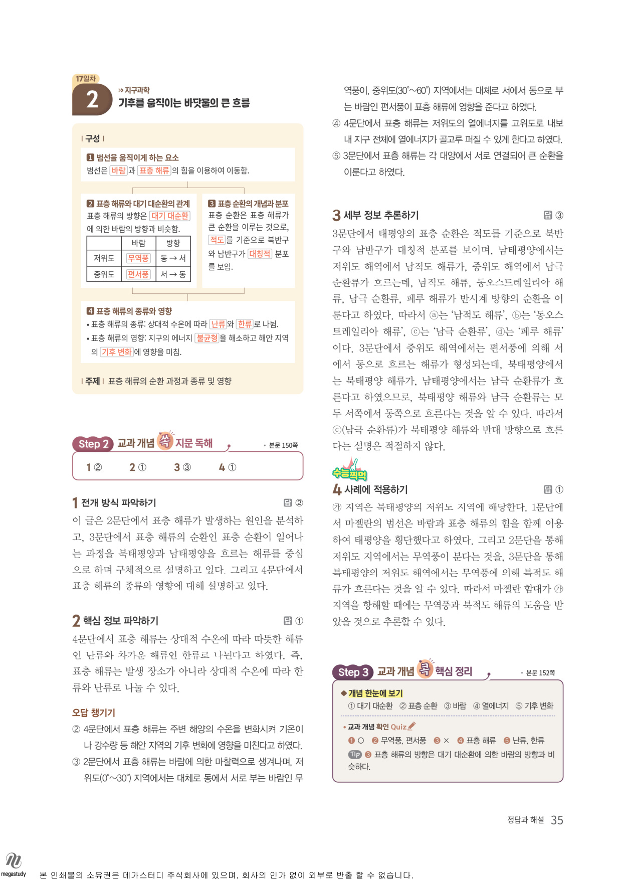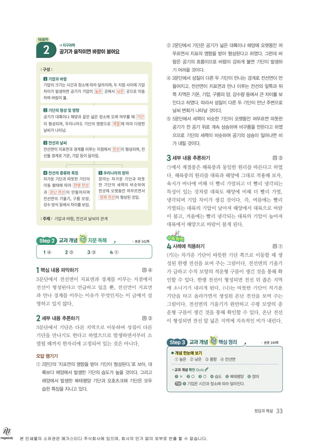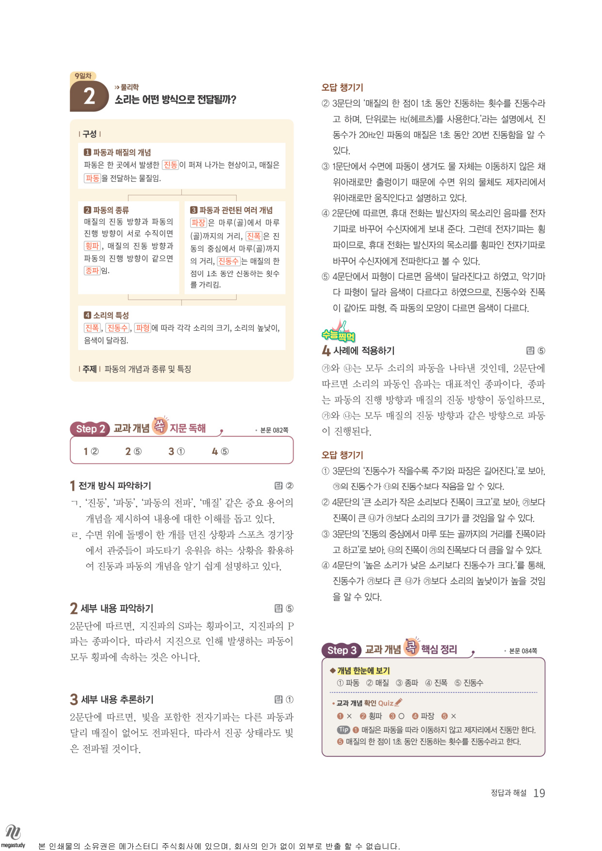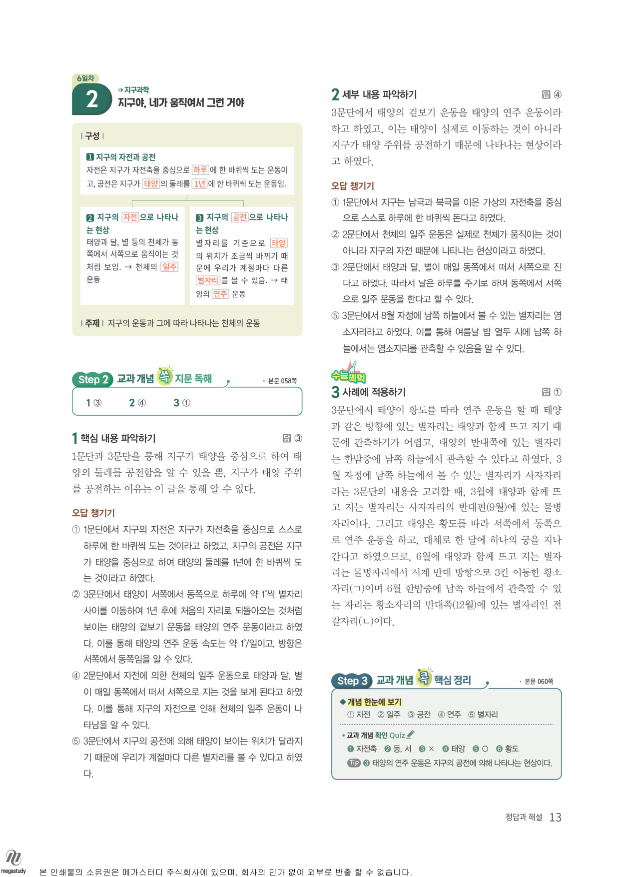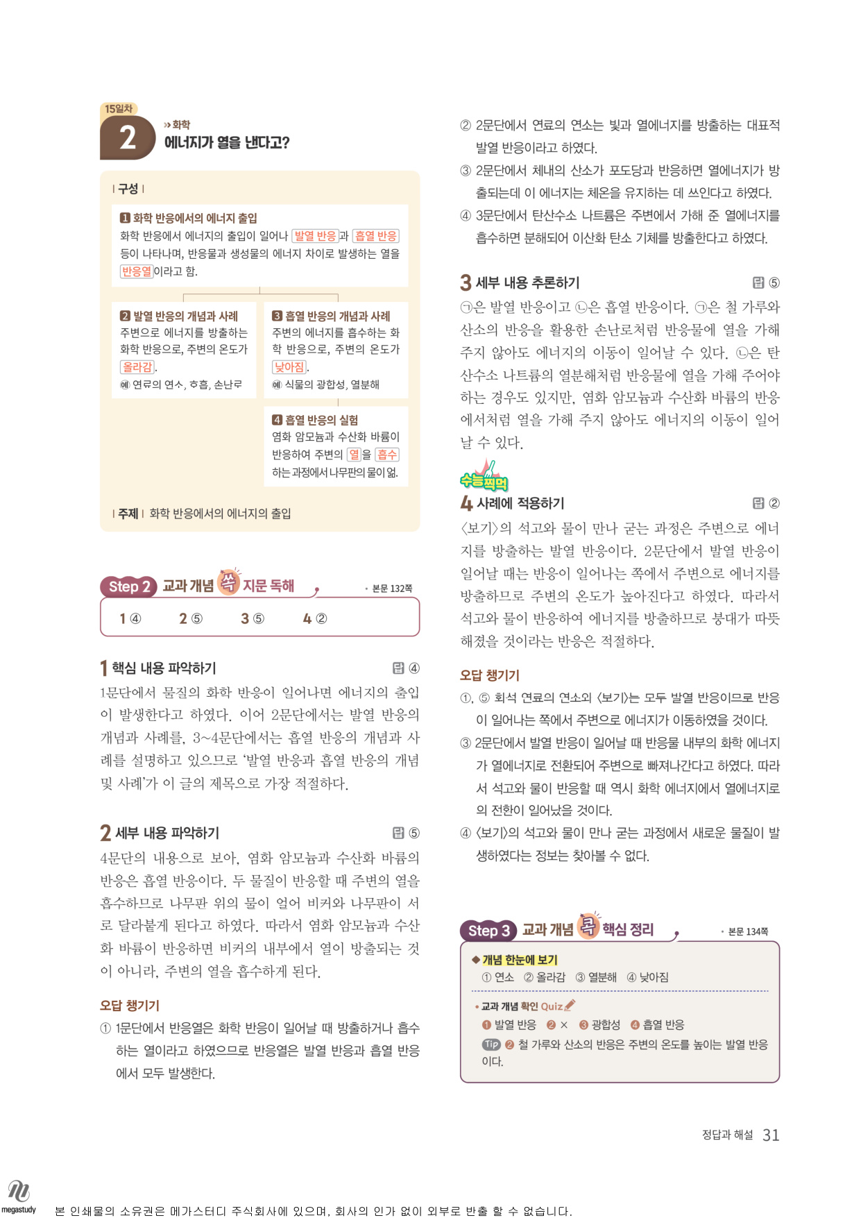 ‘Step 1. 교과 개념 톡 생각 열기 → Step 2. 교과 개념 쏙 지문 독해 → Step 3. 교과 개념 콕 핵심 정리’를 통한 체계적인 학습이 가능합니다. 또한 세부적인 독해 학습을 위해 지문의 구조와 문단별 중심 내용을 정리할 수 있는 빈칸 문제를 제공하여 학생들이 독해 과정을 스스로 체크할 수 있도록 하였습니다.