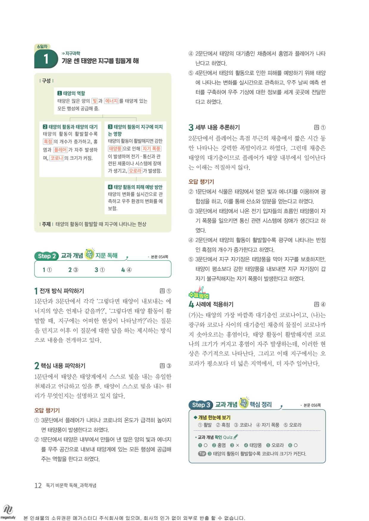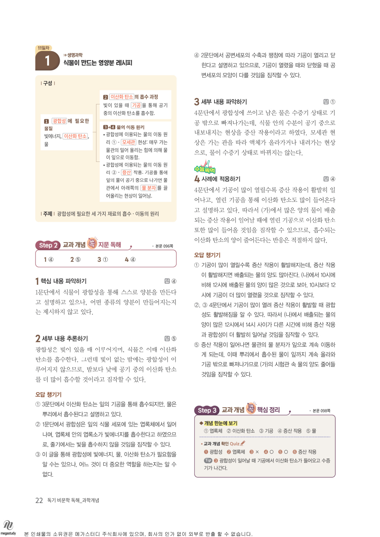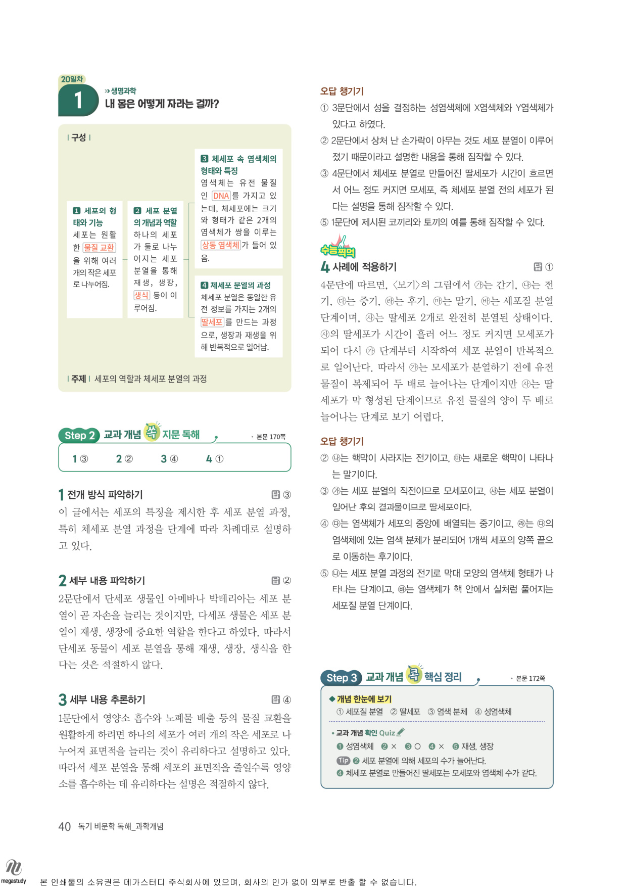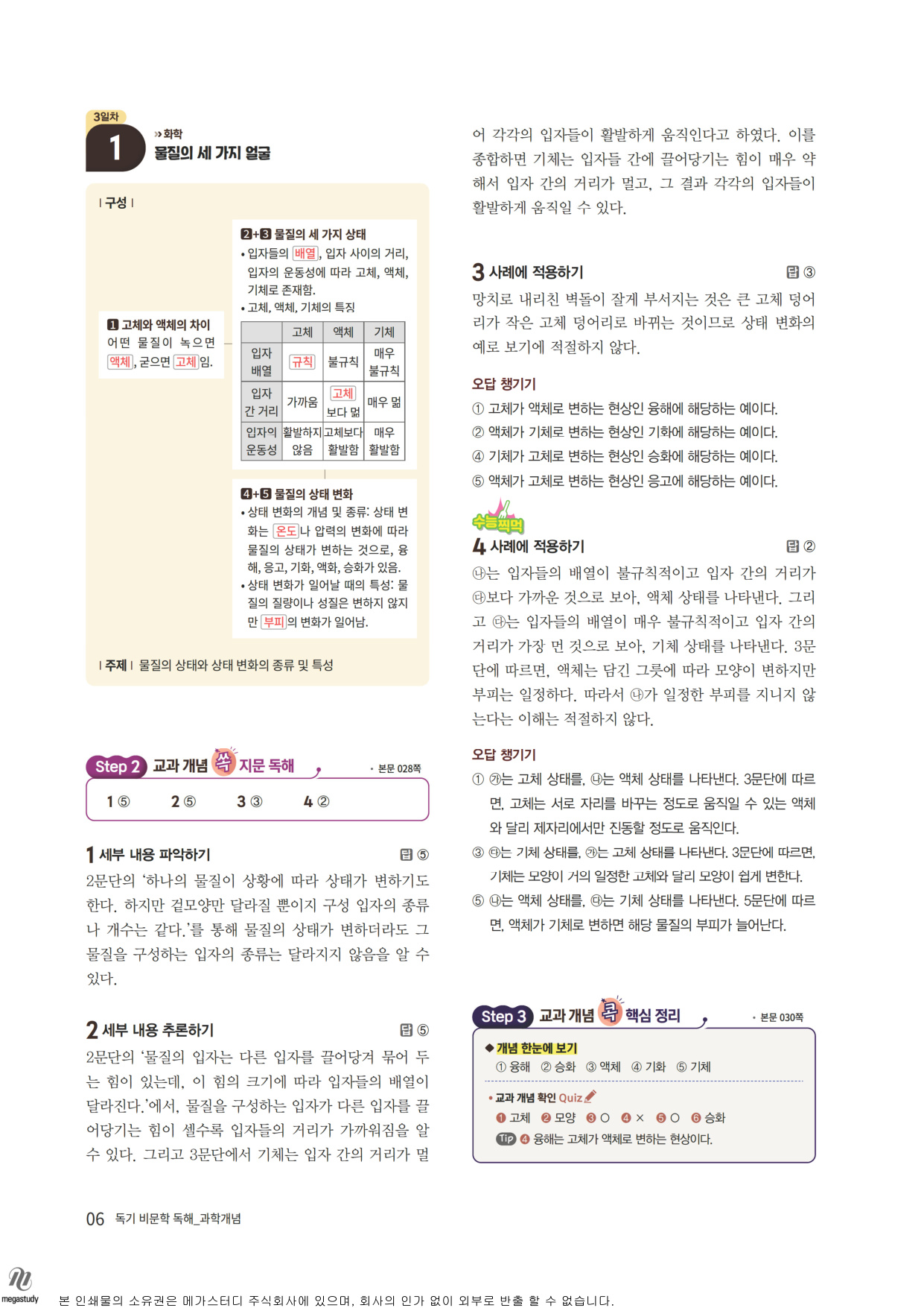 (1) 교과 지문 독해 훈련을 통해 ‘독해력+교과 과학 개념’을 한 번에 잡는 3단계 체계적 시스템