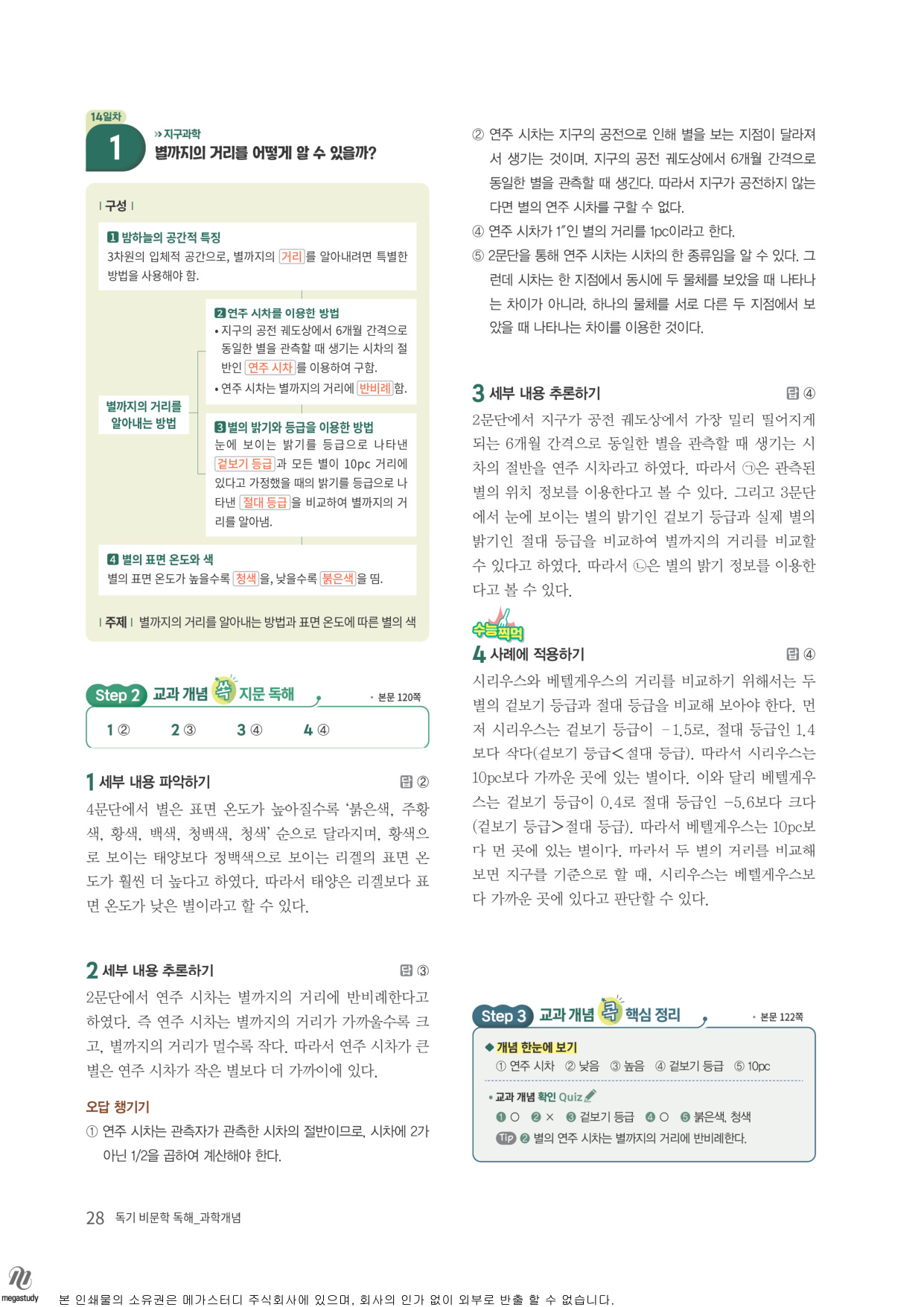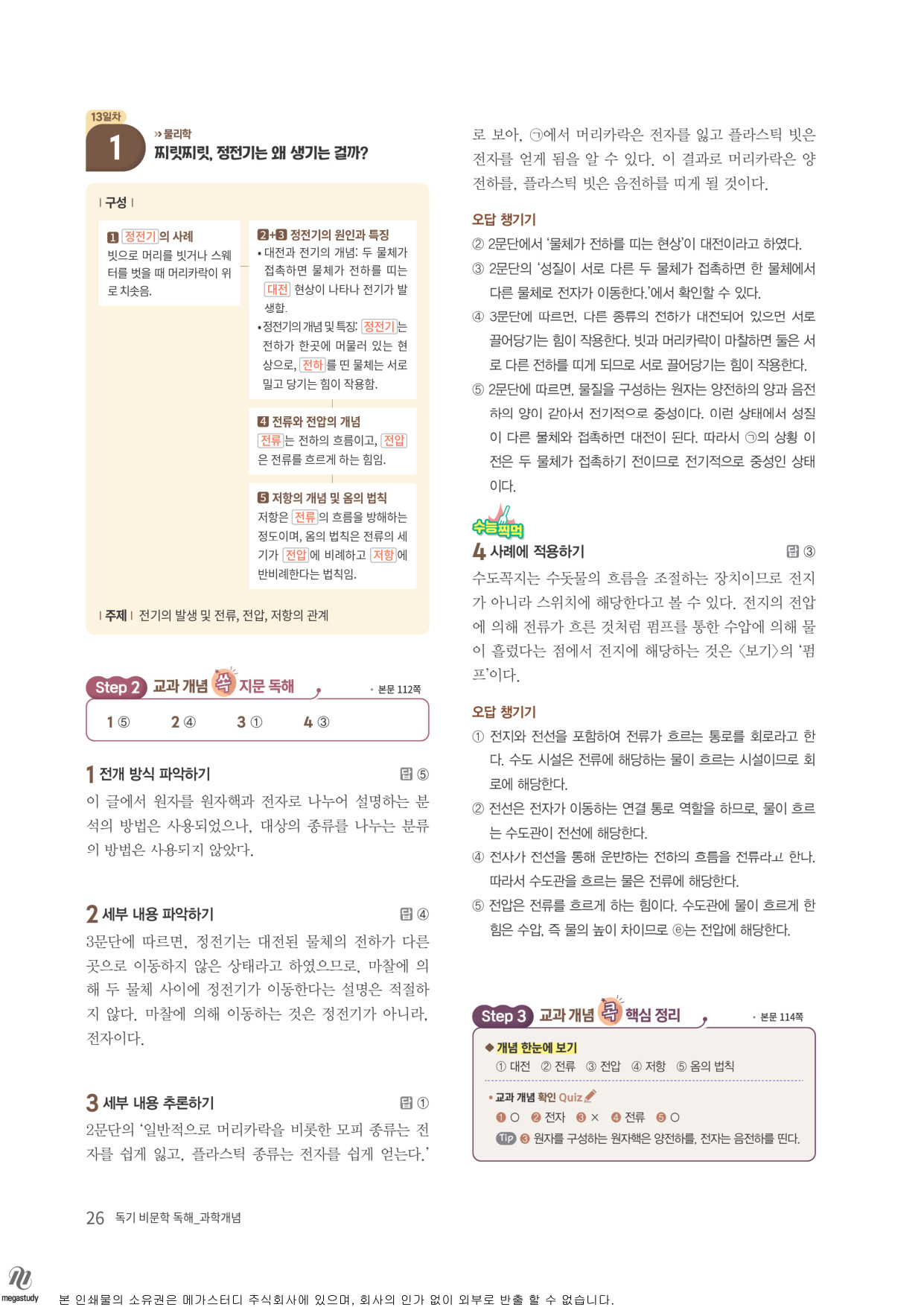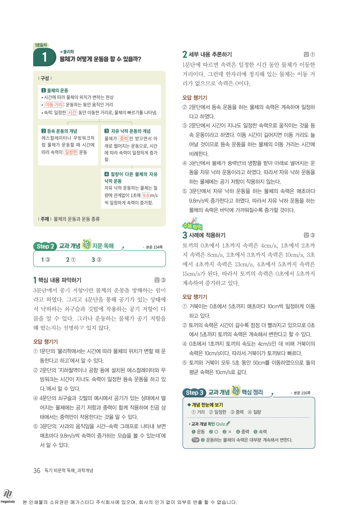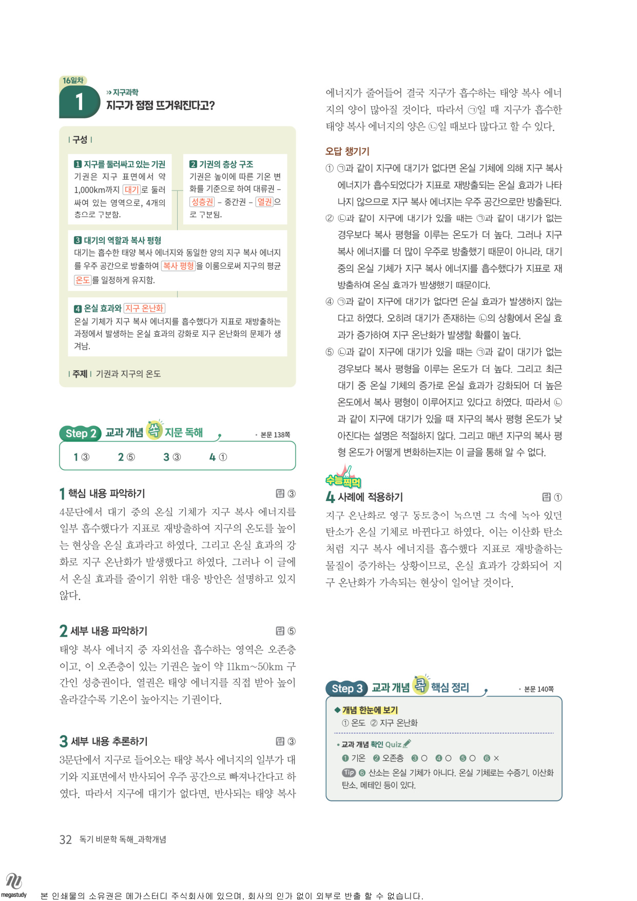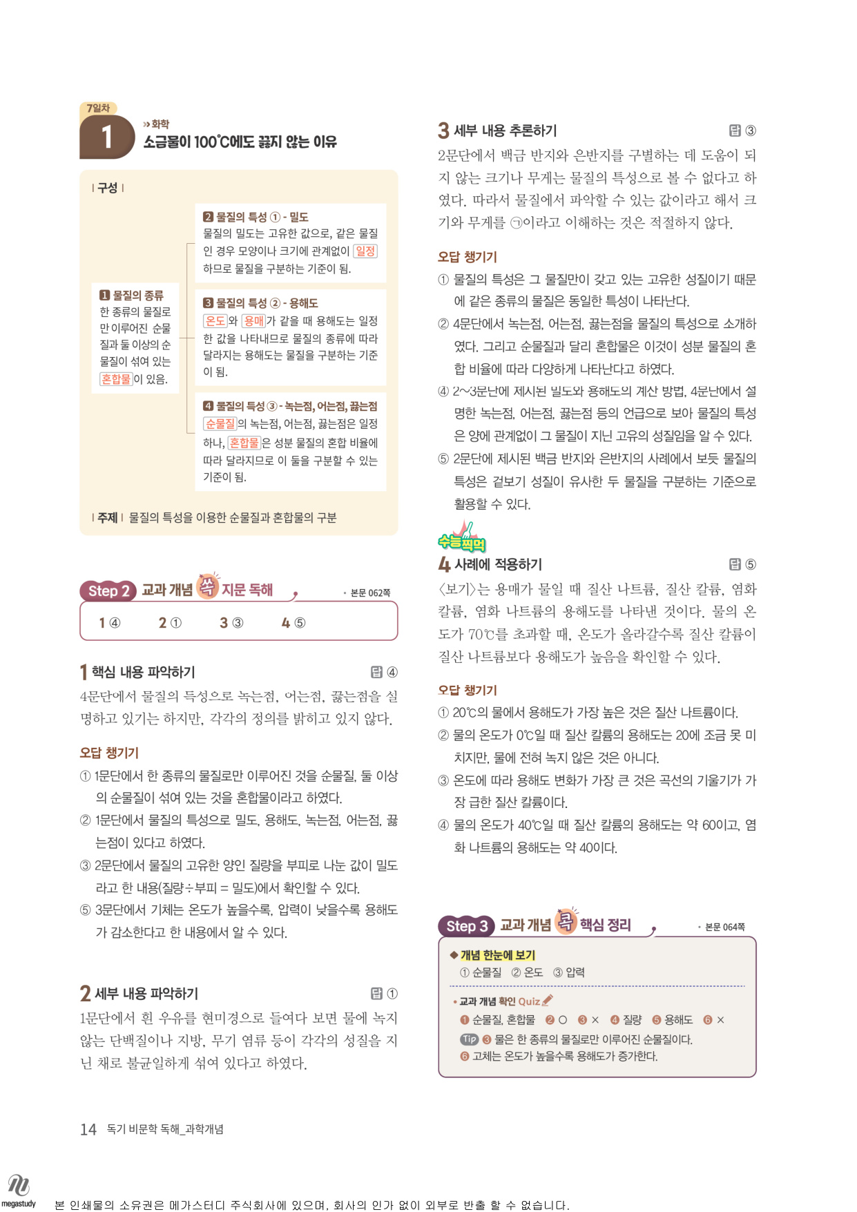 (1) 교과 지문 독해 훈련을 통해 ‘독해력+교과 과학 개념’을 한 번에 잡는 3단계 체계적 시스템