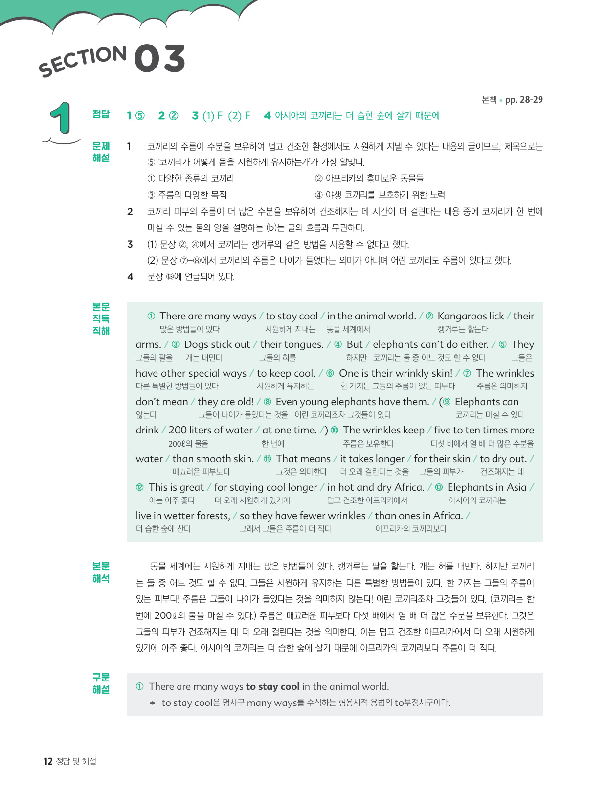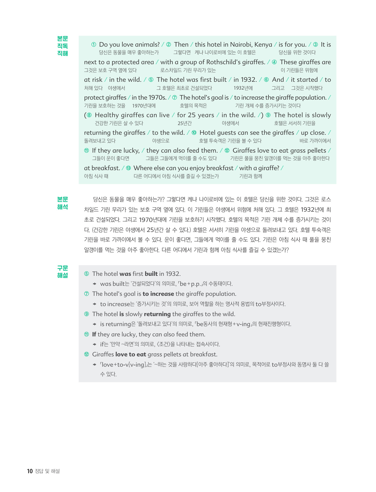- 지문을 빠르게 해석할 수 있는 방법을 보여주는 직독직해 코너