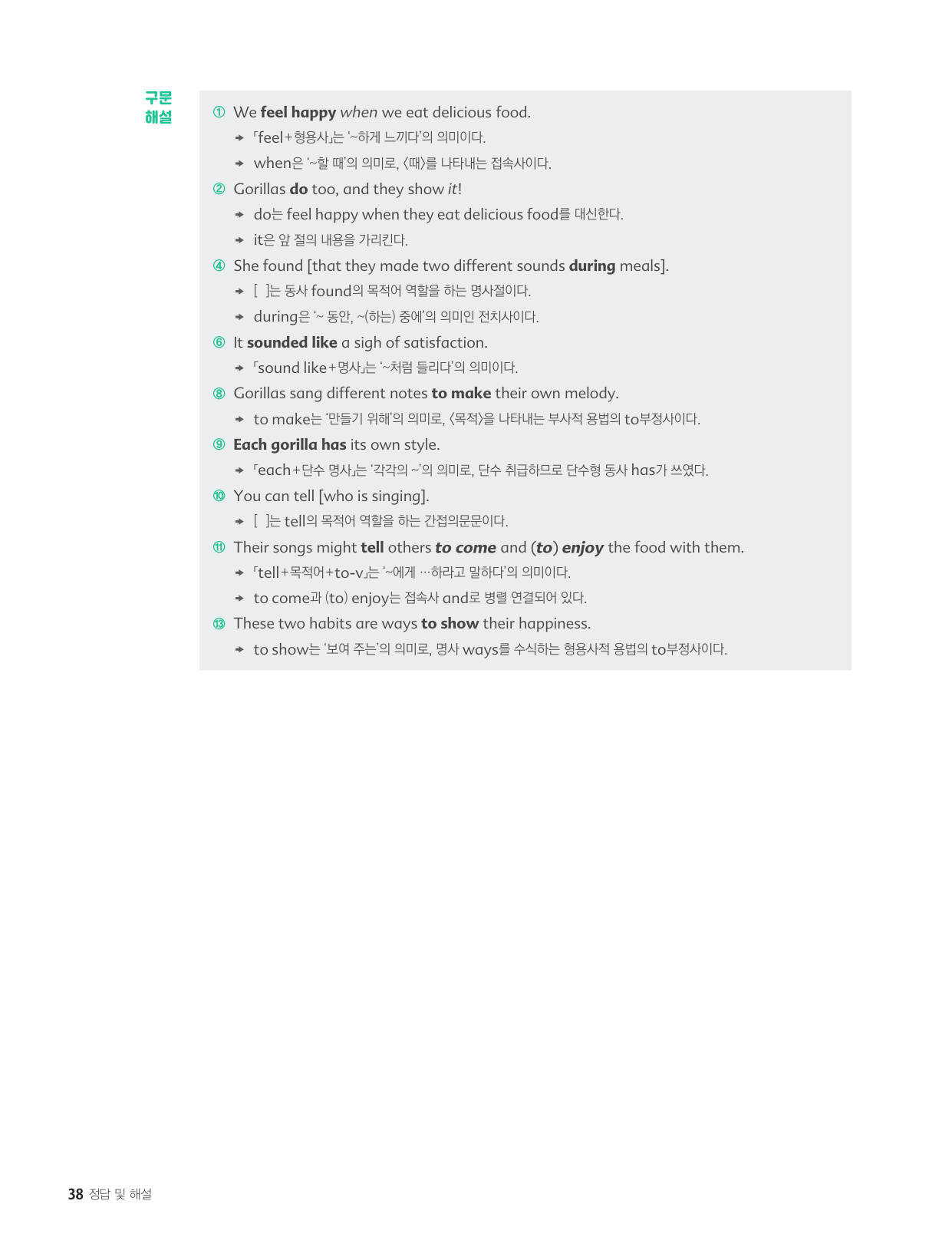 - 해석이 안 되는 부분이 없도록 도와주는 구문 해설