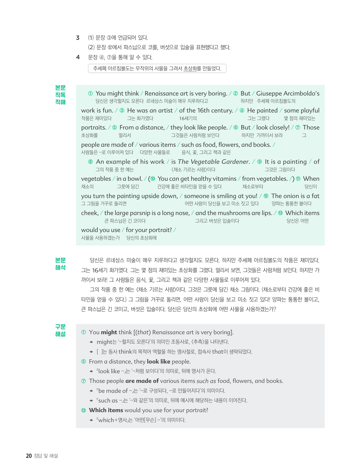 - 지문을 빠르게 해석할 수 있는 방법을 보여주는 직독직해 코너