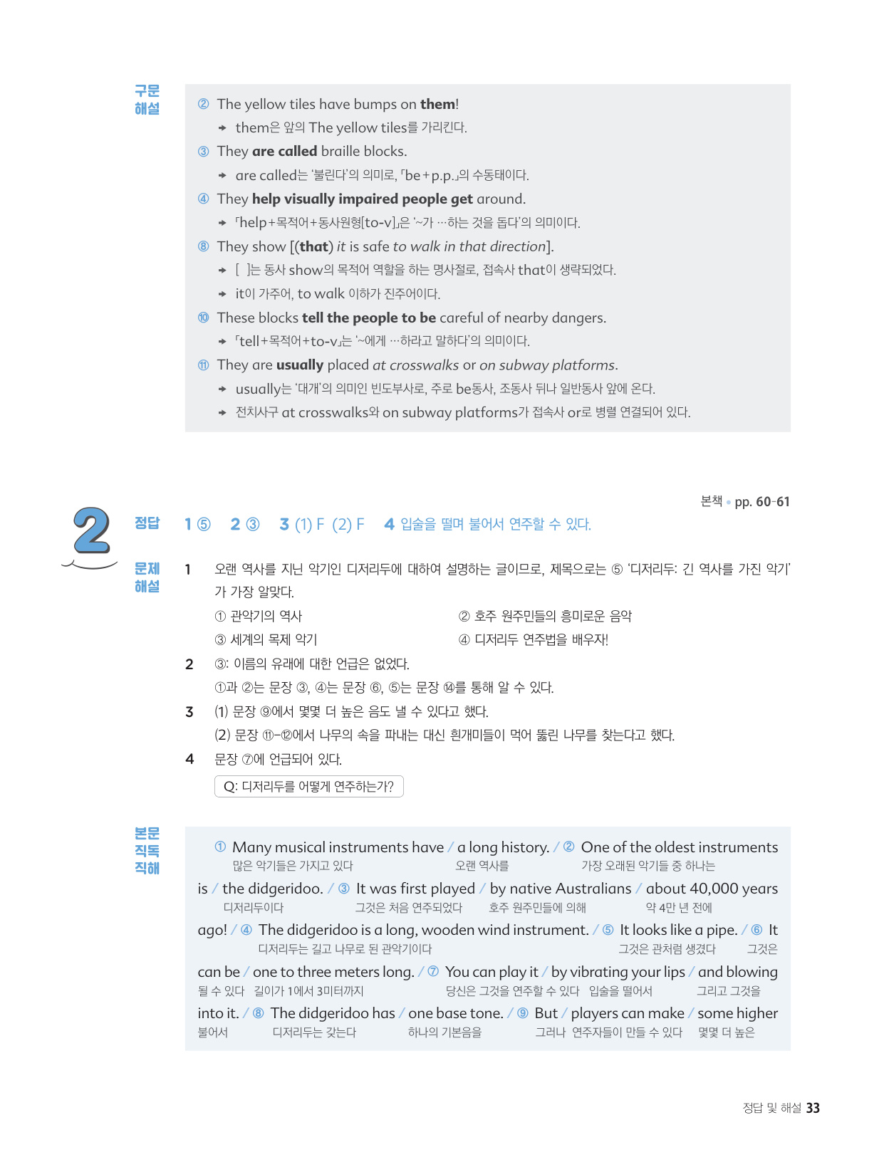 - 해석이 안 되는 부분이 없도록 도와주는 구문 해설