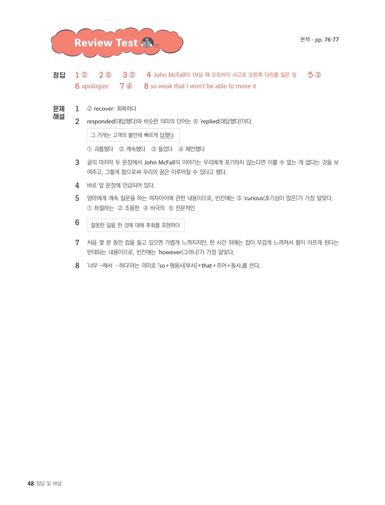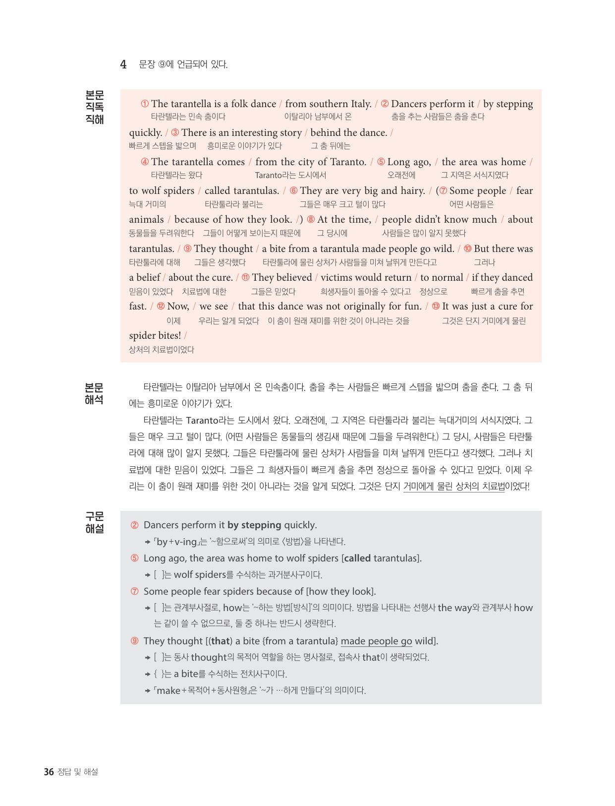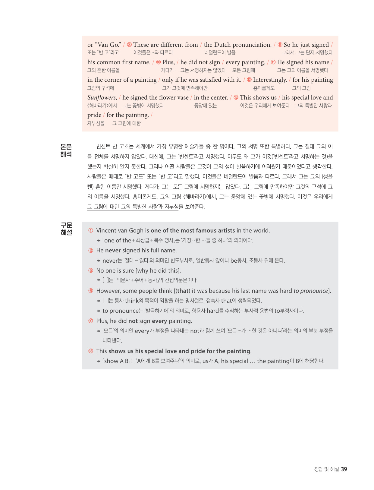 - 해석이 안 되는 부분이 없도록 도와주는 구문 해설