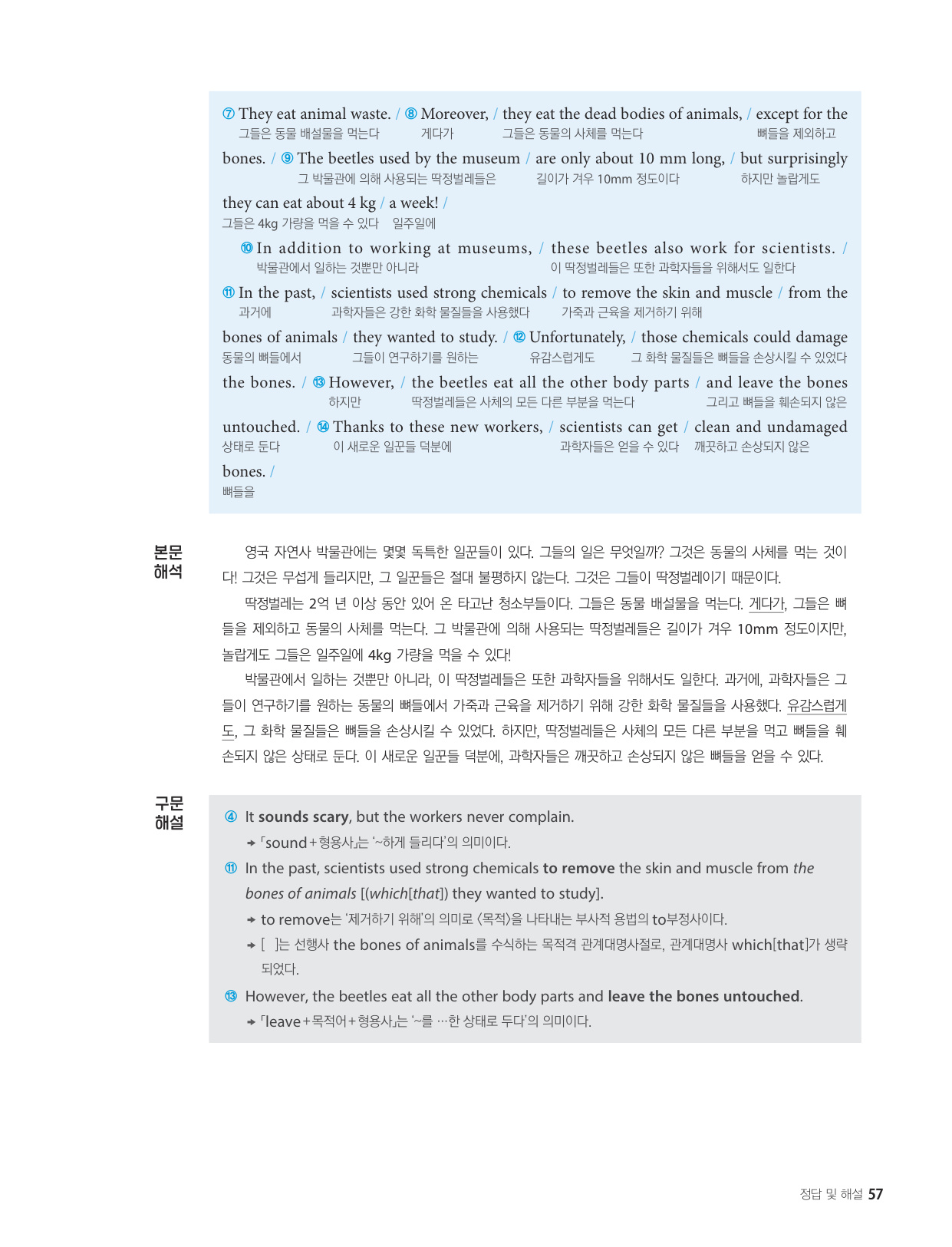 - 지문을 빠르게 해석할 수 있는 방법을 보여주는 직독직해 코너
