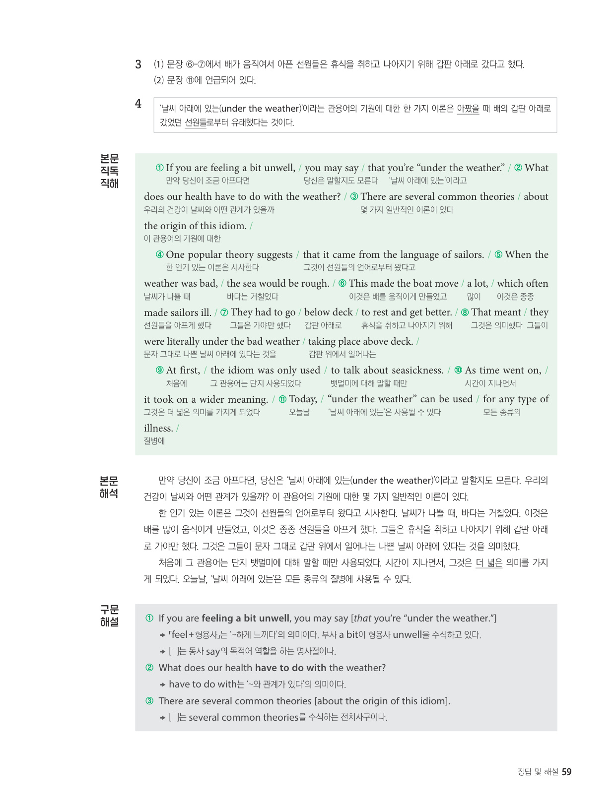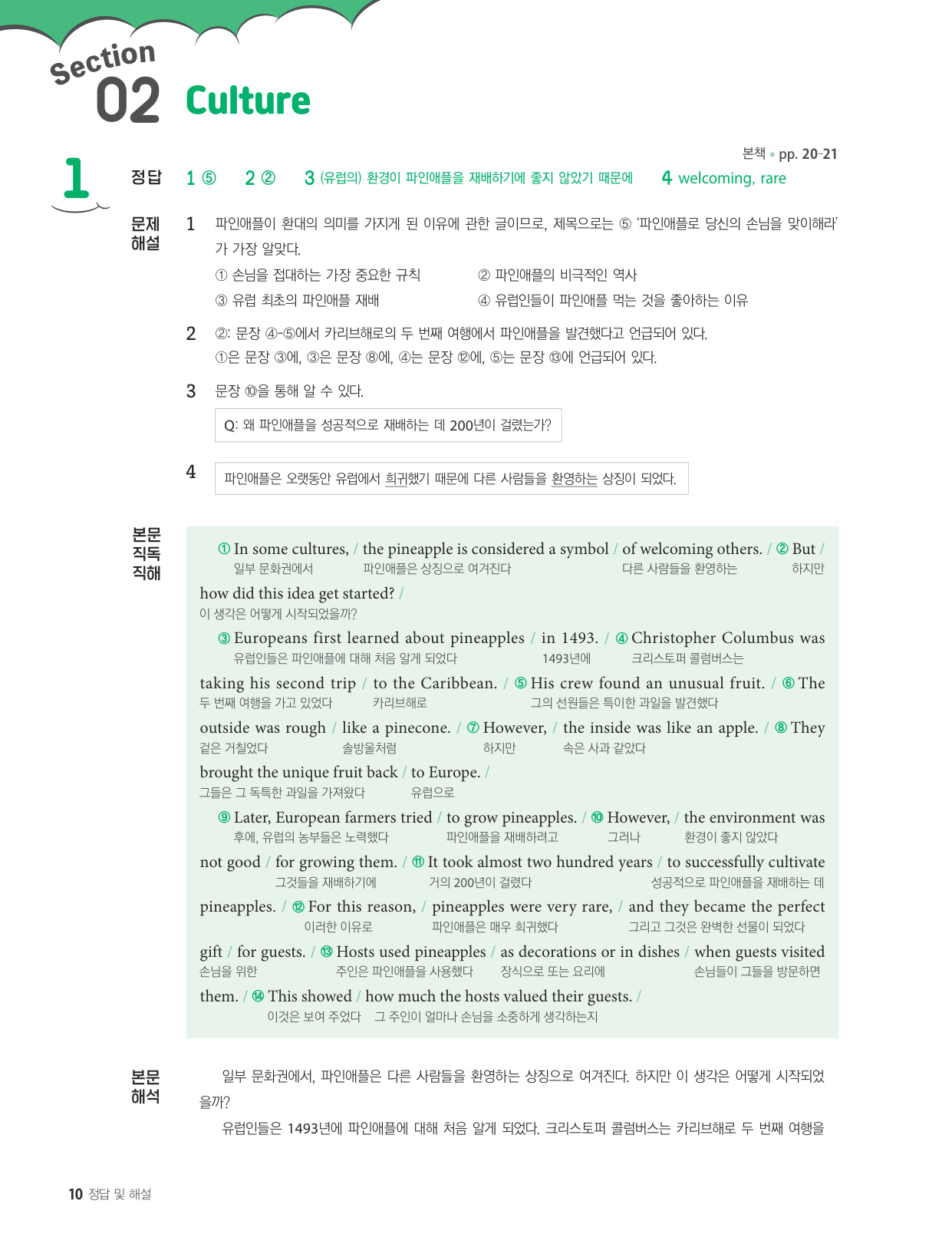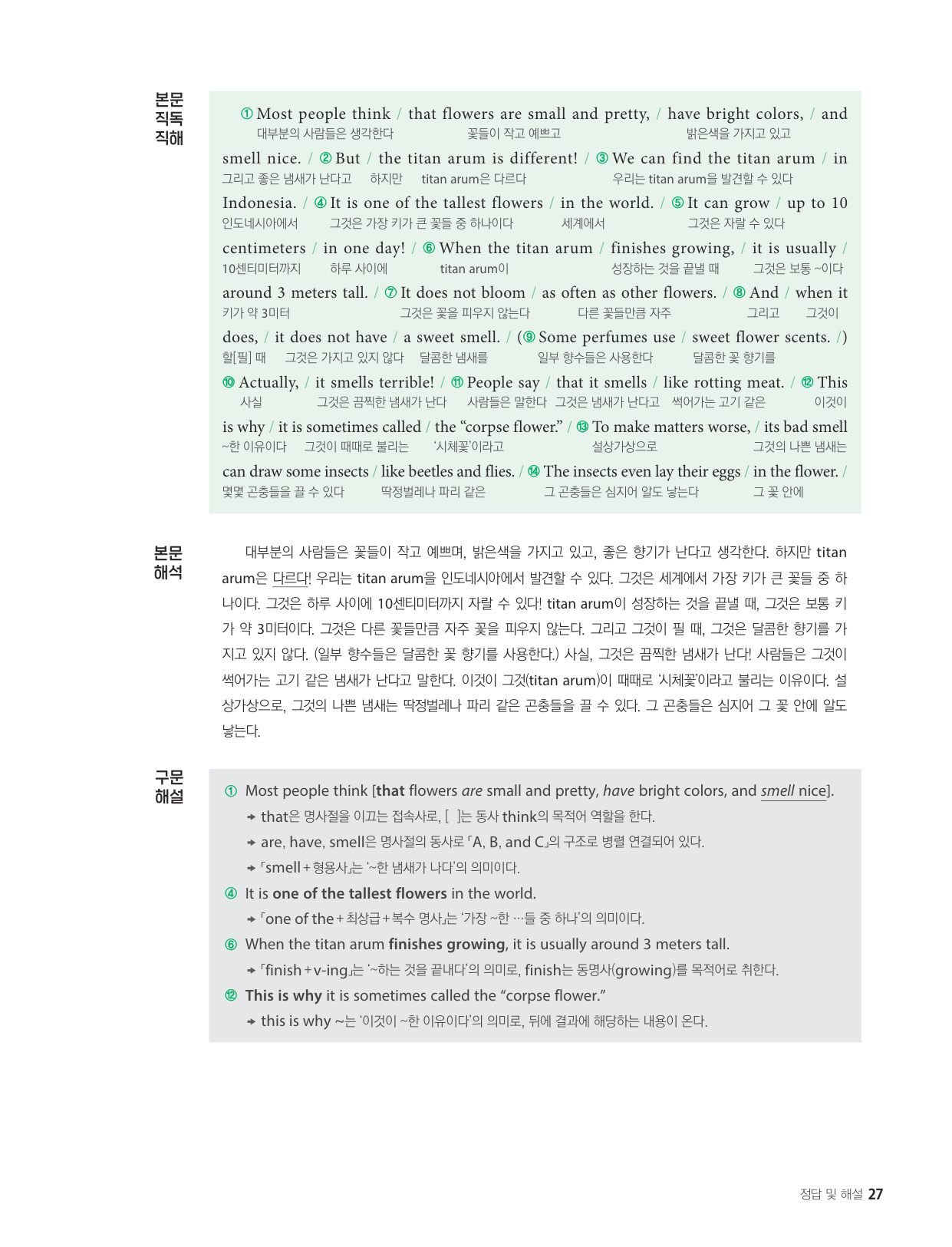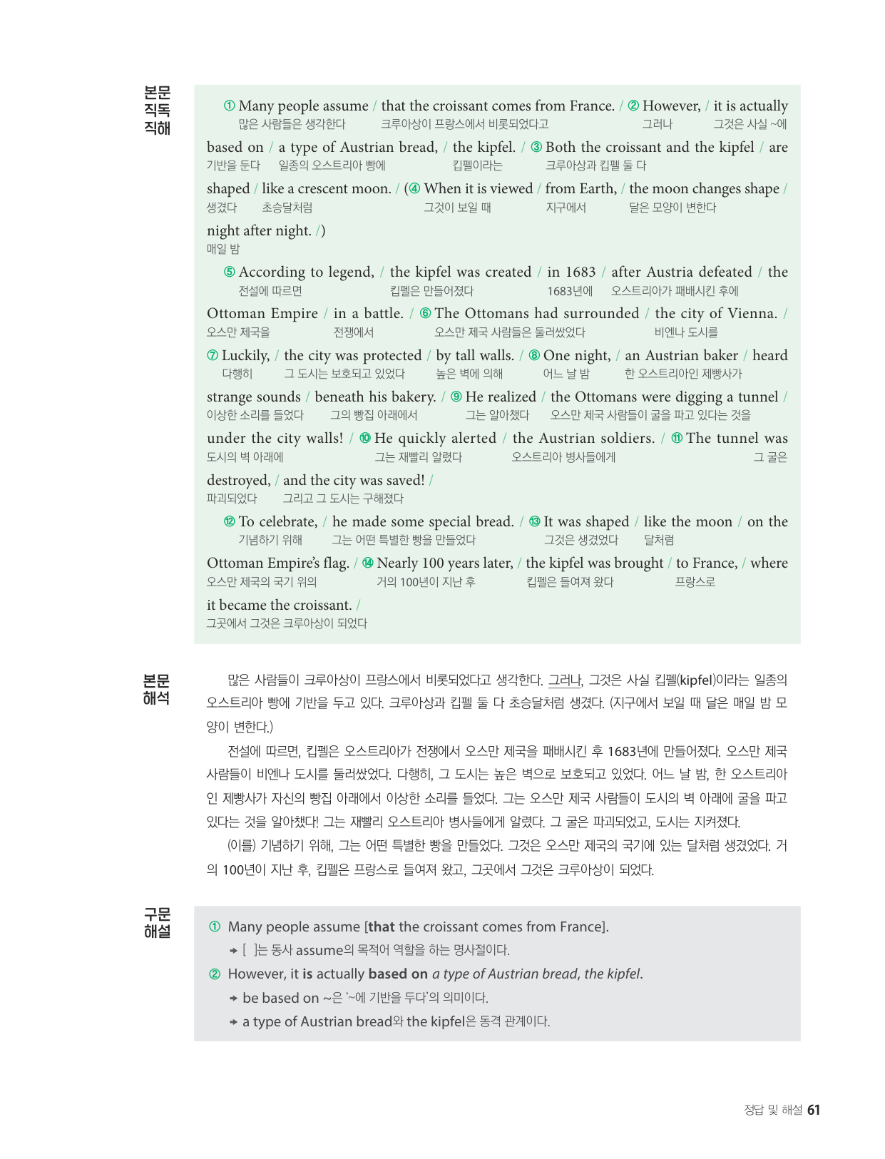 - 지문을 빠르게 해석할 수 있는 방법을 보여주는 직독직해 코너
