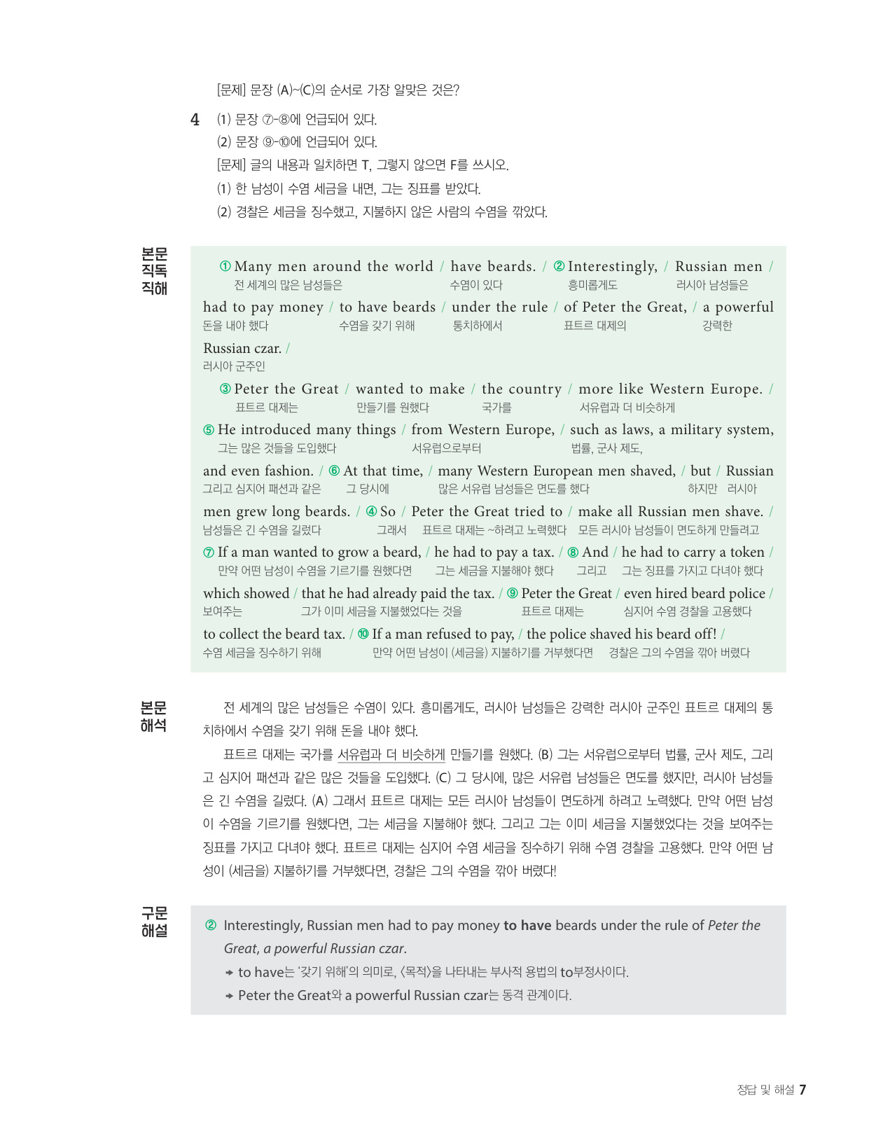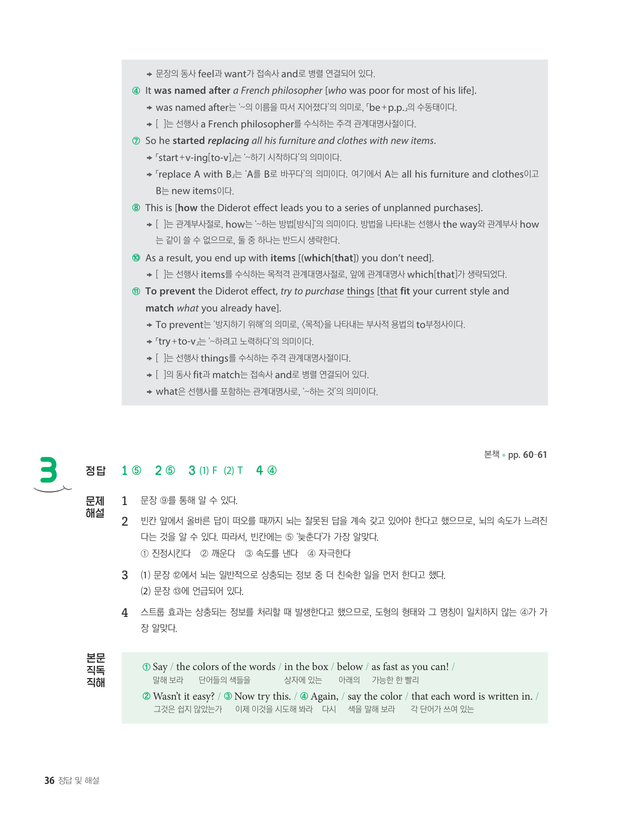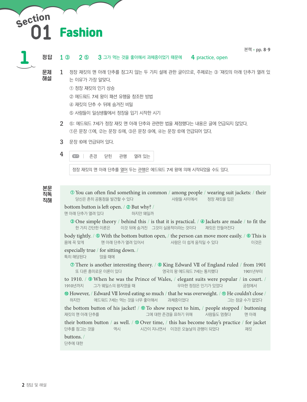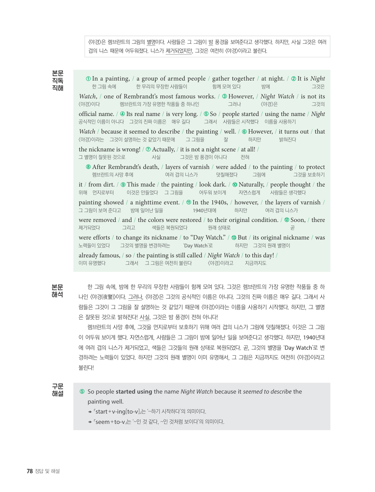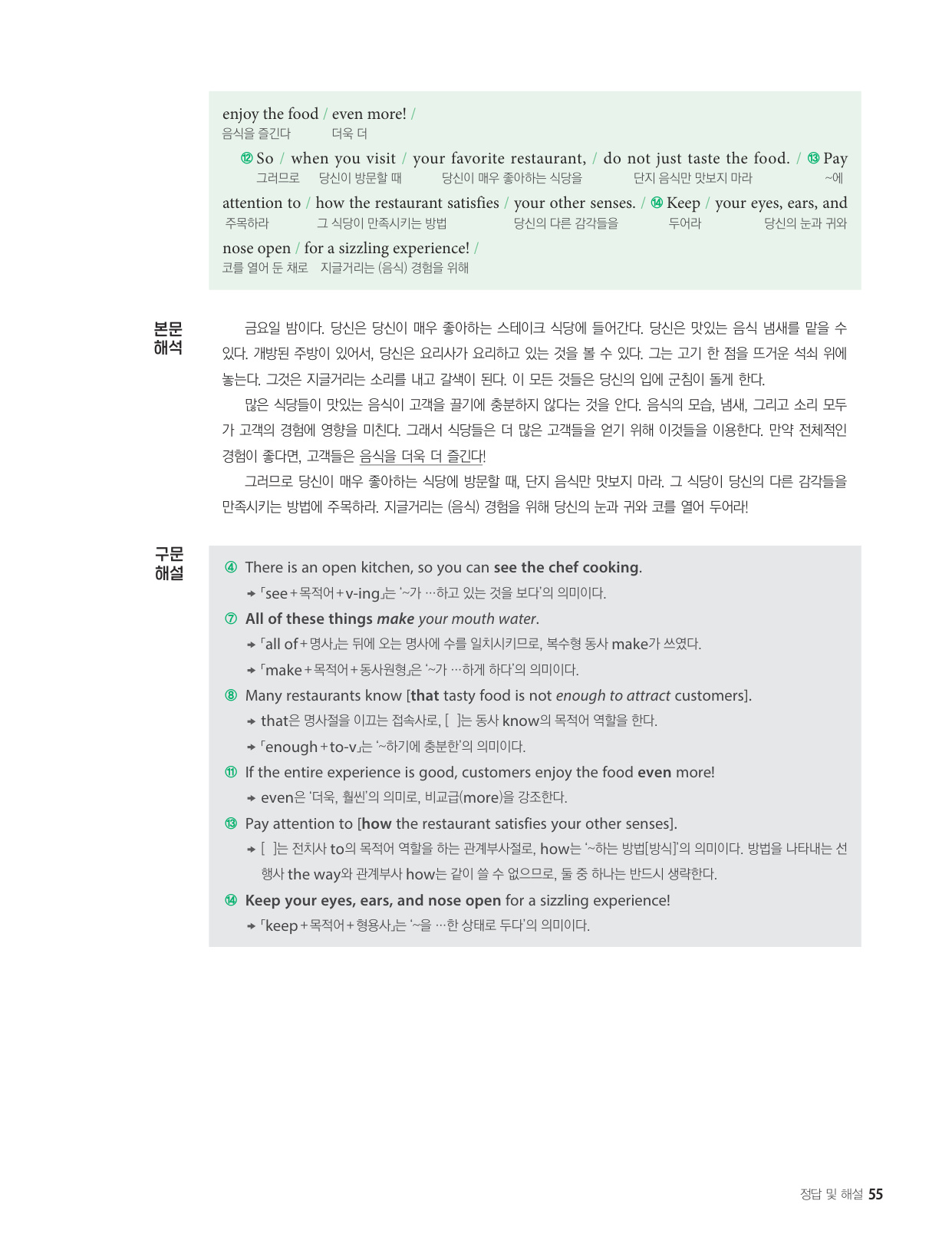 - 지문을 빠르게 해석할 수 있는 방법을 보여주는 직독직해 코너