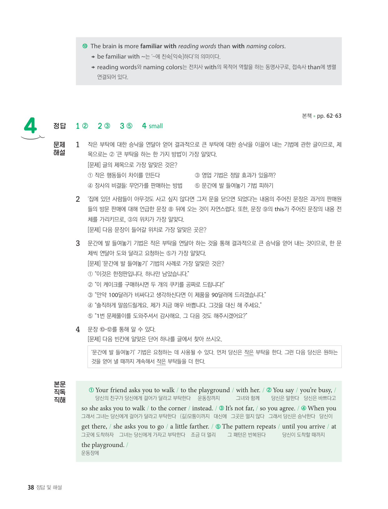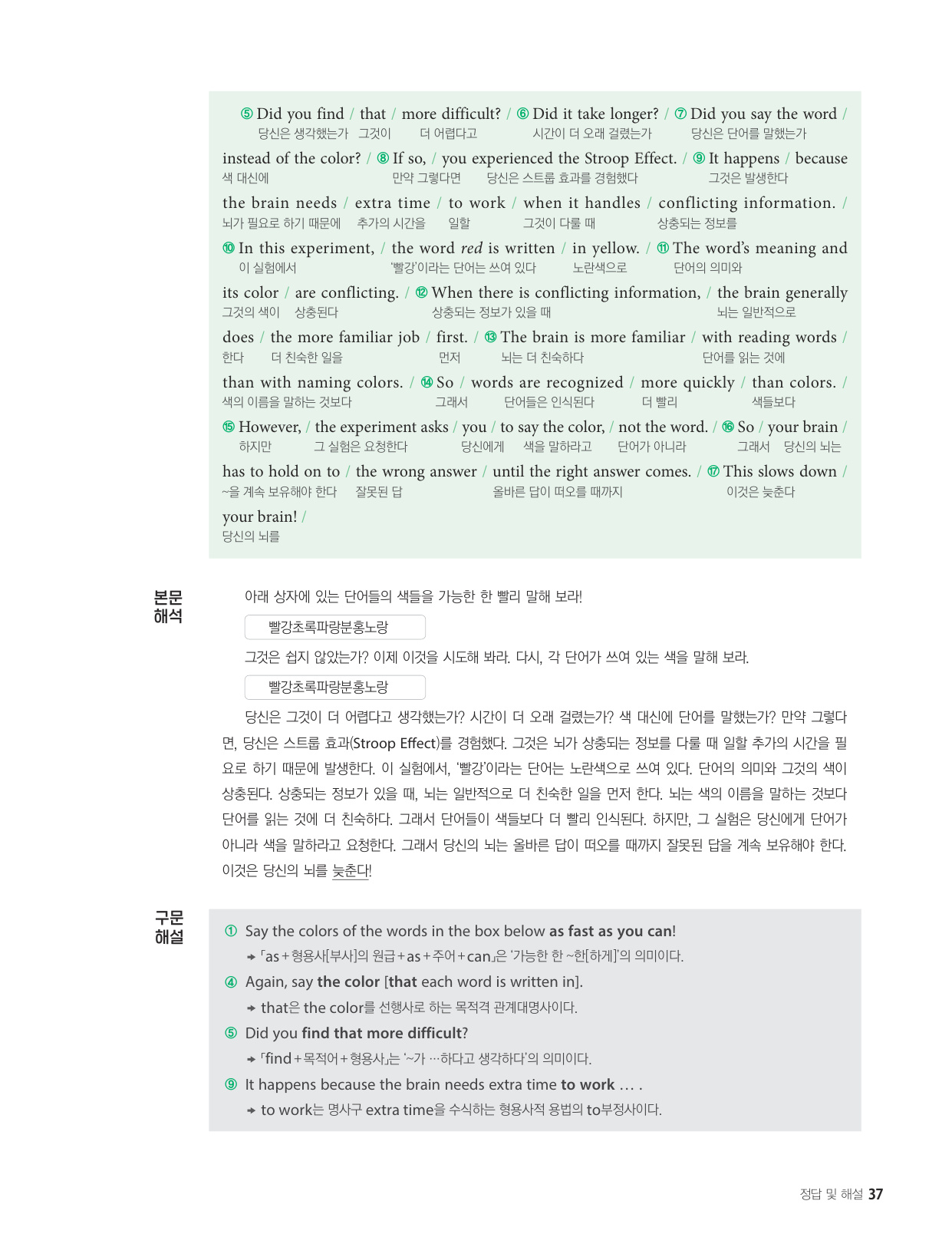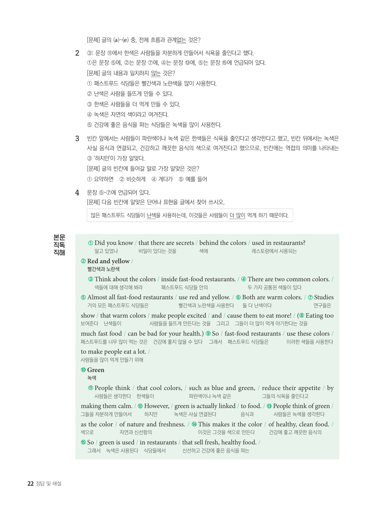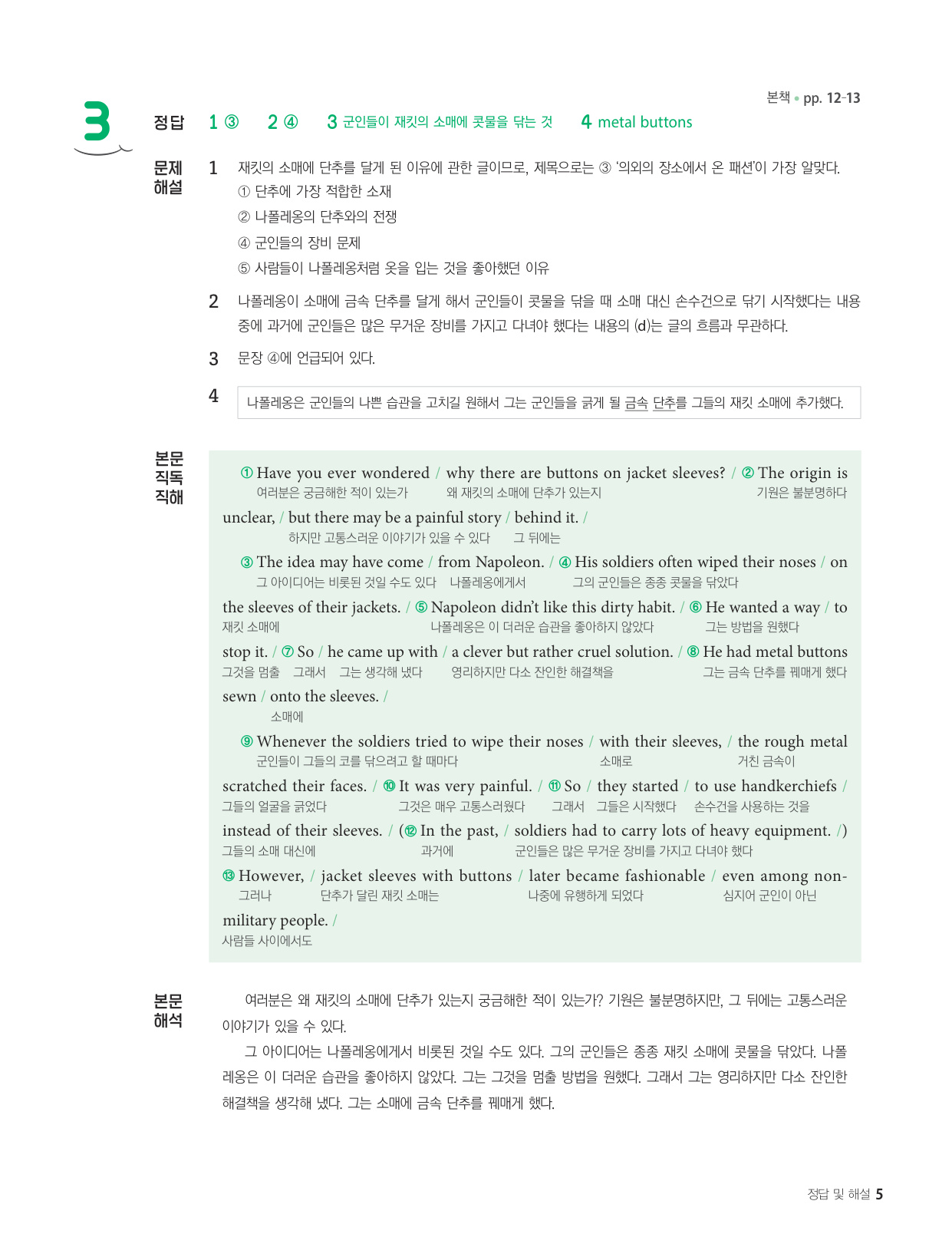 - 지문을 빠르게 해석할 수 있는 방법을 보여주는 직독직해 코너