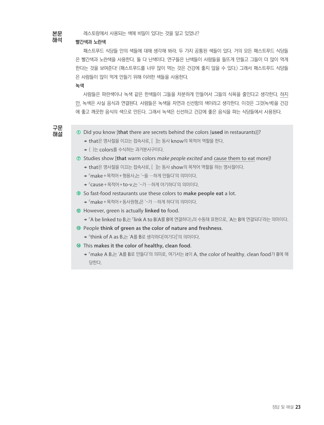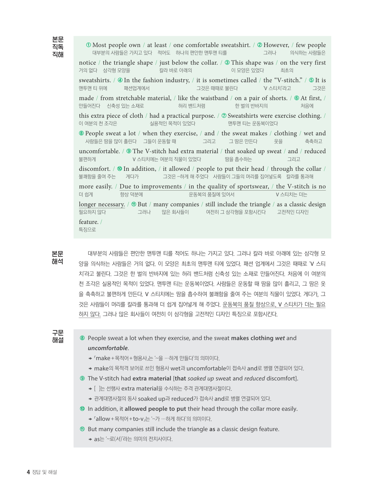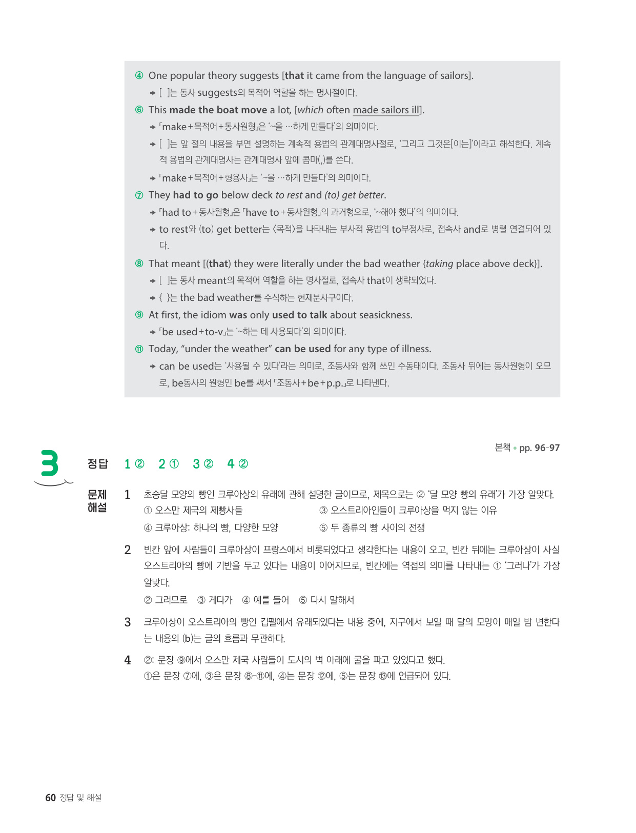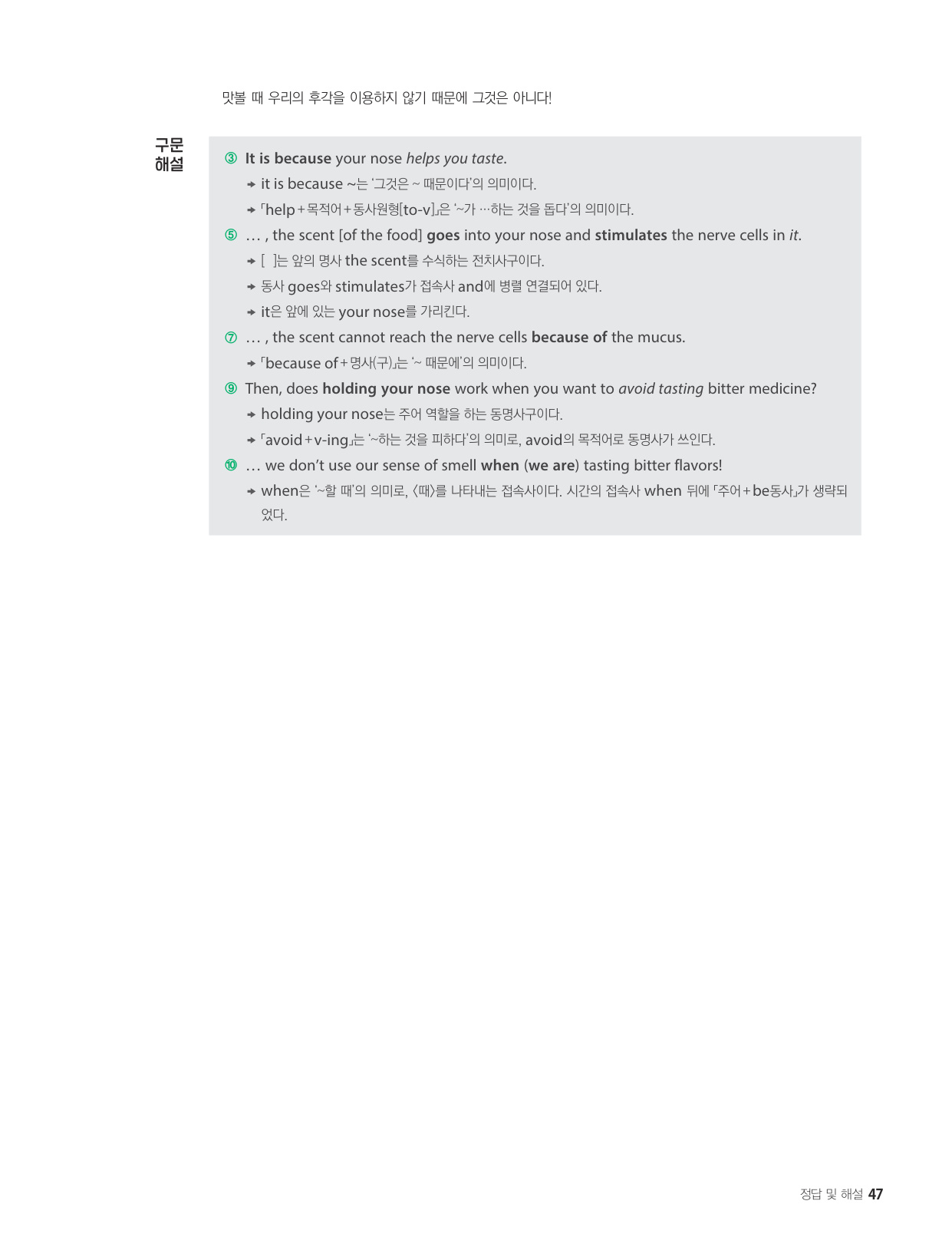- 해석이 안 되는 부분이 없도록 도와주는 구문 해설