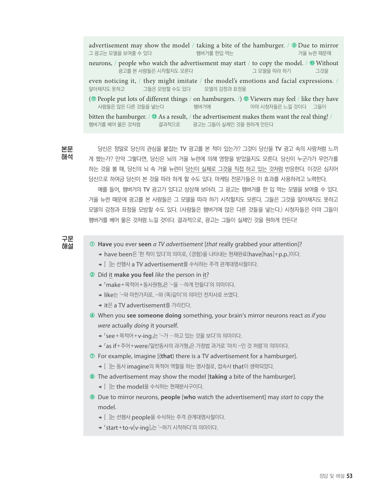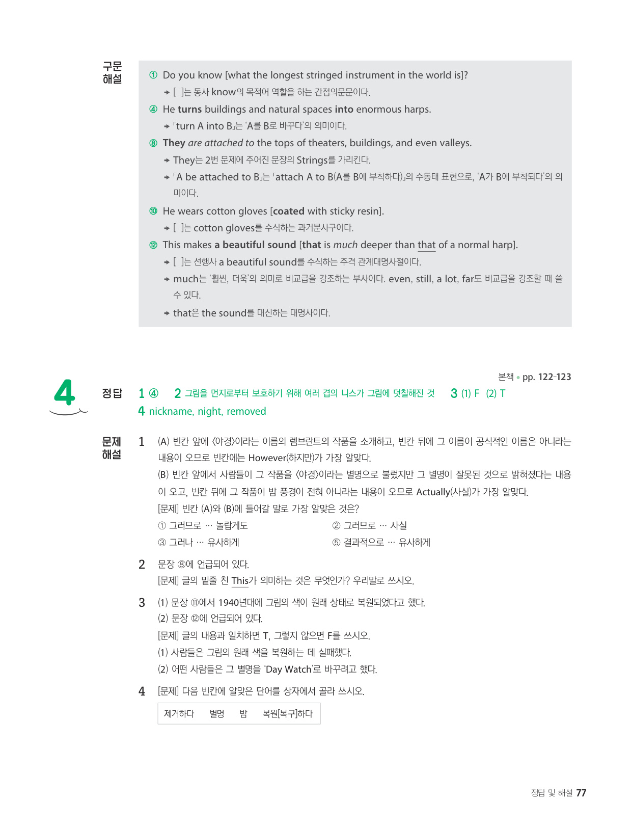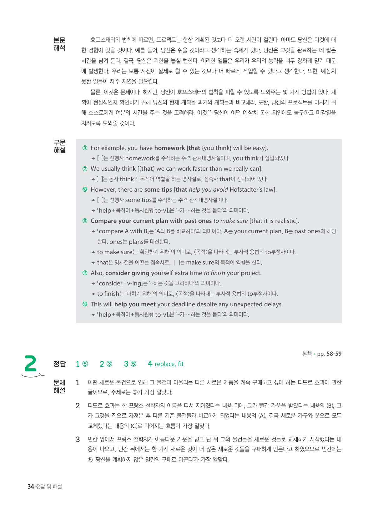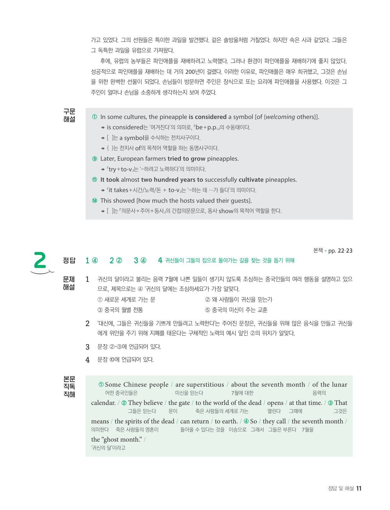 - 해석이 안 되는 부분이 없도록 도와주는 구문 해설