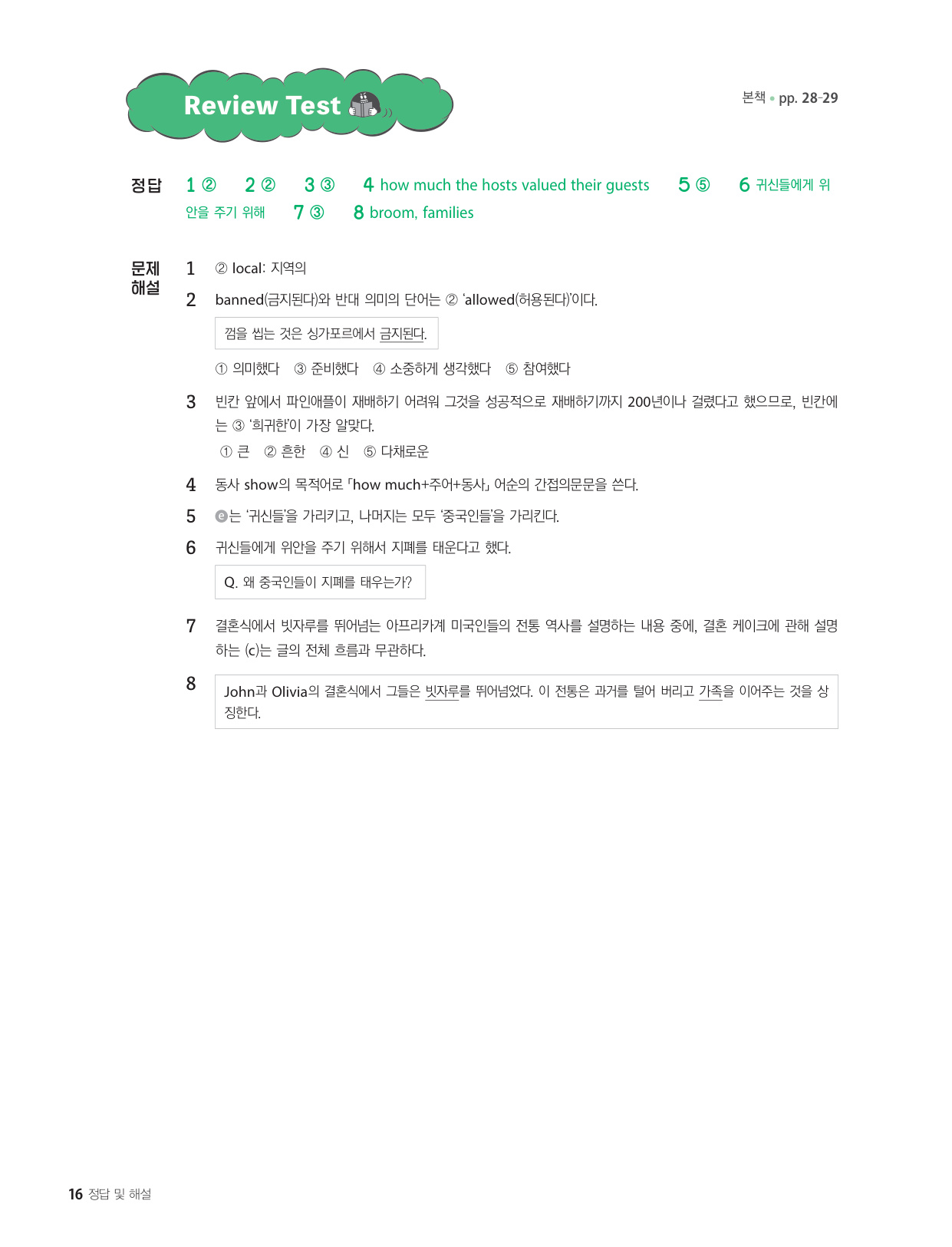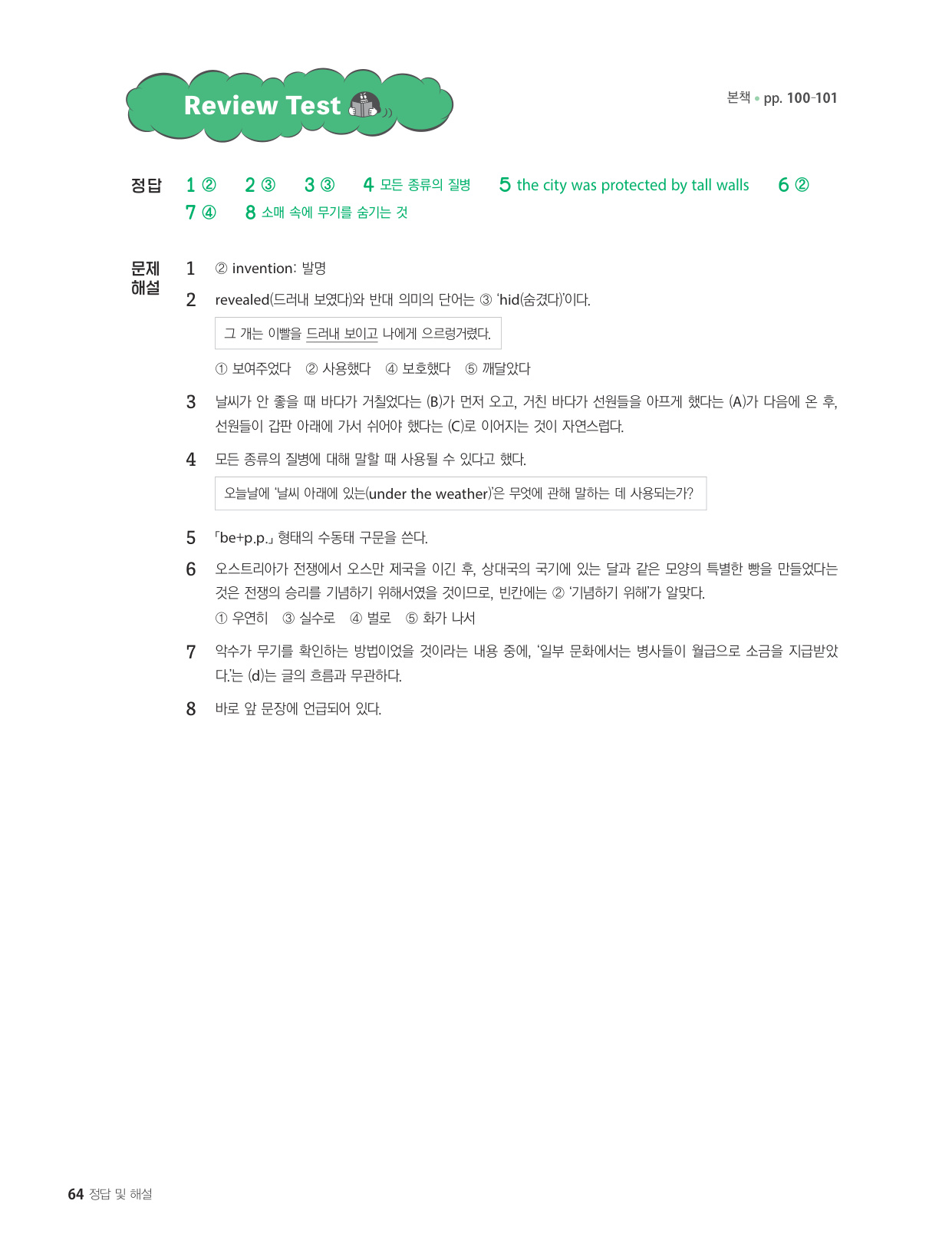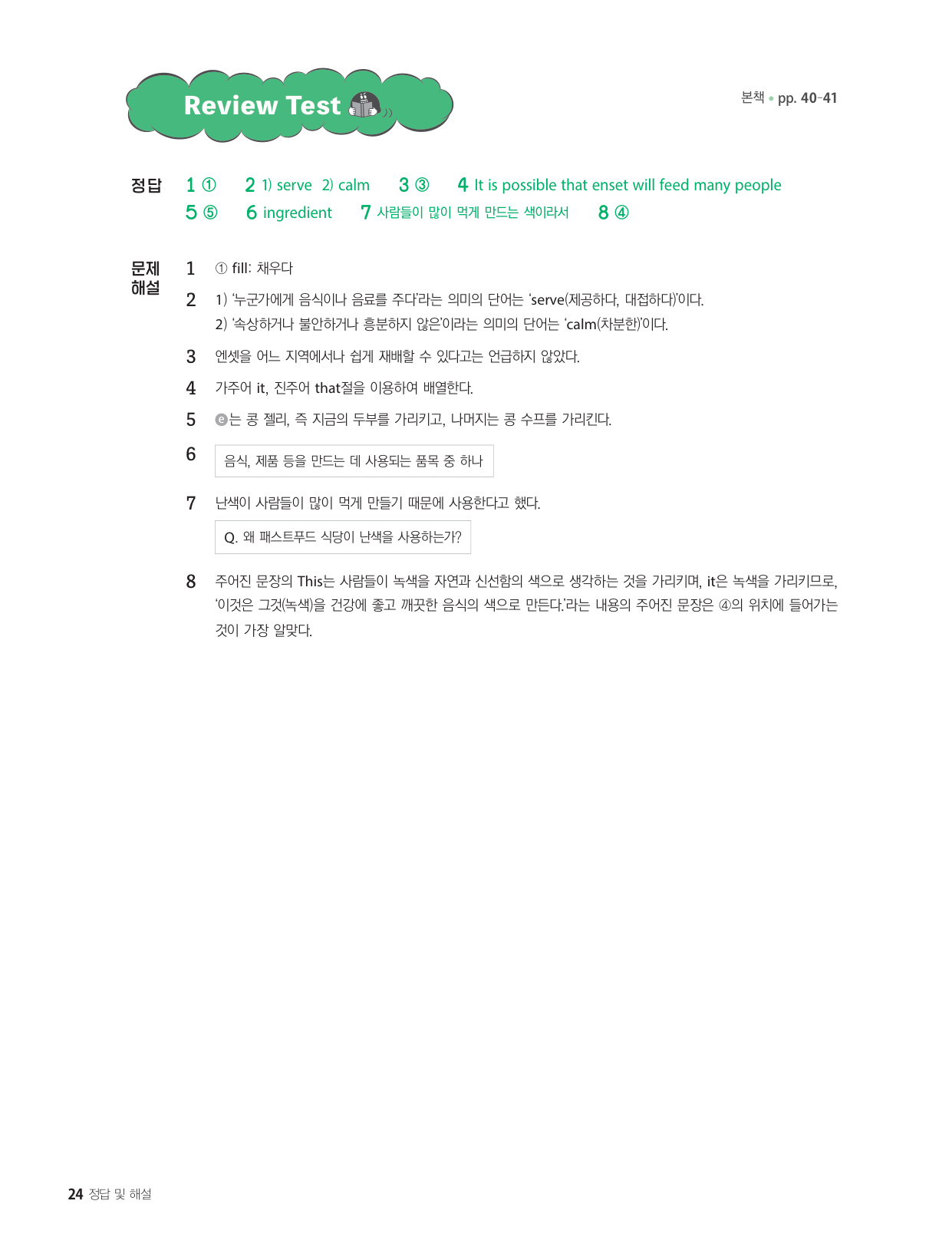 - 내신 대비 서술형 문항 및 수능 유형 문항으로 섹션을 복습하는 Review Test