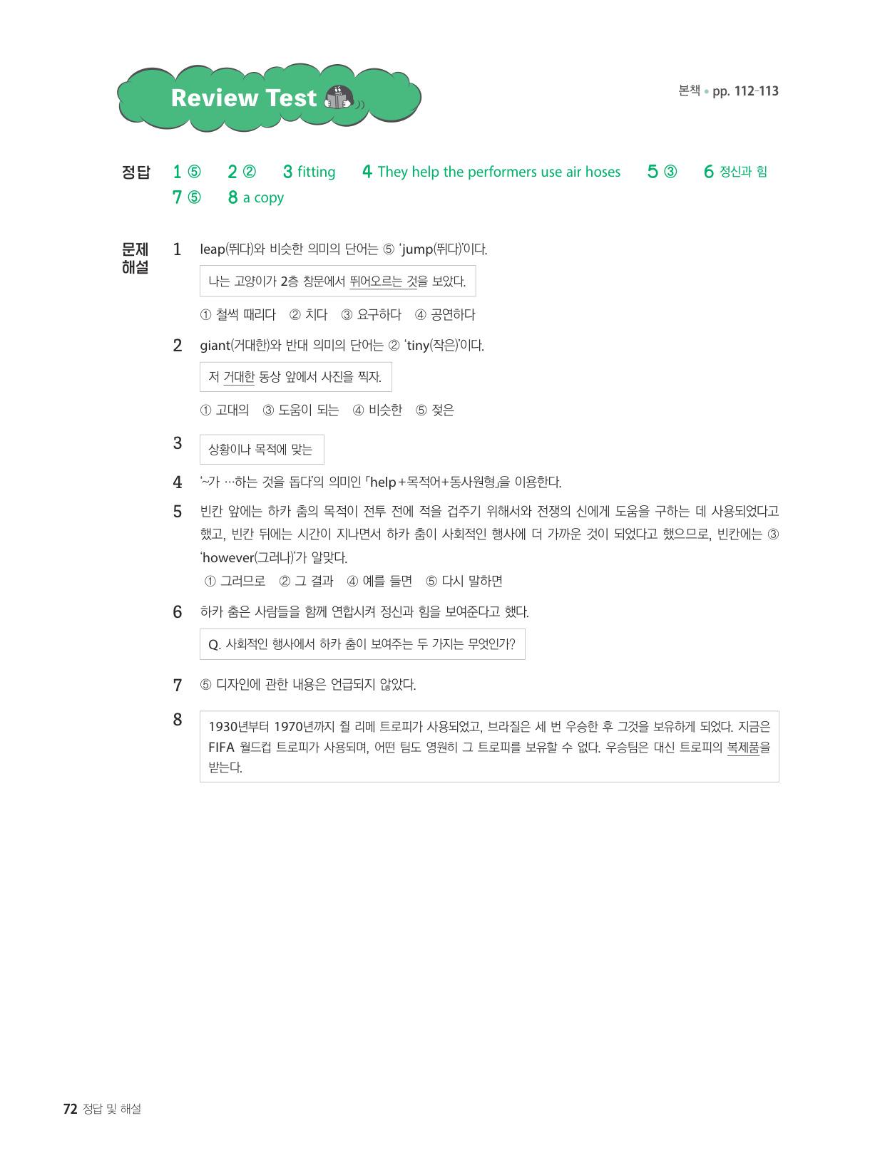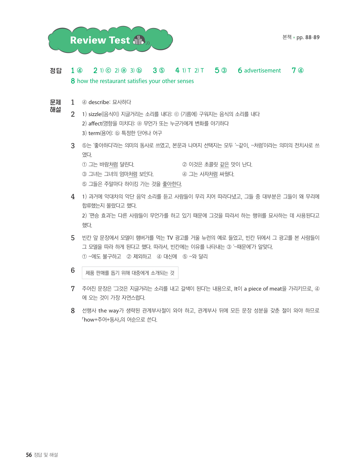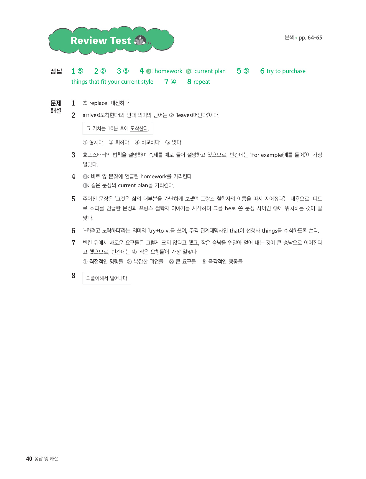 - 내신 대비 서술형 문항 및 수능 유형 문항으로 섹션을 복습하는 Review Test