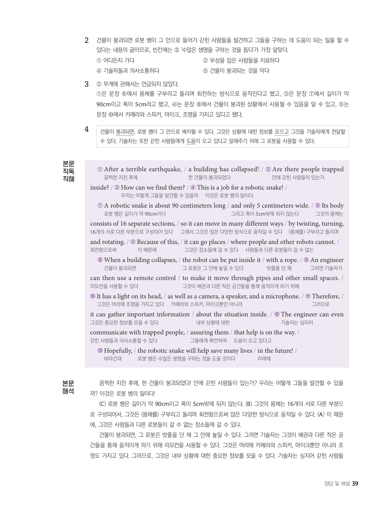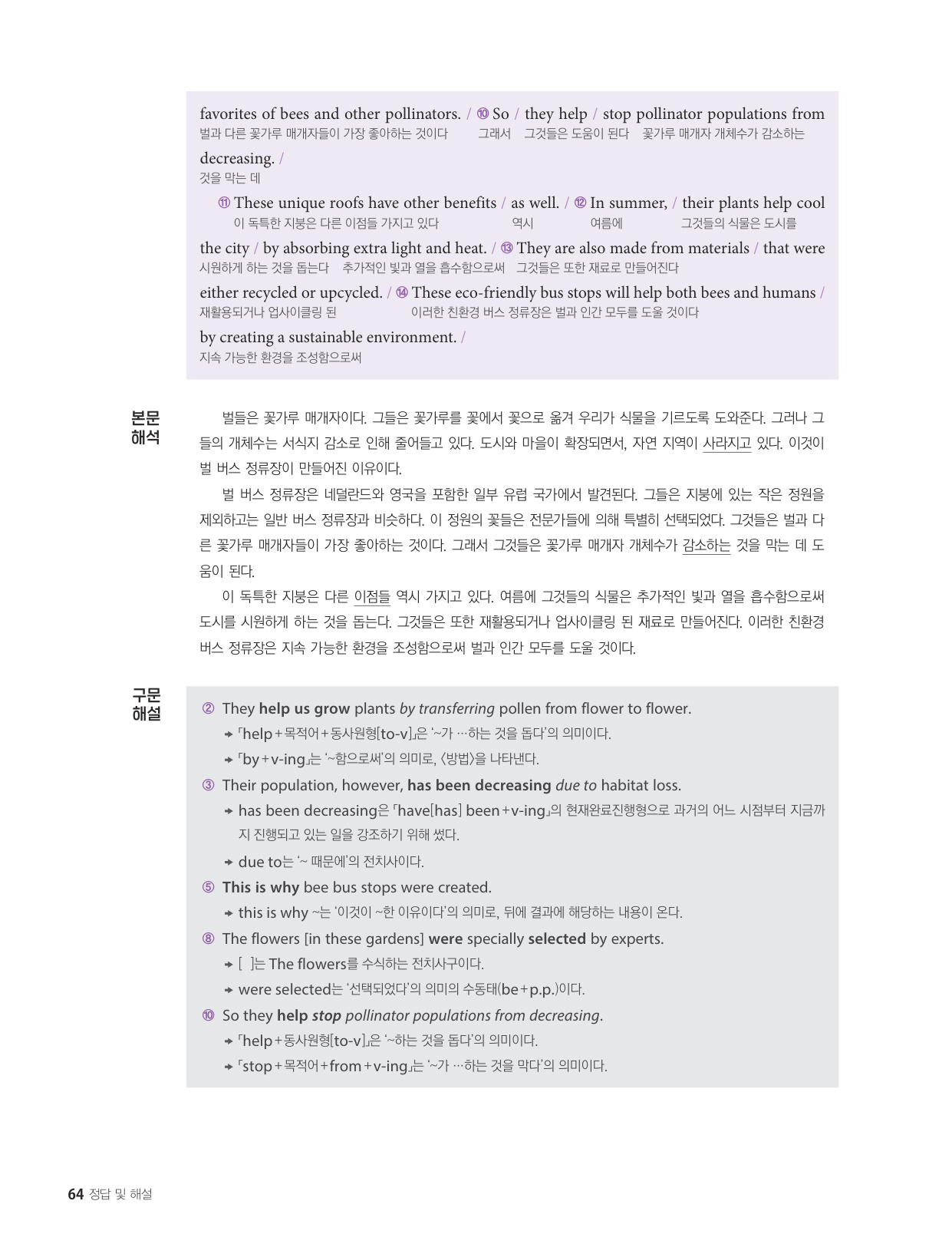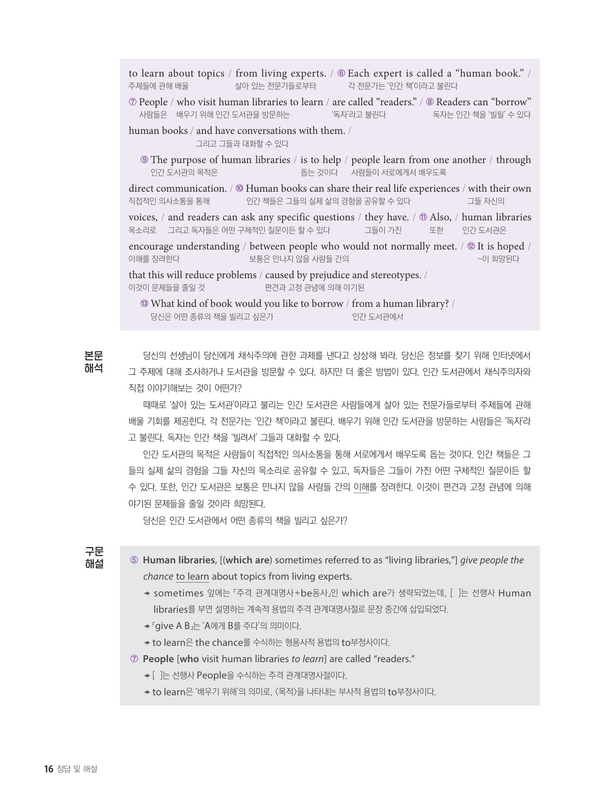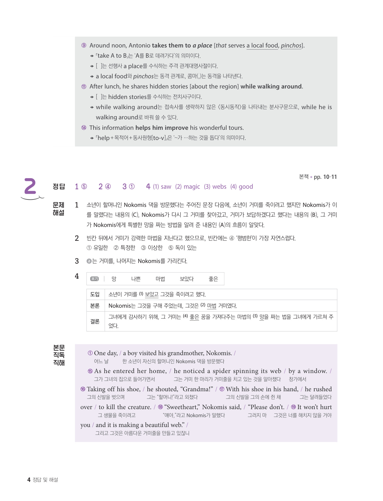 - 해석이 안 되는 부분이 없도록 도와주는 구문 해설