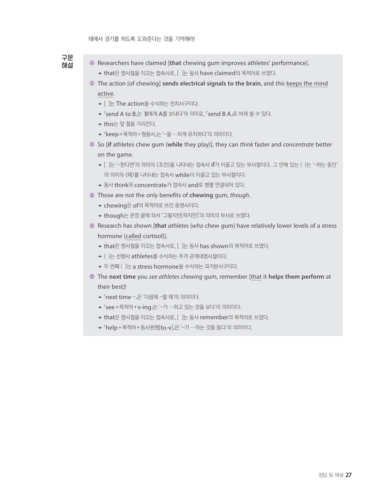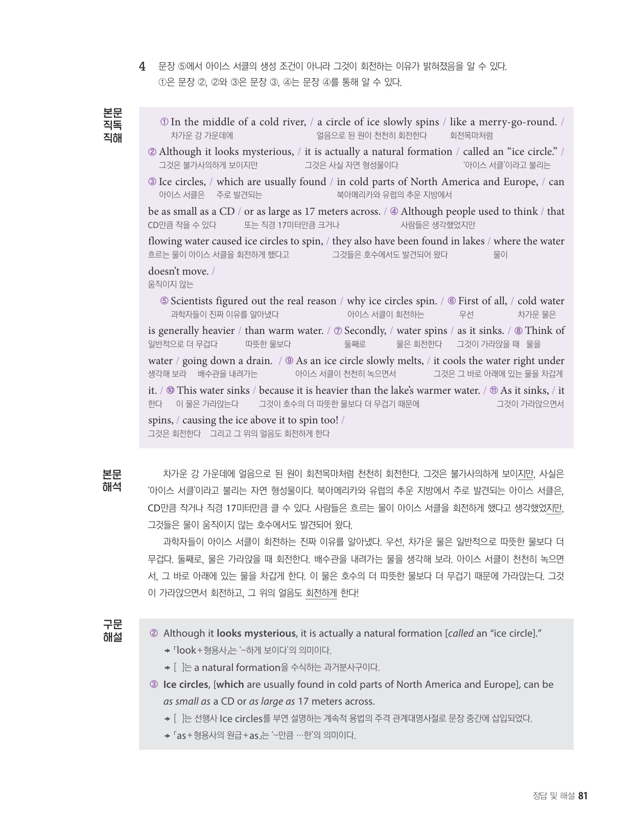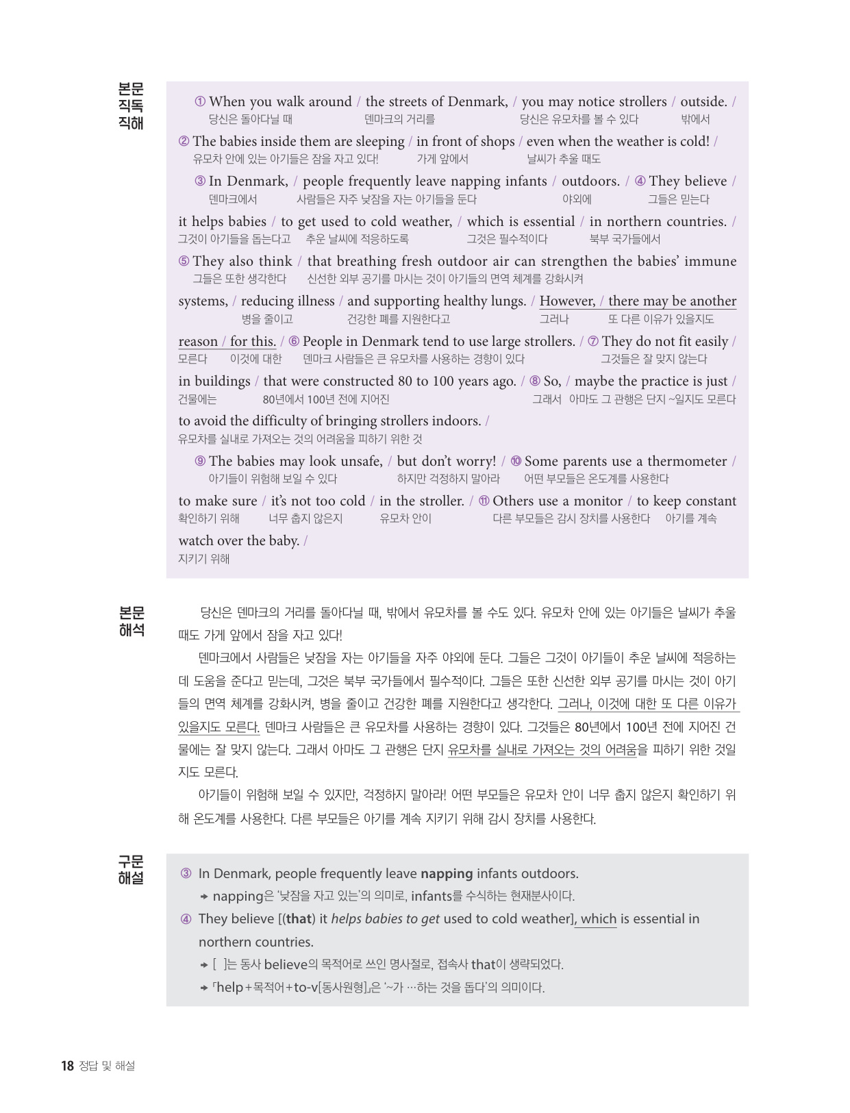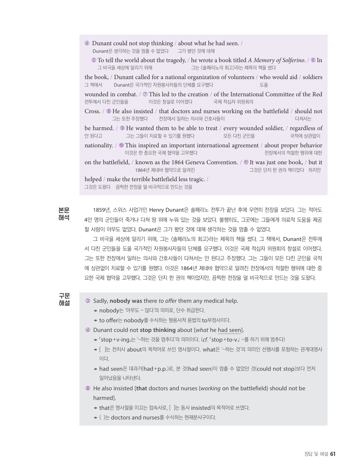 - 해석이 안 되는 부분이 없도록 도와주는 구문 해설