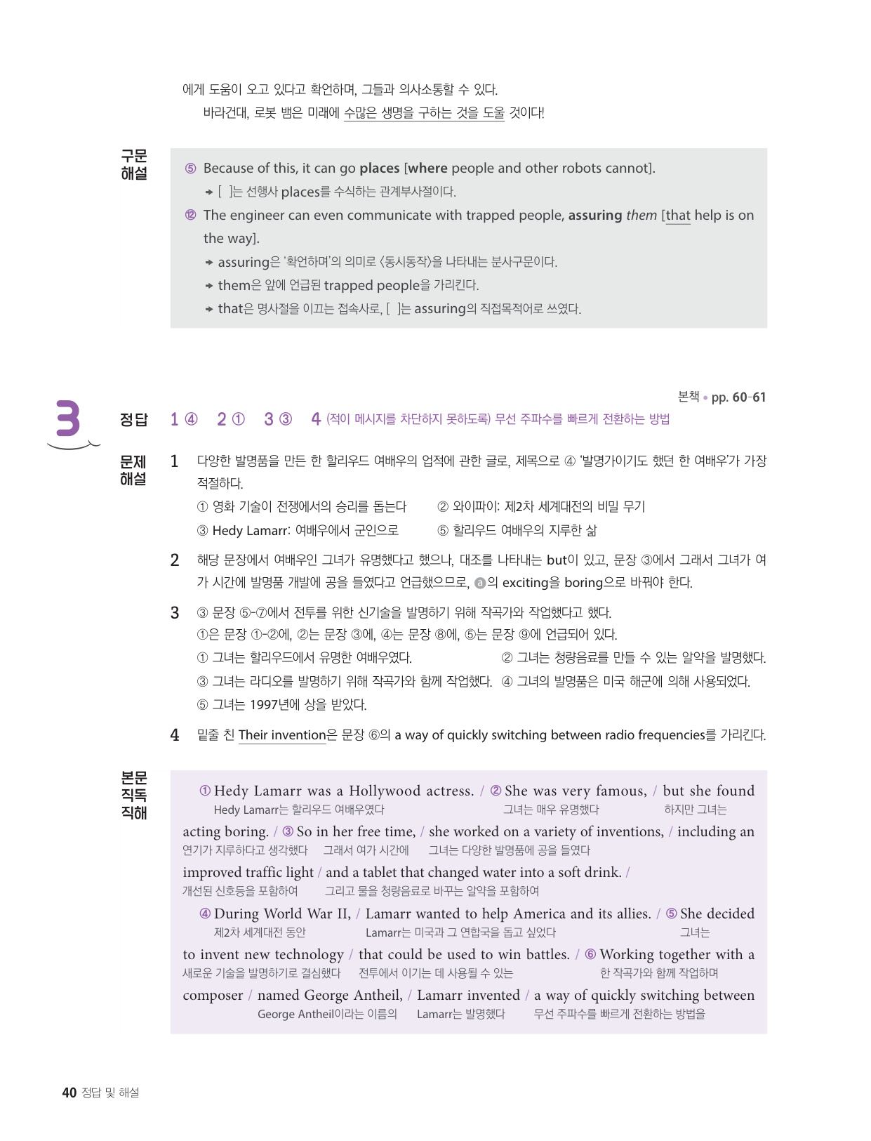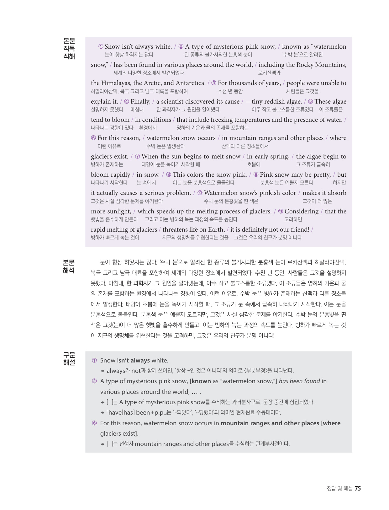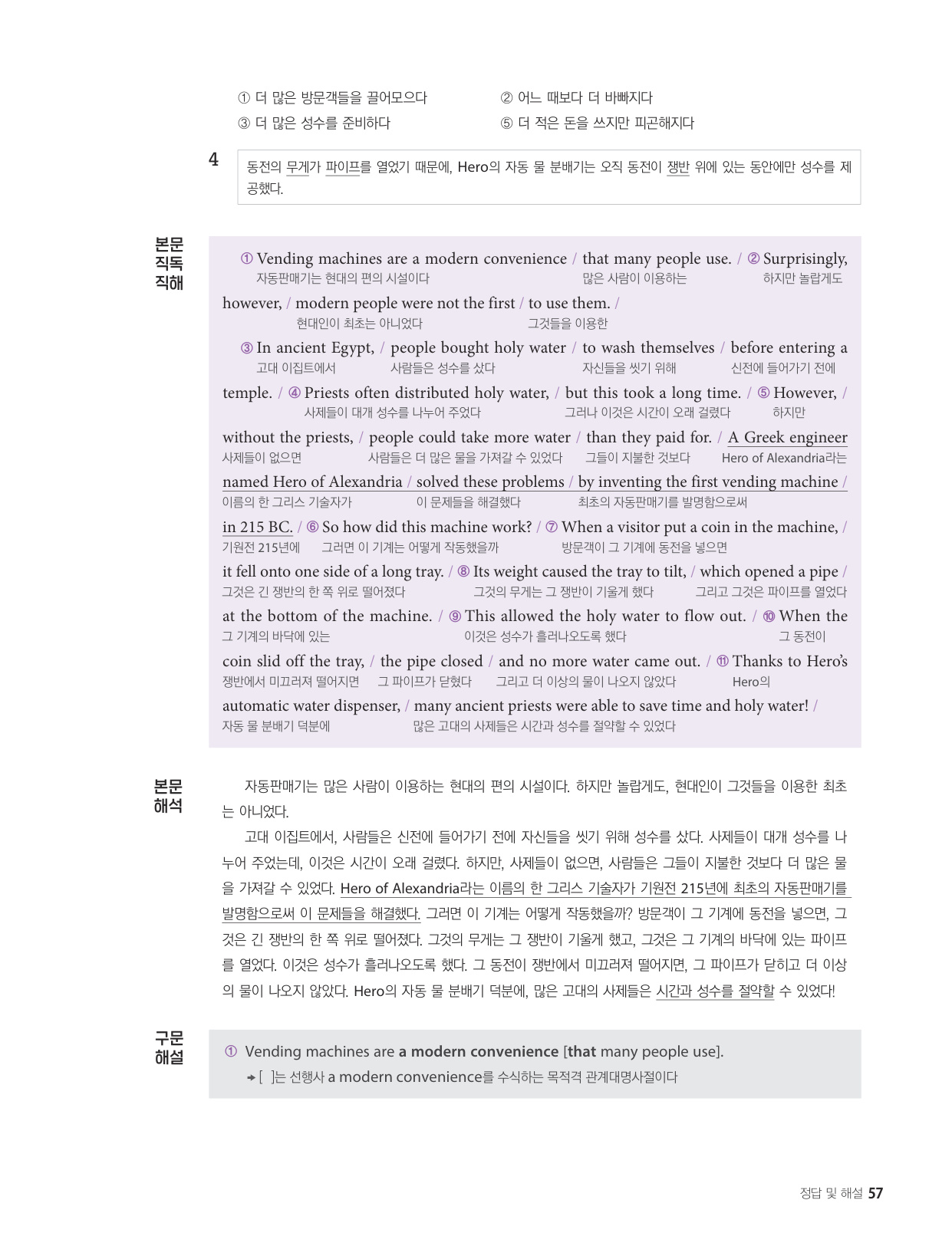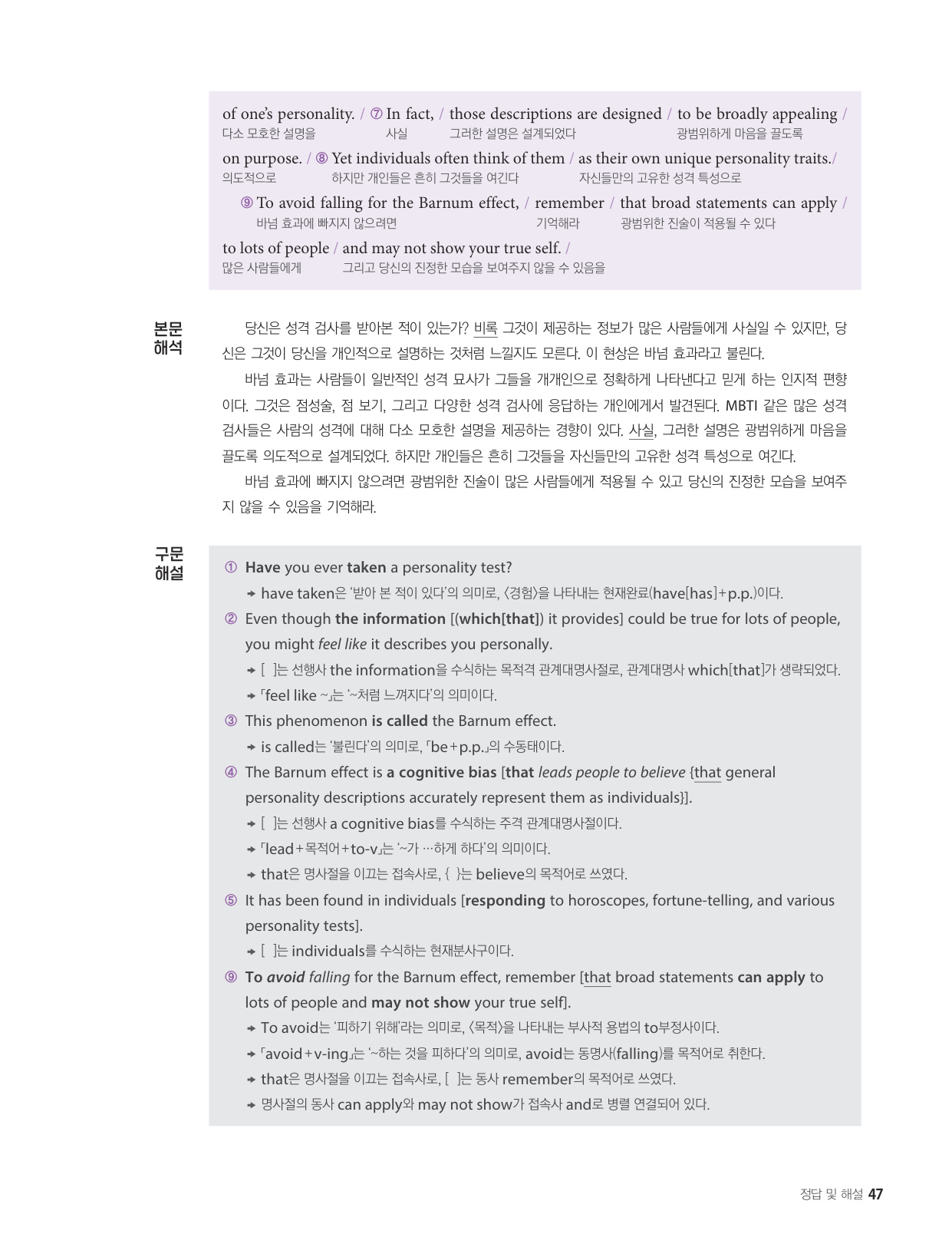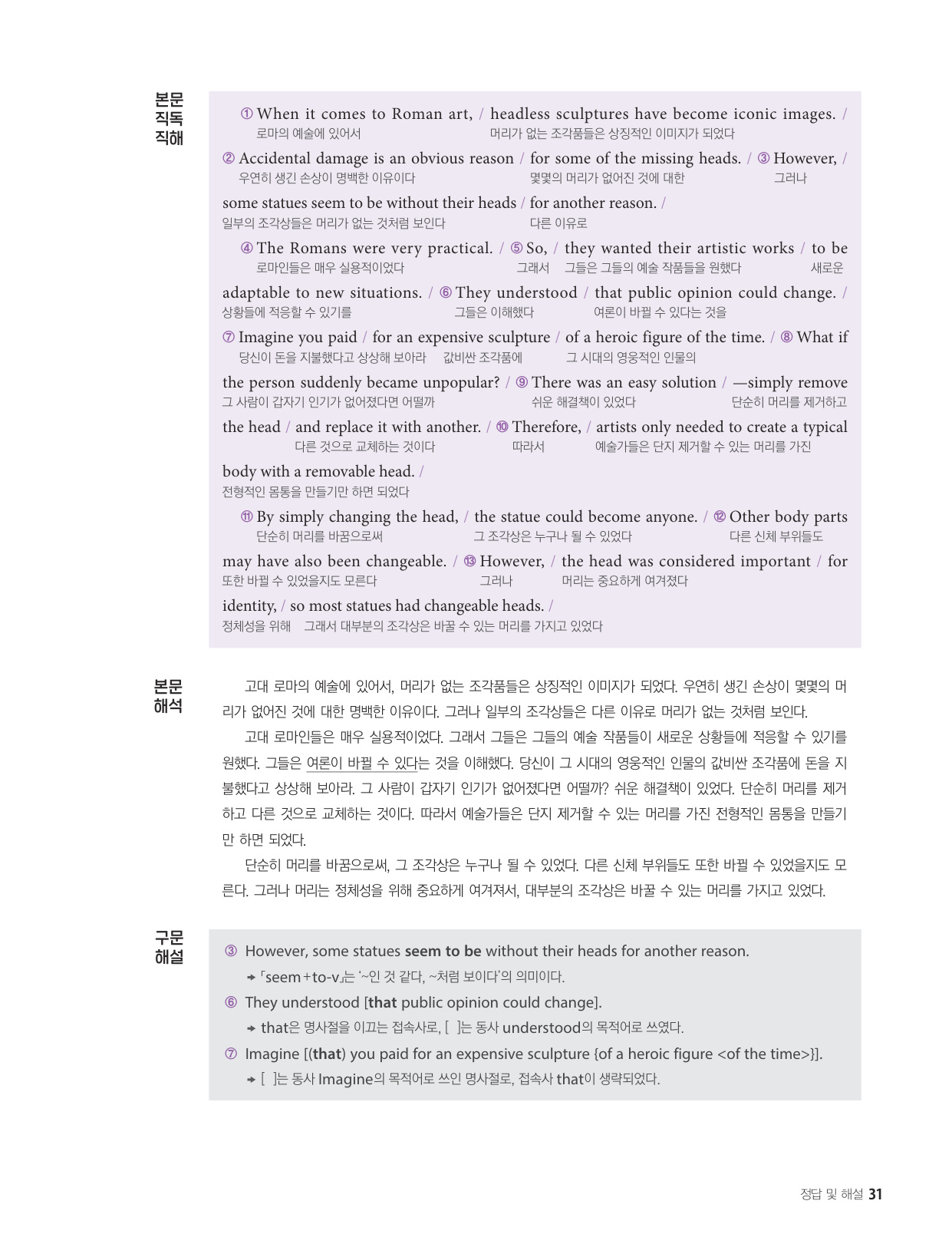 - 해석이 안 되는 부분이 없도록 도와주는 구문 해설