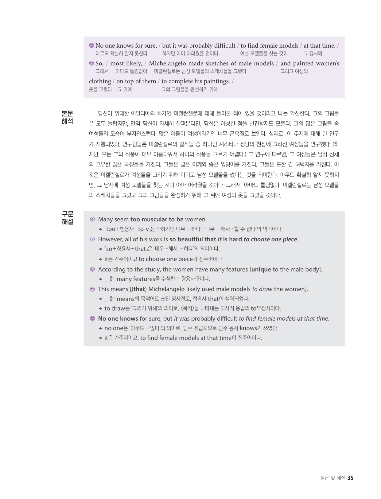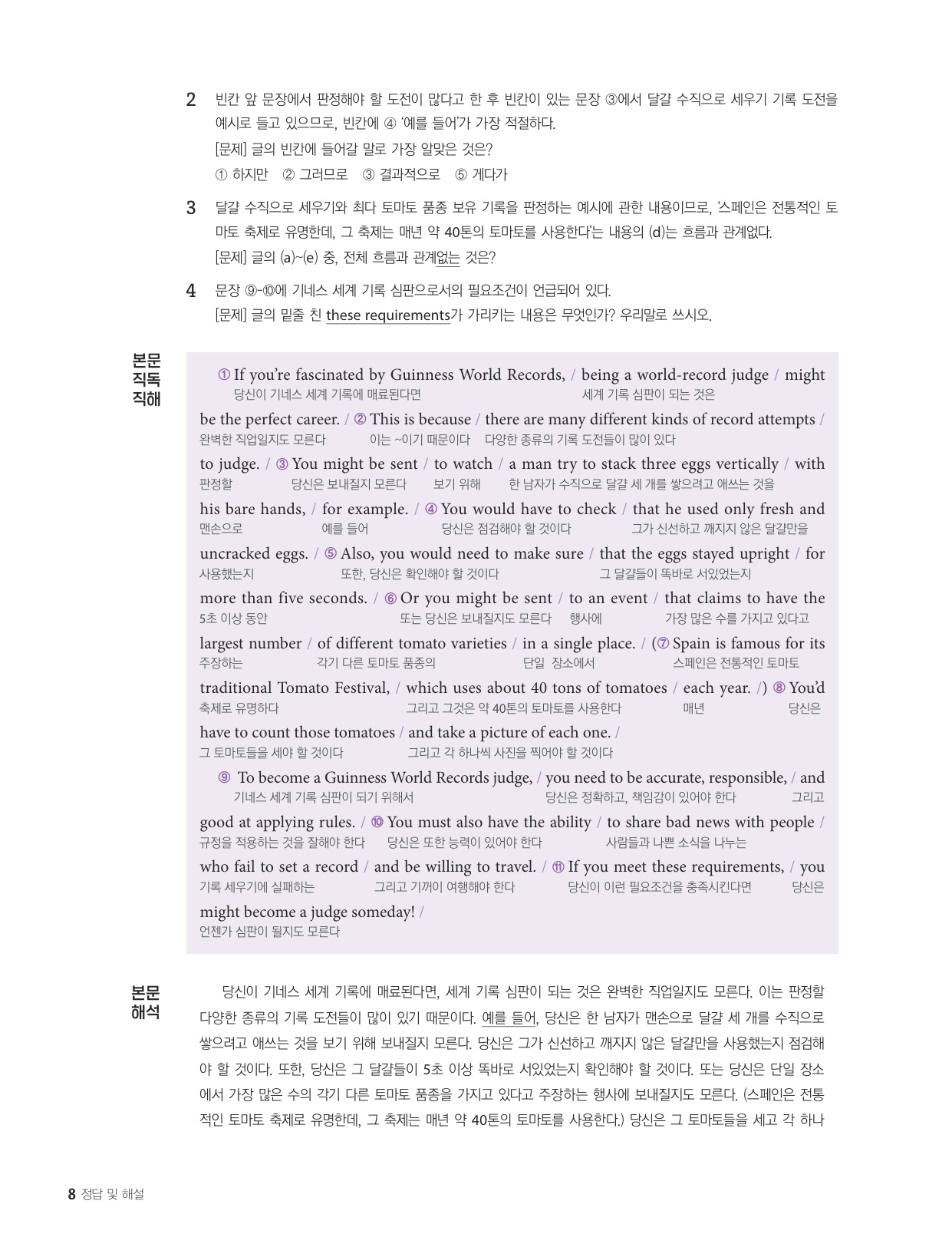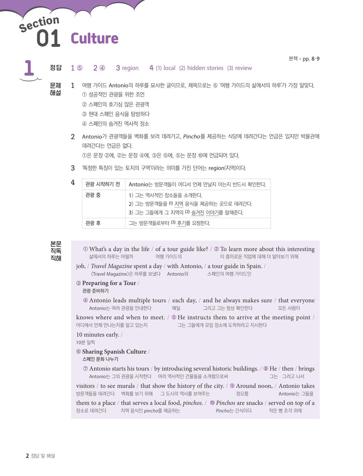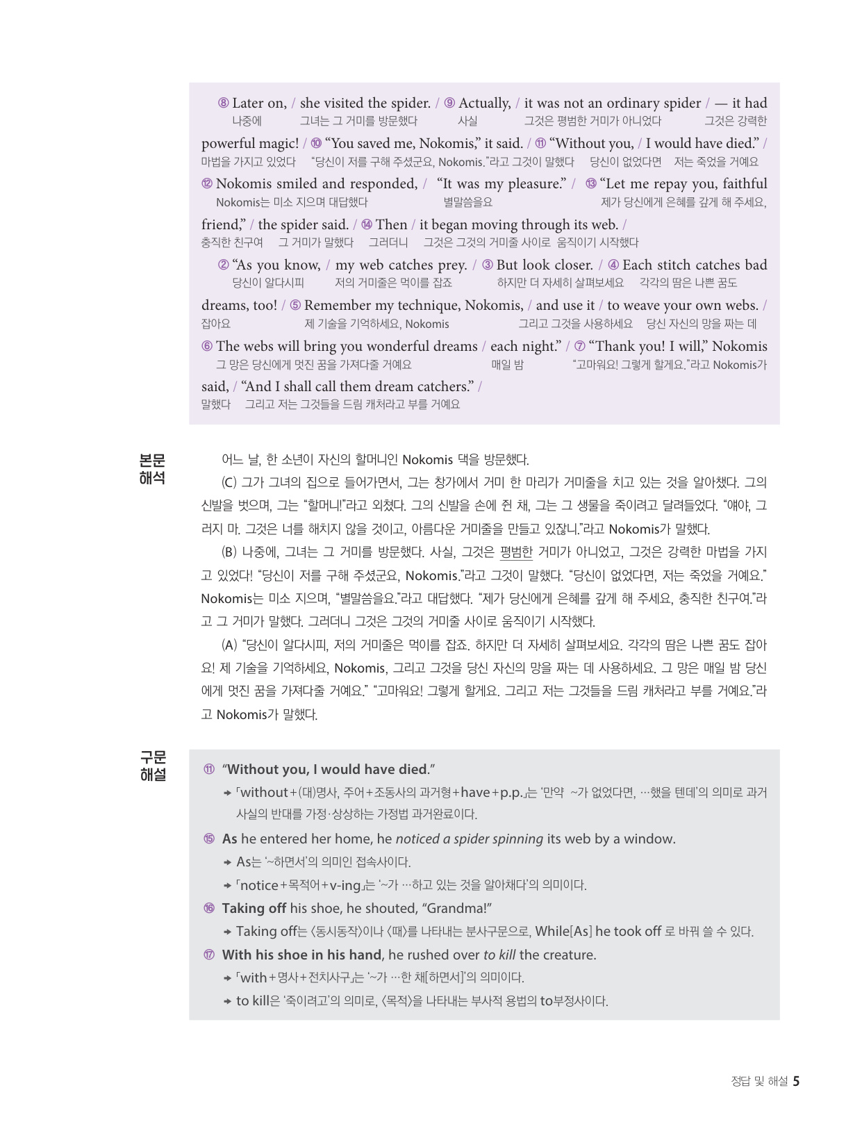 - 해석이 안 되는 부분이 없도록 도와주는 구문 해설