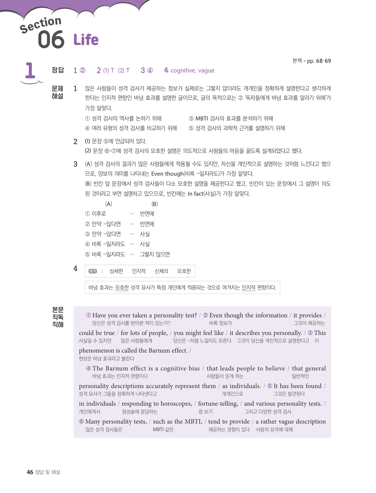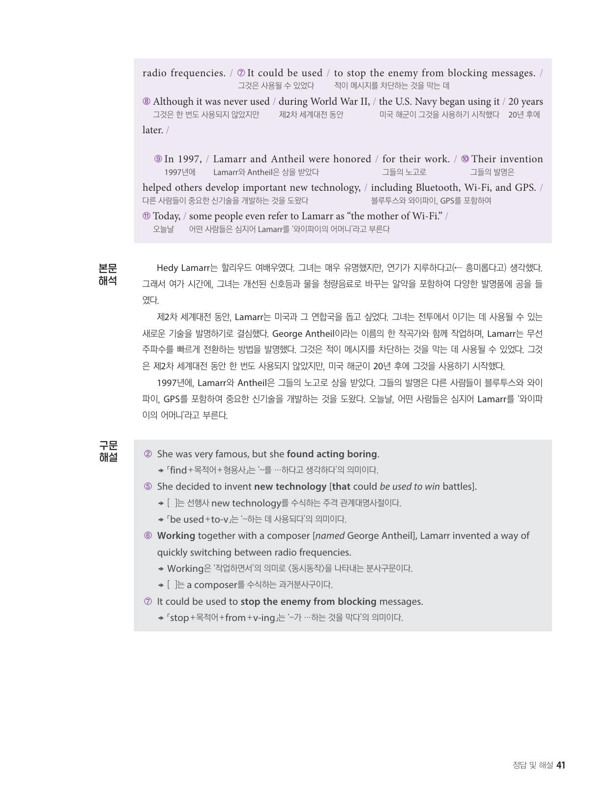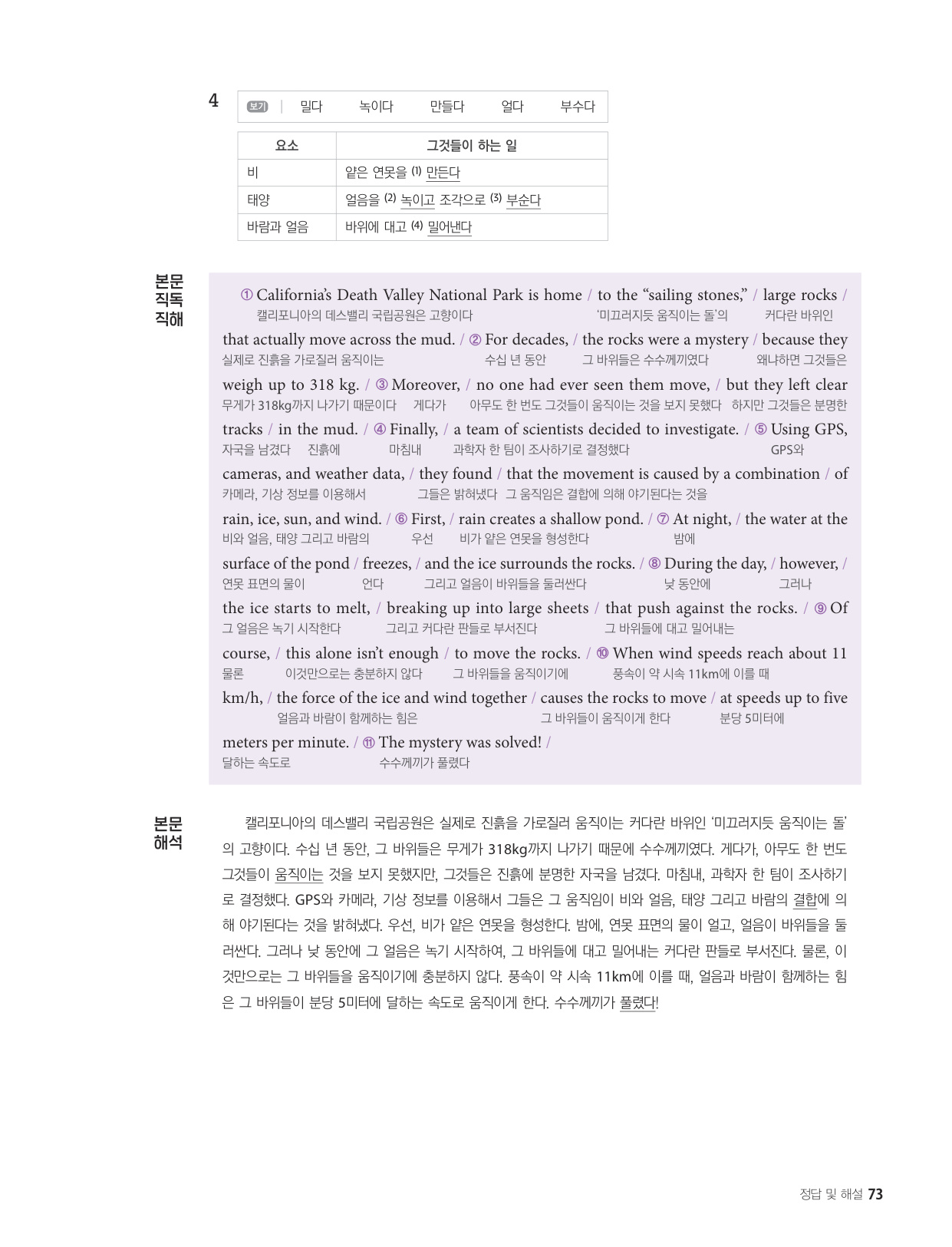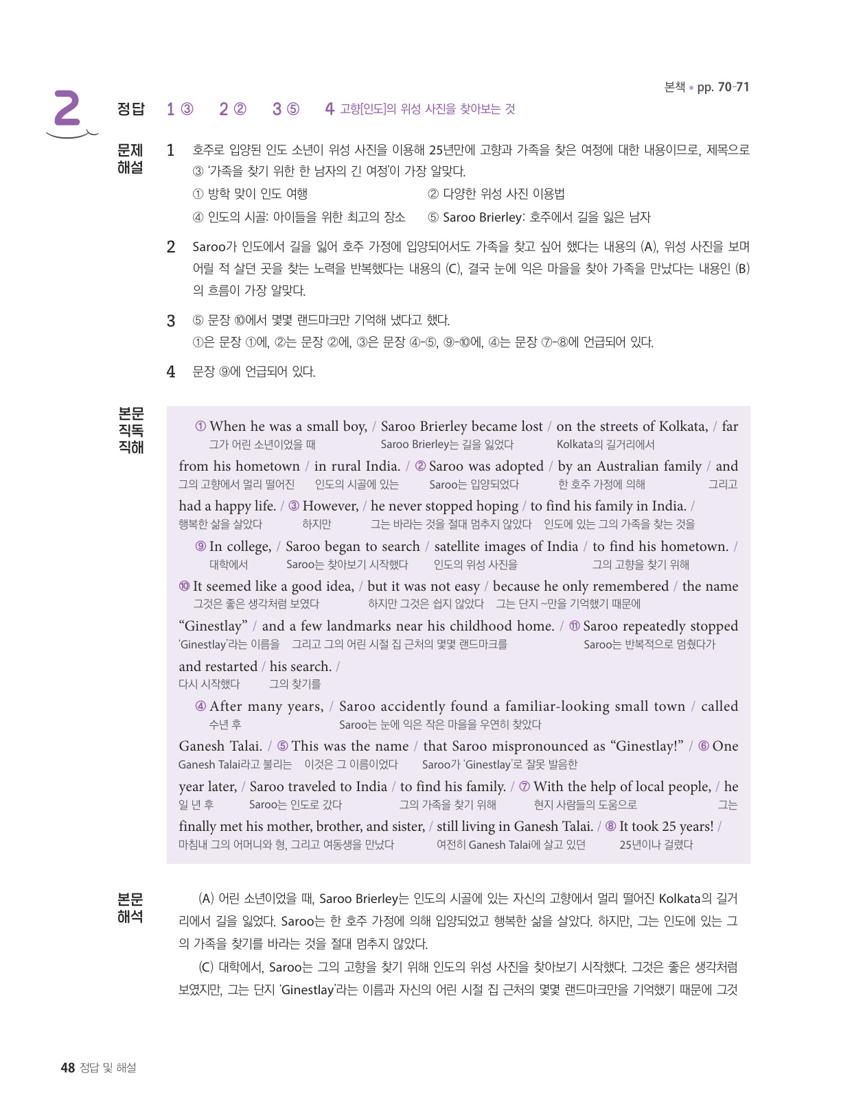 - 해석이 안 되는 부분이 없도록 도와주는 구문 해설