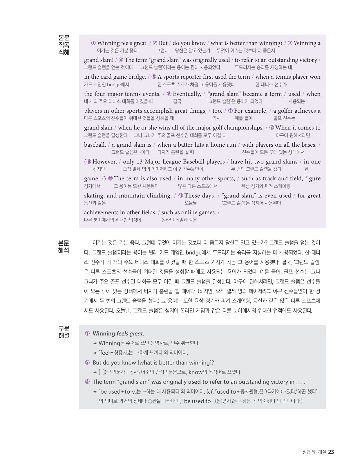 - 지문을 빠르게 해석할 수 있는 방법을 보여주는 직독직해 코너
