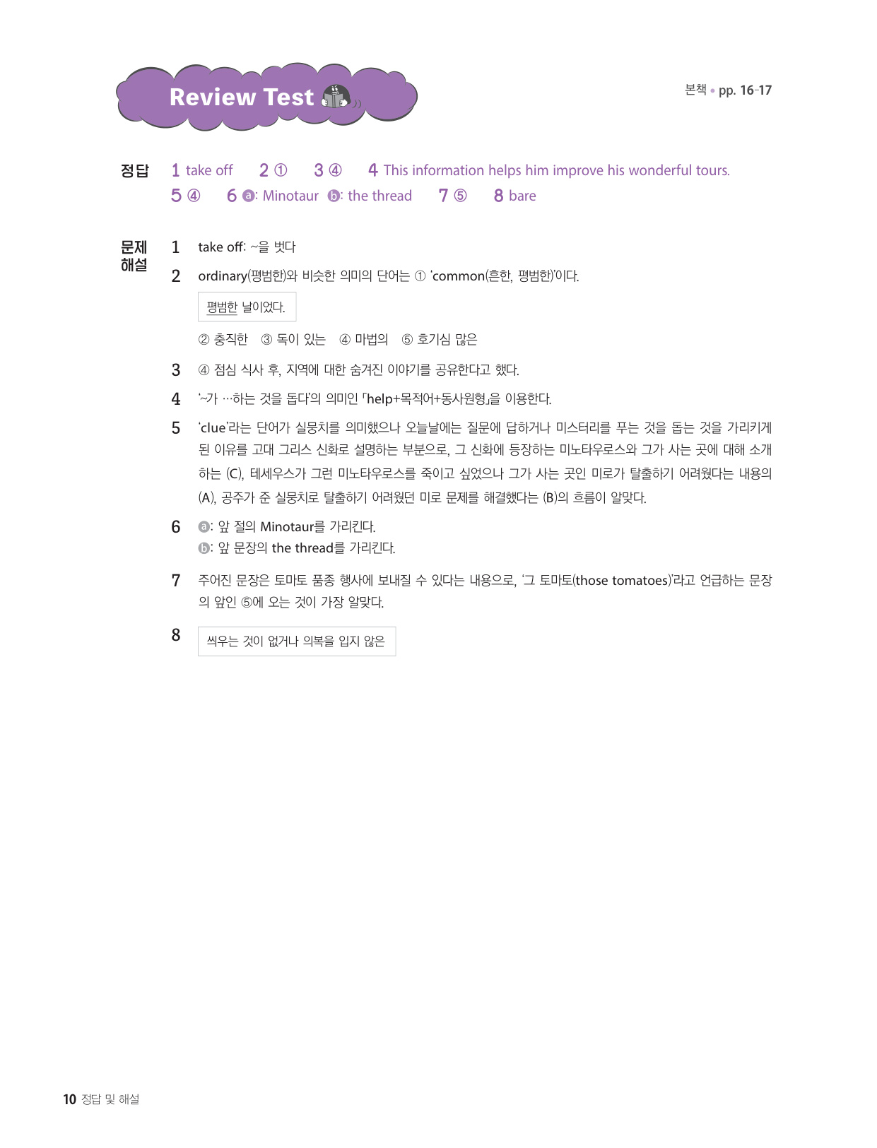 - 내신 대비 서술형 문항 및 수능 유형 문항으로 섹션을 복습하는 Review Test