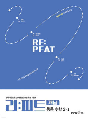리피트 개념 중등 수학 3-1 2027년 반복 학습으로 실력을 완성하는 개념 기본서 2022 개정 교육과정 반영 답지 입니다.