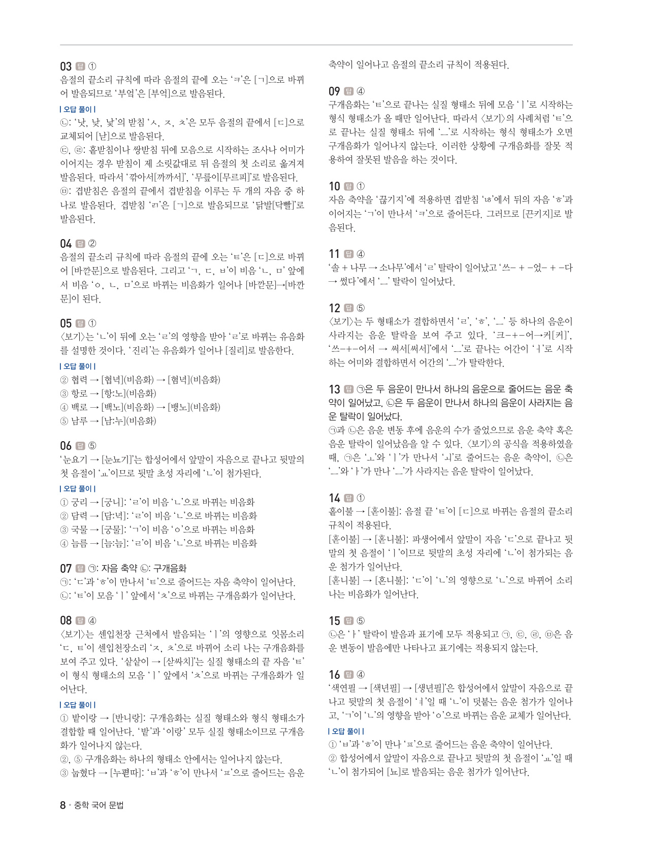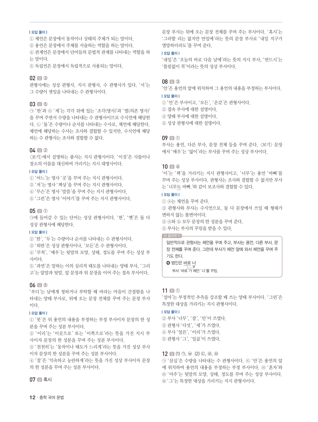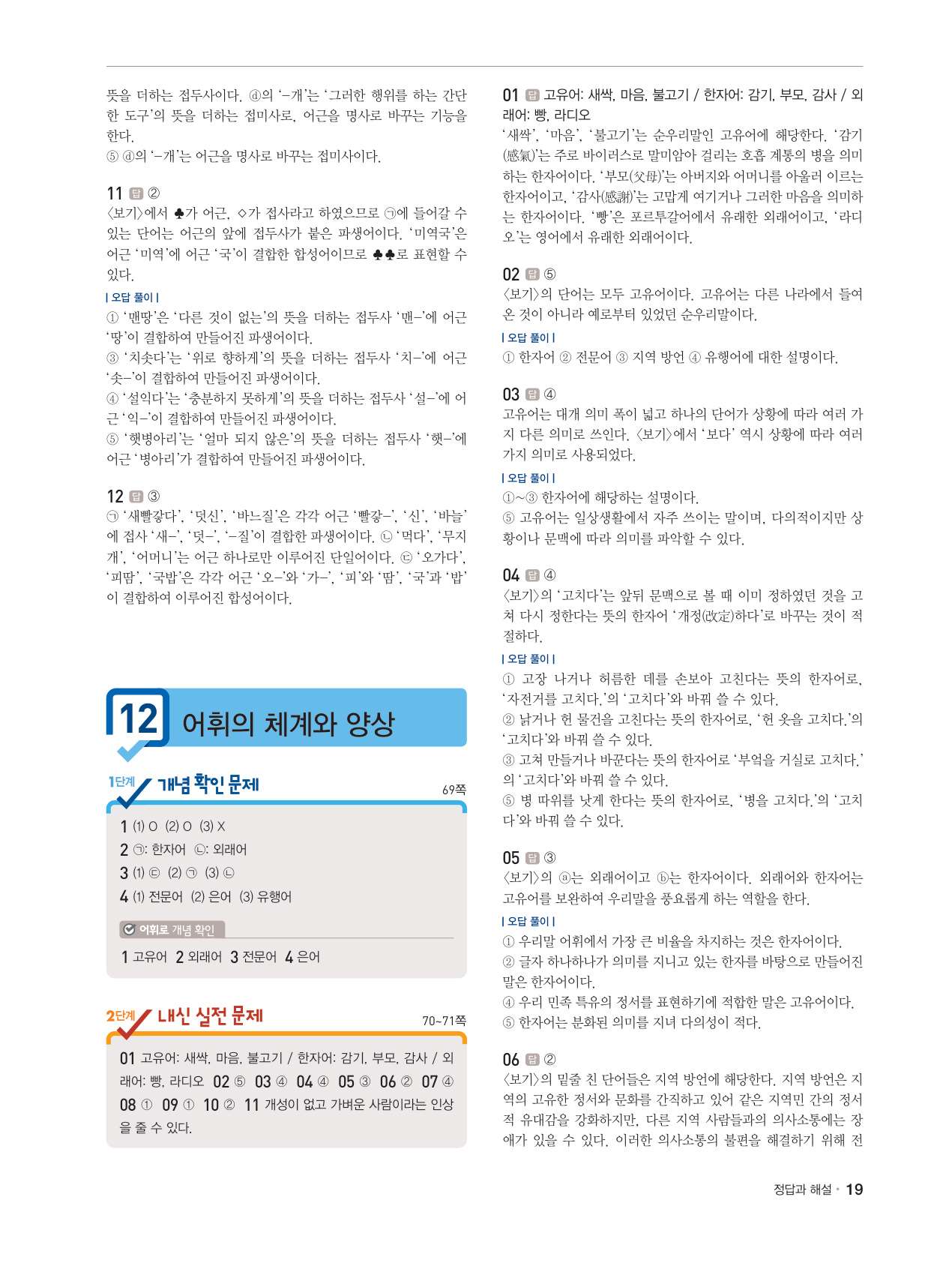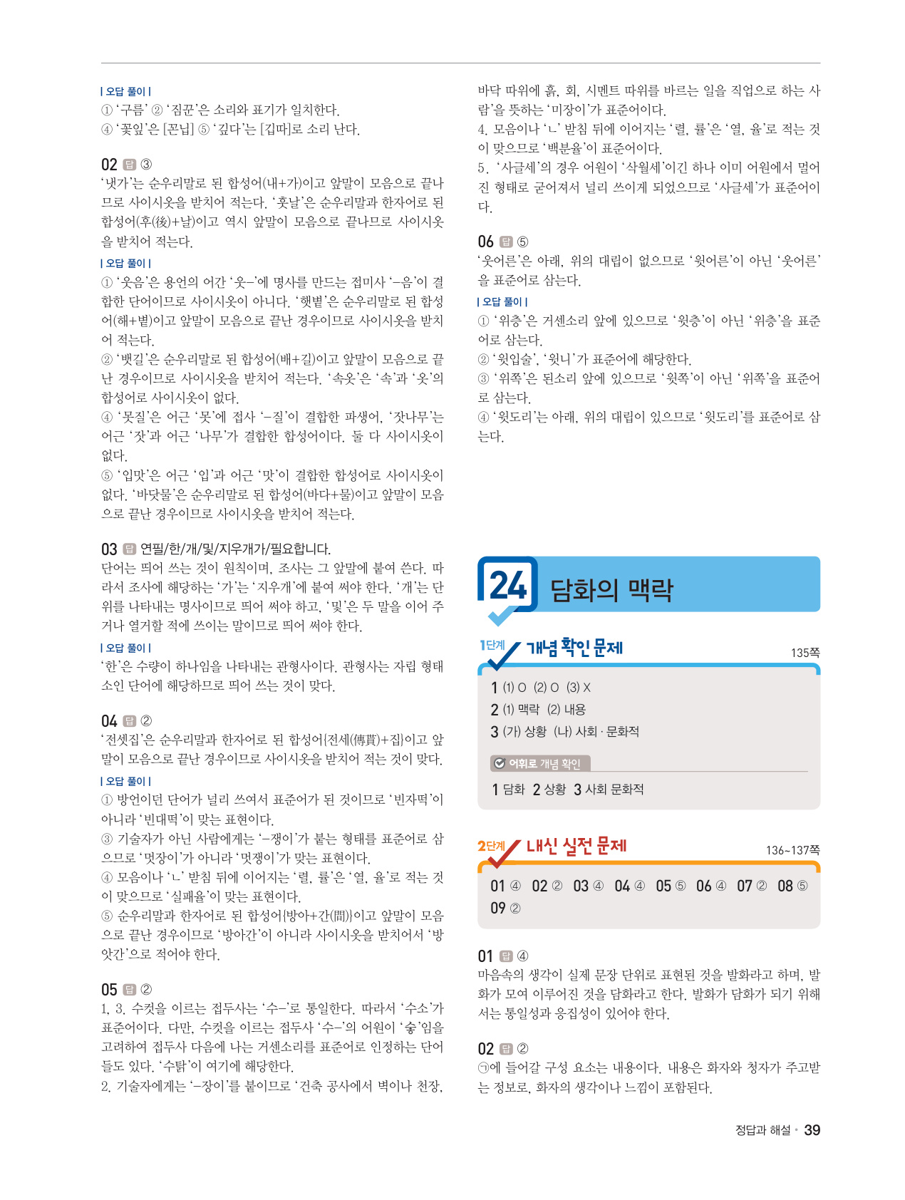 : 간단한 개념 확인 문제부터 실전 대비를 위한 내신 실전 문제, 심화 학습을 위한 통합형 문제를 단계별로 수록하였습니다. 중학교 내신 유형뿐만 아니라 학업성취도 평가, 수능 기출 문제까지 수록하여 다양한 문제를 풀어 보면서 앞서 이해한 개념을 적용해 볼 수 있도록 하였습니다.