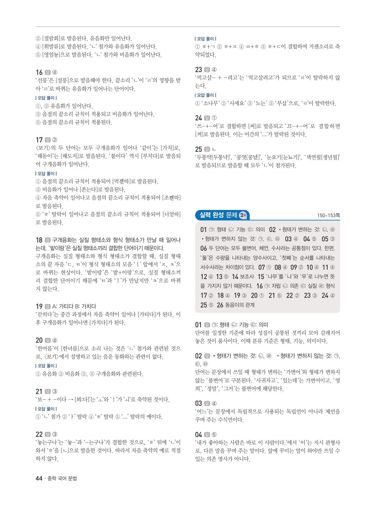 · 단원별 종합 문제인 '실력 완성 문제' 제공