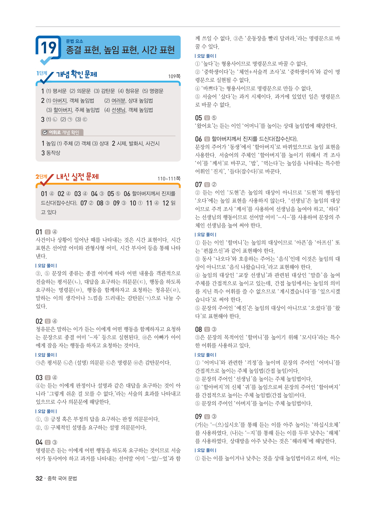 19 Ⅰ문법 요소Ⅰ 종결 표현, 높임 표현, 시간 표현