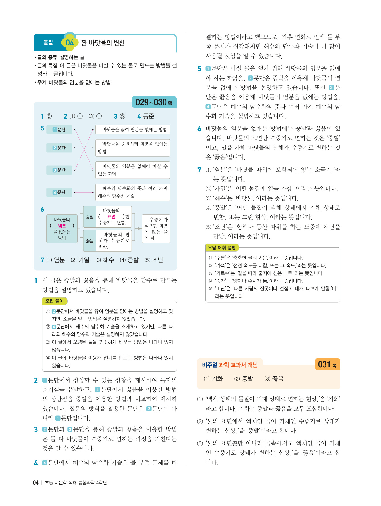 개념만으로 이해하는 과학 교과 학습은 지루합니다. 아이들이 흥미를 가질 만한 과학 원리를 바탕으로 지문을 제시하고, 그 현상과 관련 있는 교과 개념을 제시하였습니다. 글에 나타난 과학 원리 속에서 연계된 교과 개념을 찾으며 교과 개념을 자연스럽게 학습할 수 있도록 구성하였습니다.