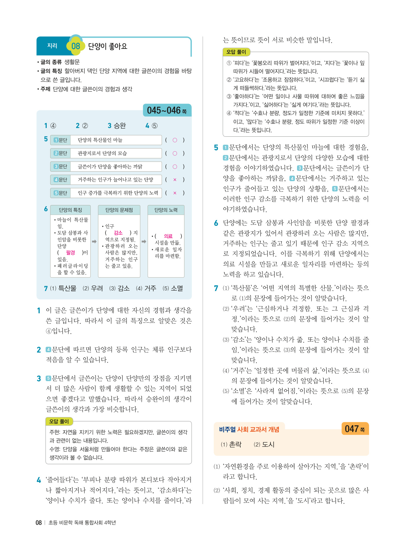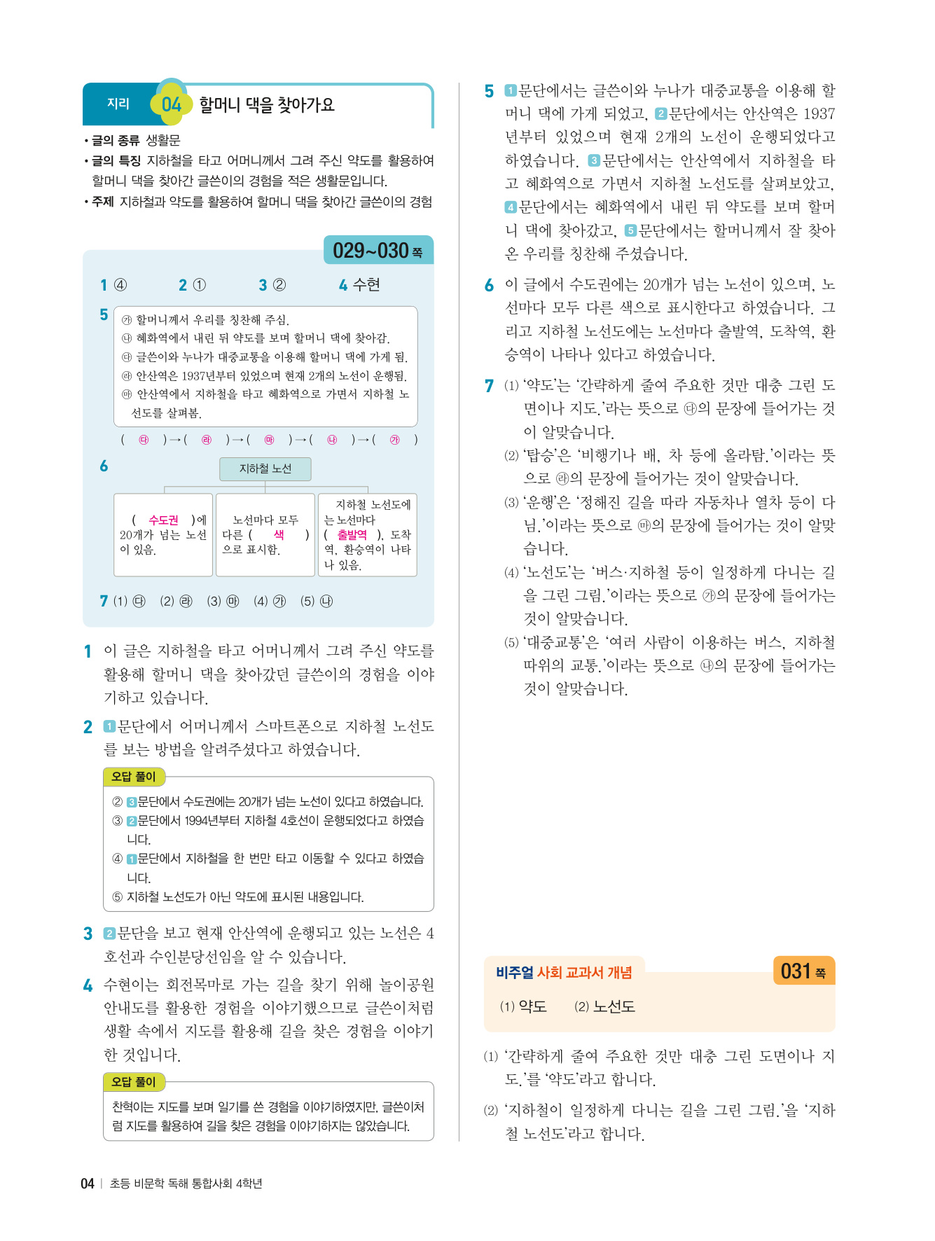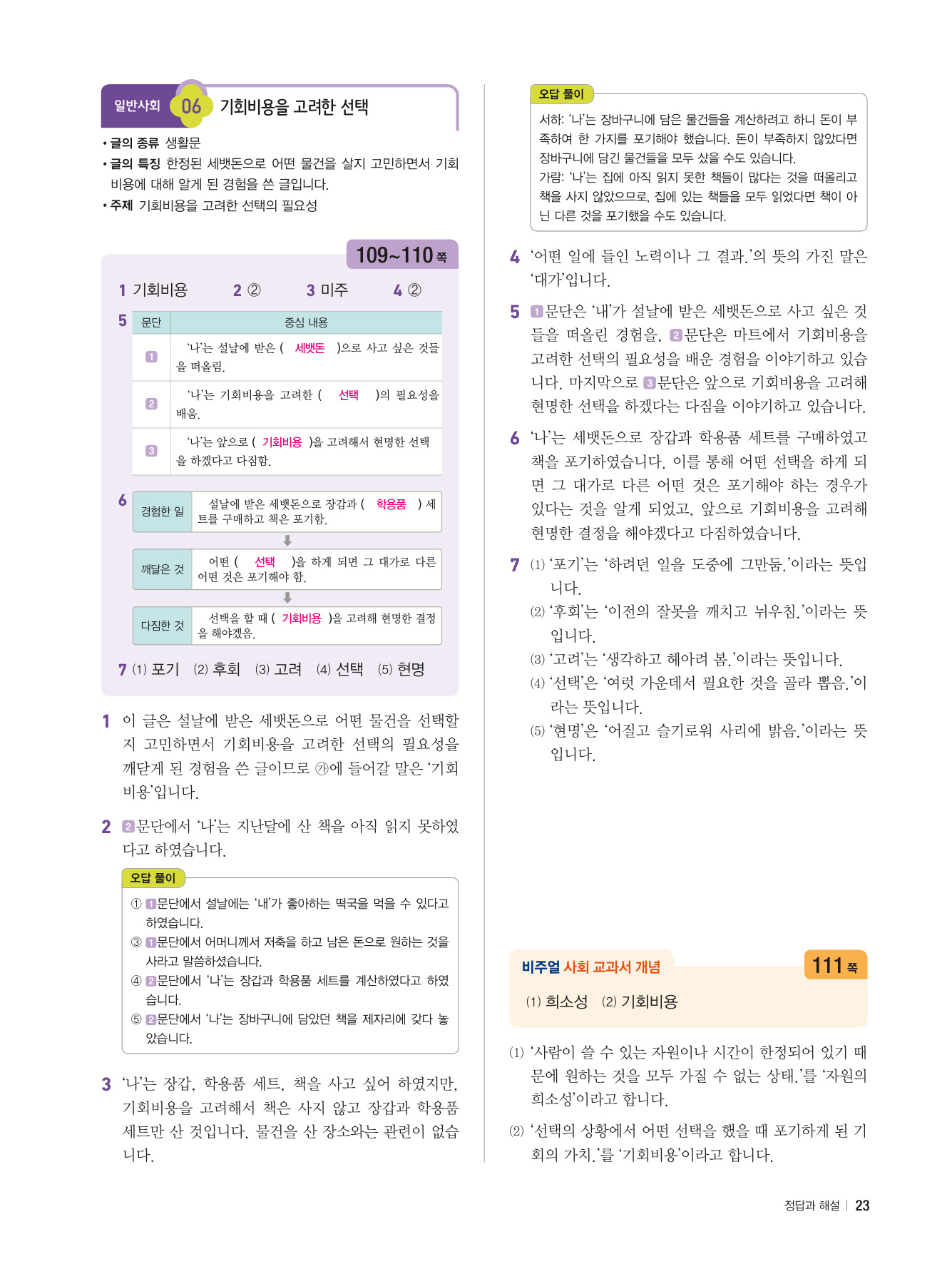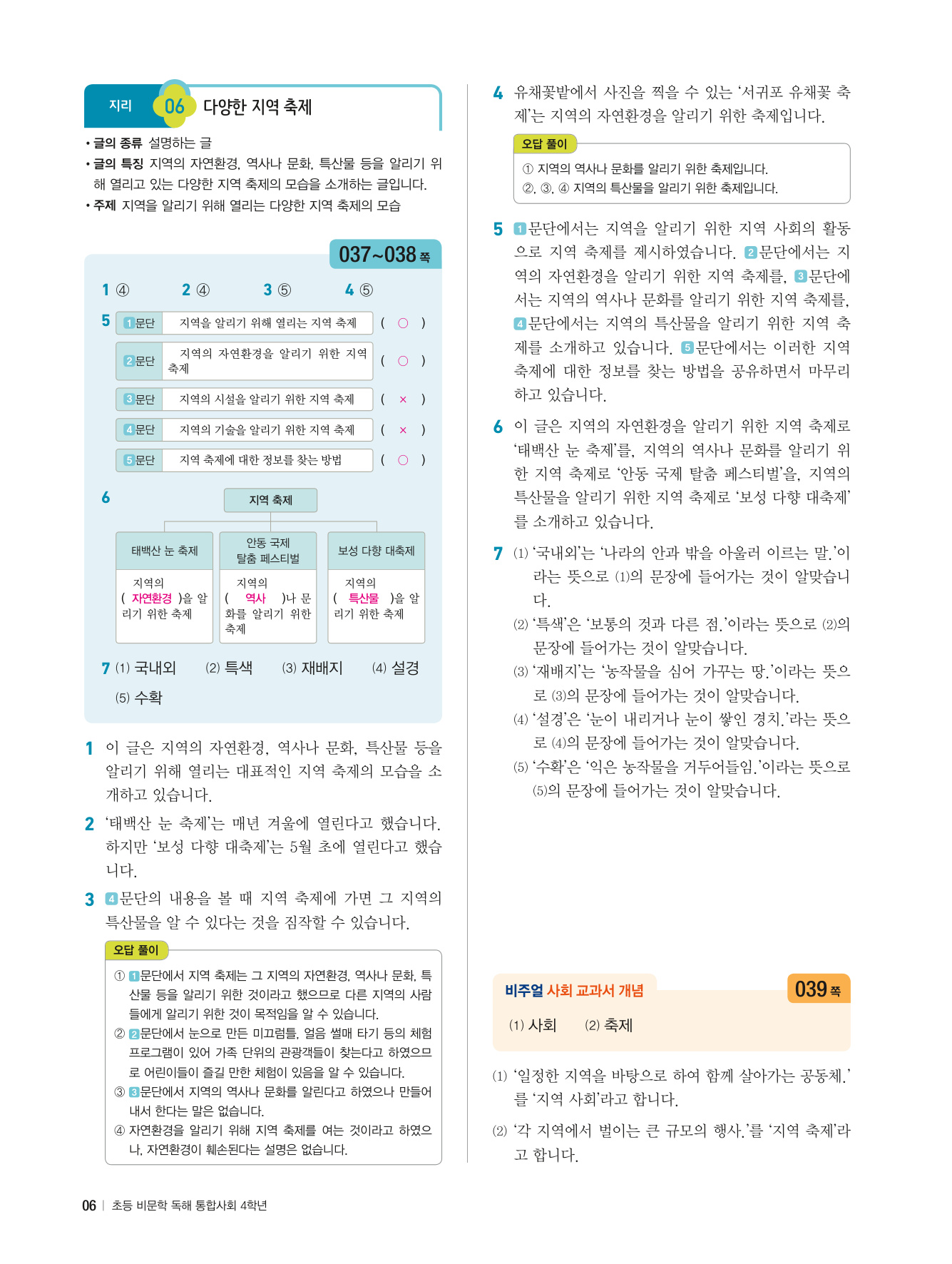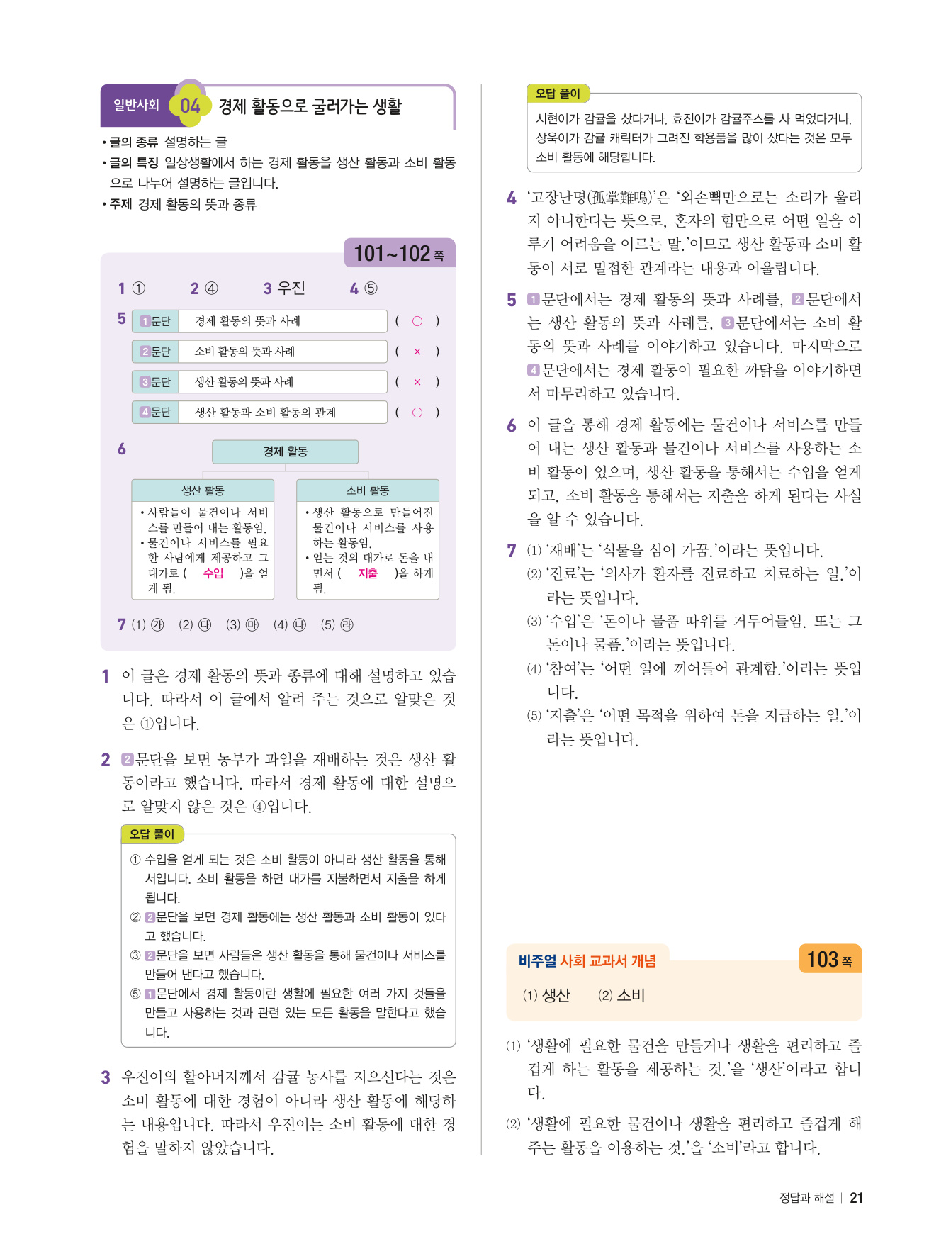 개념만으로 이해하는 사회 교과 학습은 지루합니다. 아이들이 흥미를 가질 만한 최신 사회 현상을 바탕으로 지문을 제시하고, 그 현상과 관련 있는 교과 개념을 제시하였습니다. 글에 나타난 사회 현상 속에서 연계된 교과 개념을 찾으며 교과 개념을 자연스럽게 학습할 수 있도록 구성하였습니다.
