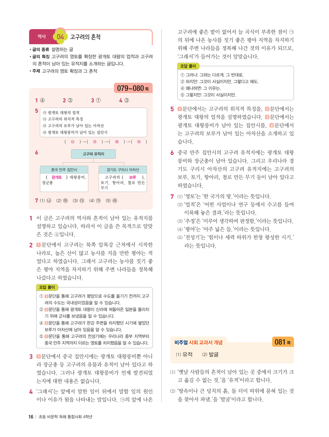 해당 학년에서 배우는 교과 개념을 글과 그림으로 구성하여 효과적으로 이해할 수 있도록 하였습니다. 교과 개념을 압축적으로 제시한 이미지를 통해 글과 연결된 교과 개념을 한눈에 이해할 수 있고, 교과 개념설명에 대해 설명한 글을 읽으면 심화 학습을 할 수 있습니다.