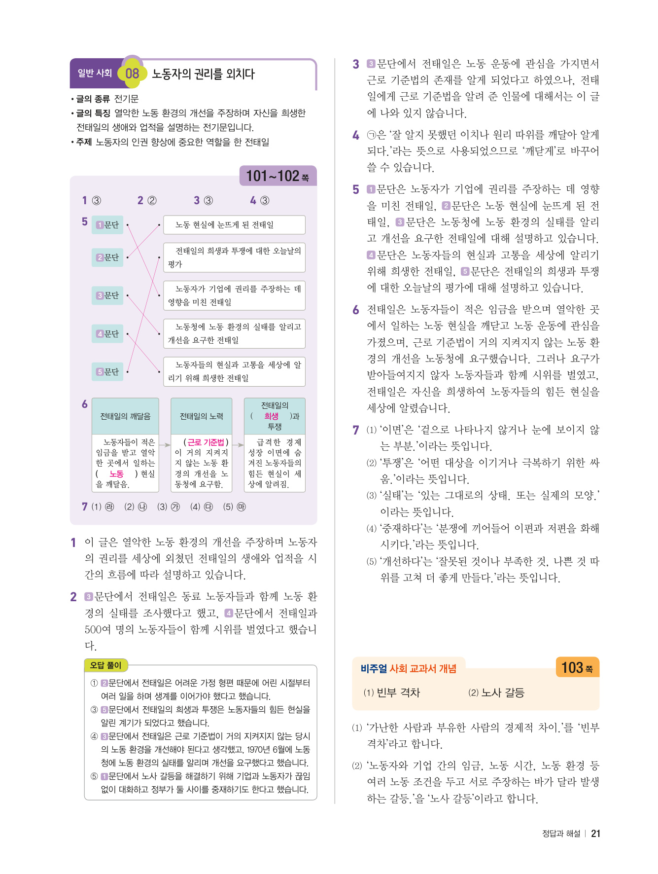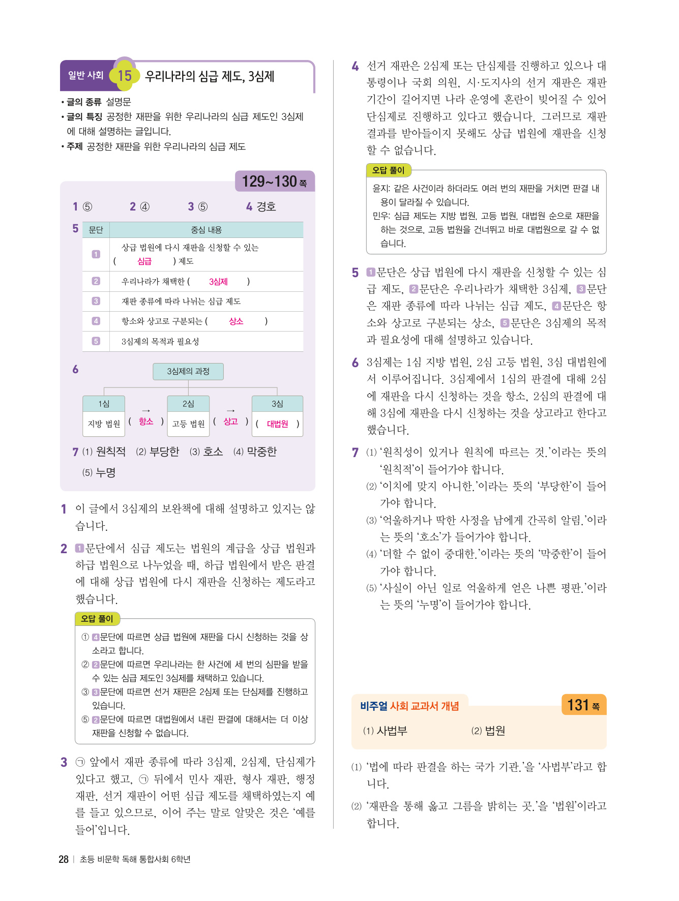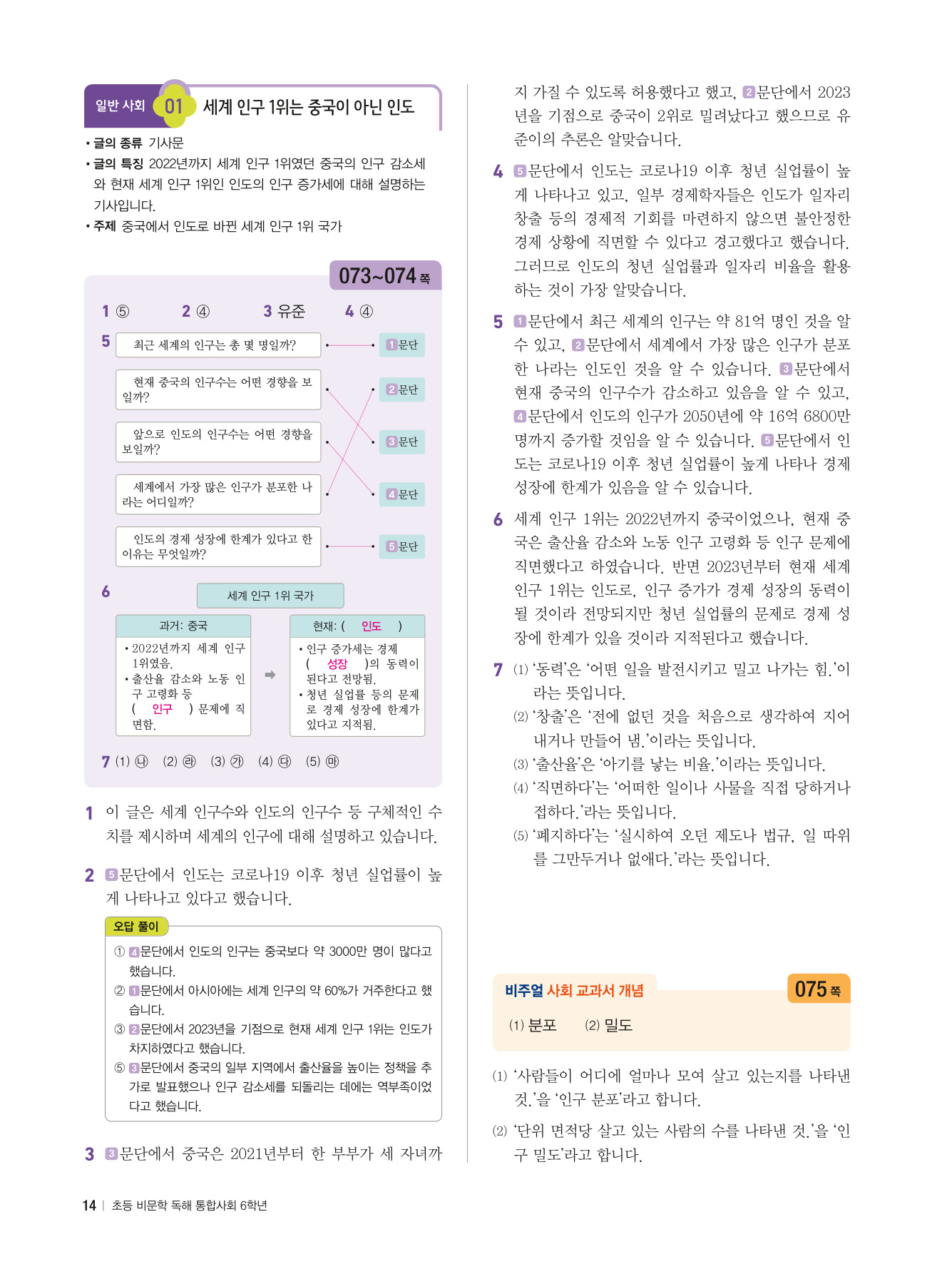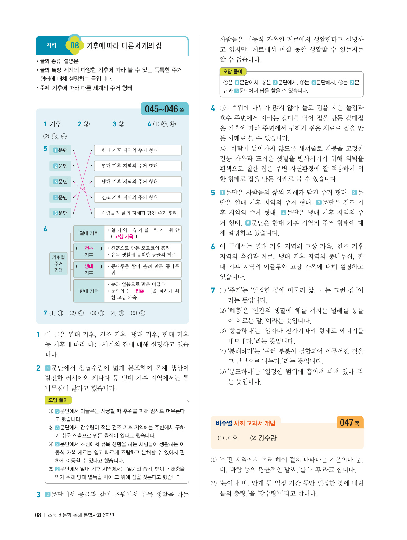 개념만으로 이해하는 사회 교과 학습은 지루합니다. 아이들이 흥미를 가질 만한 최신 사회 현상을 바탕으로 지문을 제시하고, 그 현상과 관련 있는 교과 개념을 제시하였습니다. 글에 나타난 사회 현상 속에서 연계된 교과 개념을 찾으며 교과 개념을 자연스럽게 학습할 수 있도록 구성하였습니다.