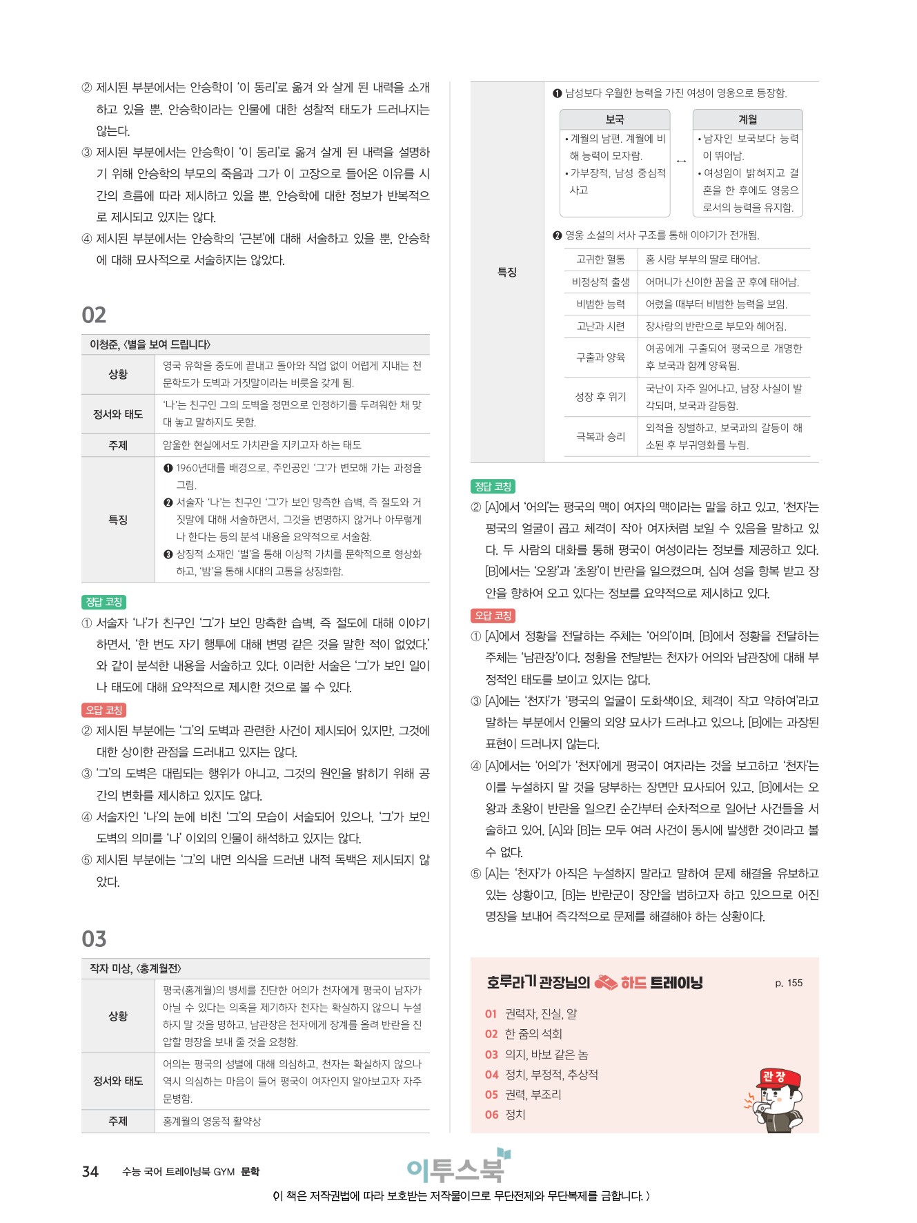_엄선한 기출 작품을 심층적으로 분석하여 기출 선지를 스스로 완성하고, 선지의 정오를 판단하는 연습을 통해 문제 분석력을 기를 수 있습니다.