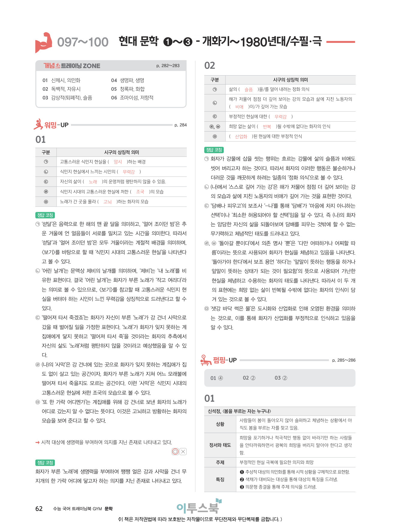 _학습한 문학 개념을 실제 기출 지문과 문제를 통해 적용하고, 하나의 문제를 온전히 분석적으로 해결하는 문제 해결력을 기를 수 있습니다.