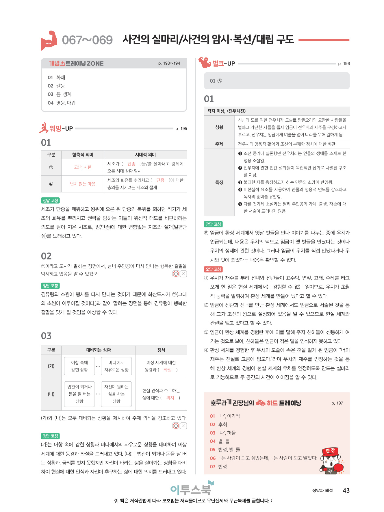 _하나의 기출 문제를 풀면서 정·오답을 구별하는 판단력을 기르고, 선지의 내용을 바탕으로 지문을 분석하며 내용을 깊이 이해할 수 있습니다.