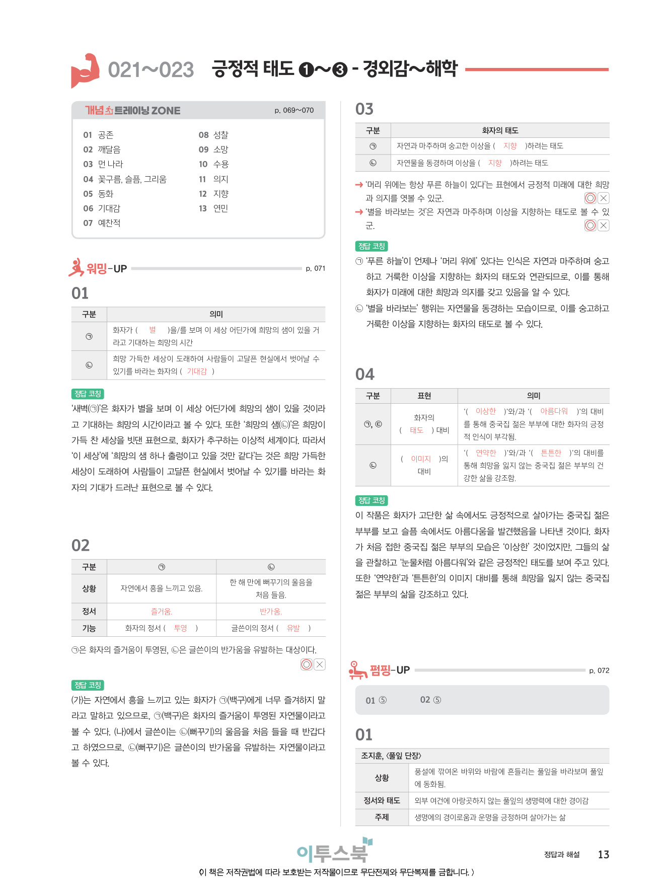021~023 긍정적 태도 (1)(경외감~동화) / (2)(만족감~예찬) / (3)(유대감~해학)