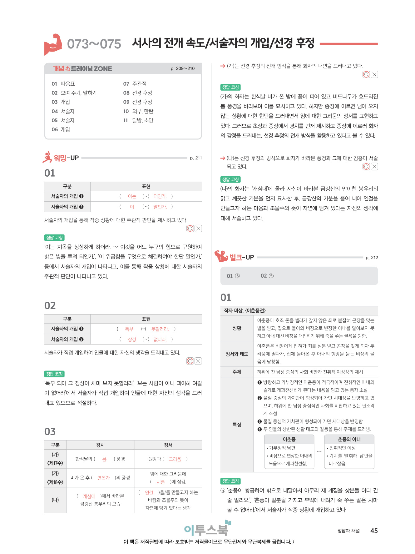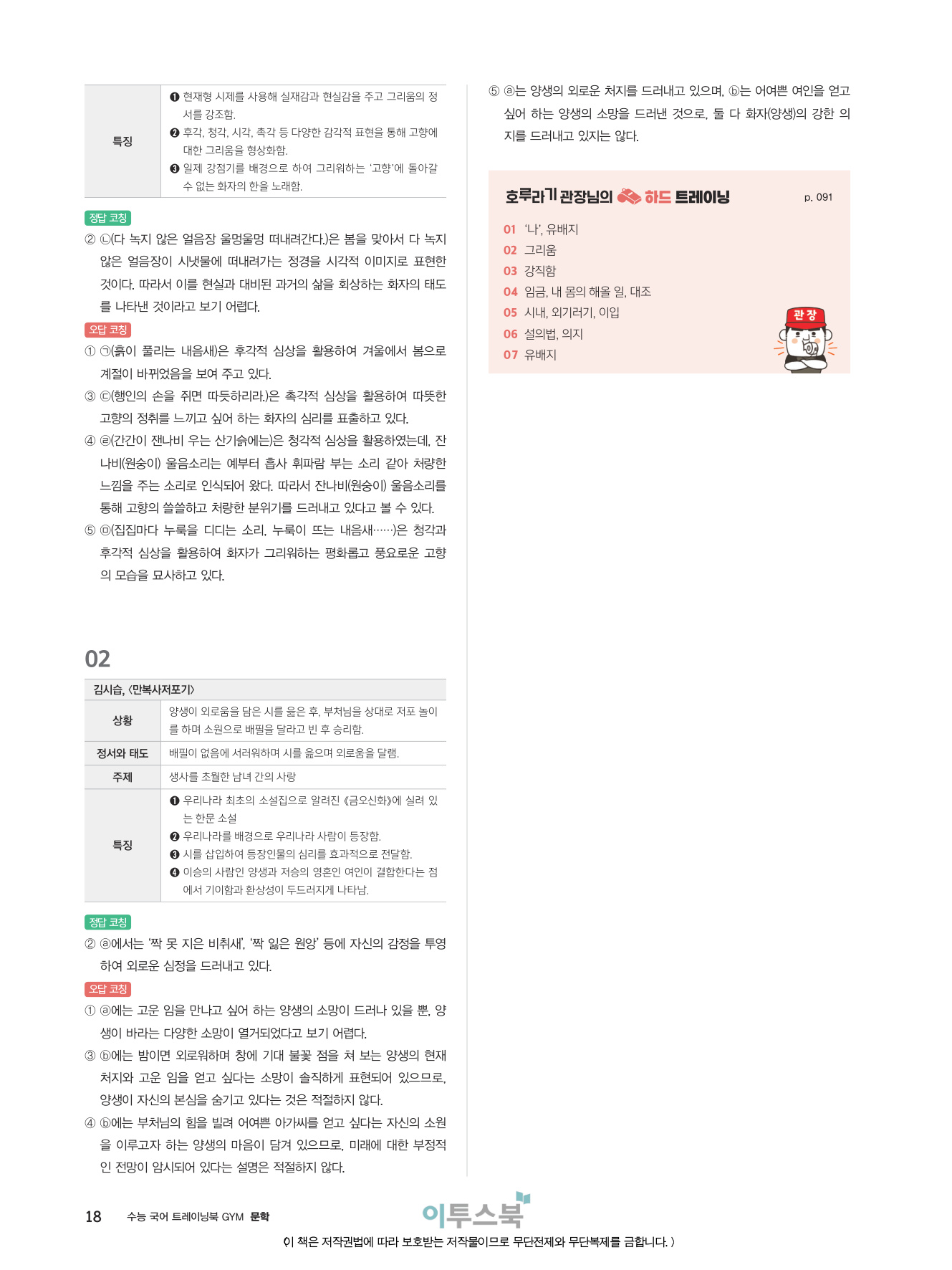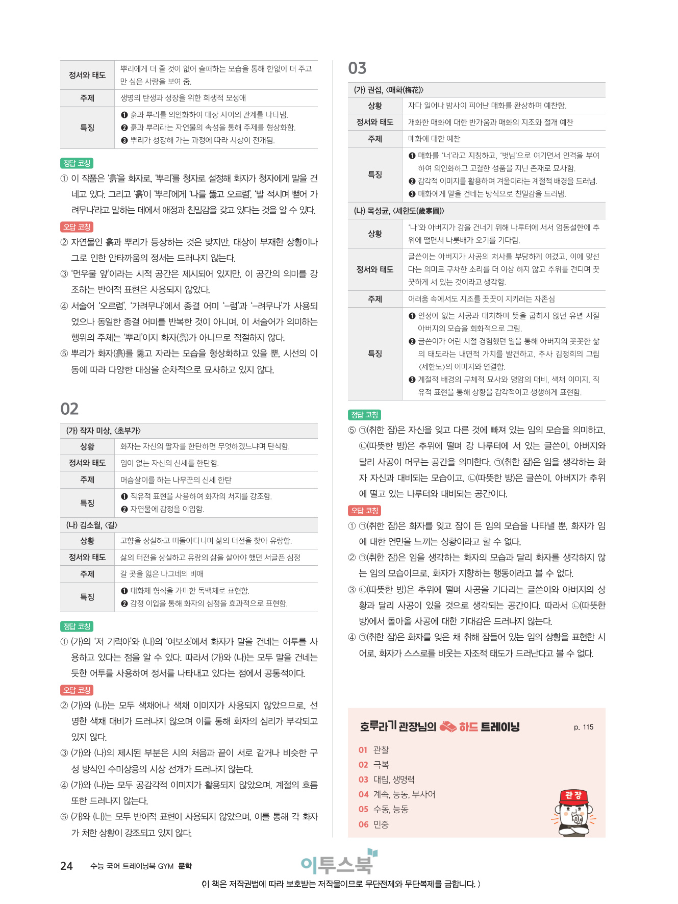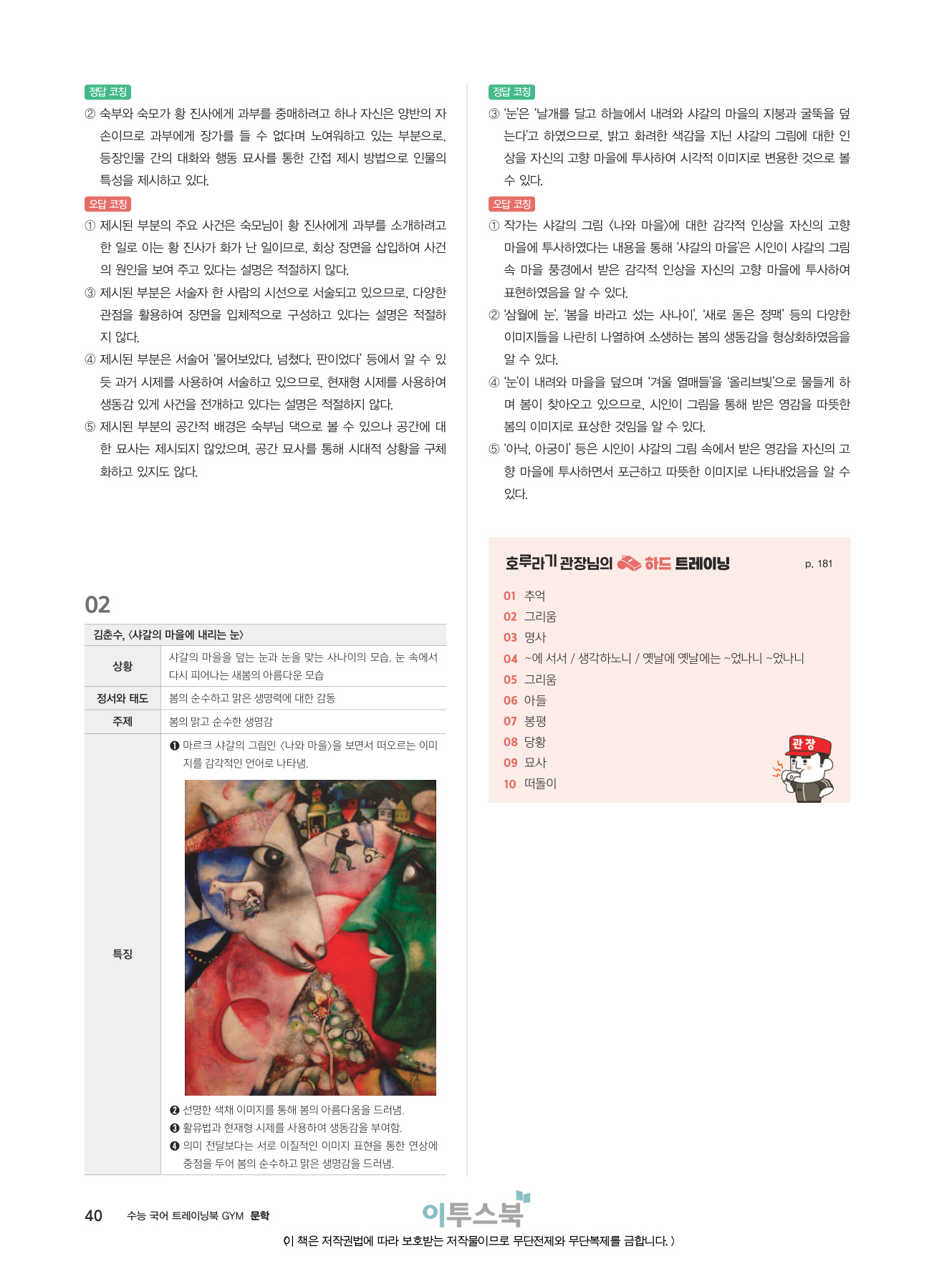 _분석적 작품 읽기 훈련을 통해 지문을 문장 단위, 장면 단위로 이해하고 표현상의 특징을 파악하는 연습을 집중적으로 할 수 있습니다.