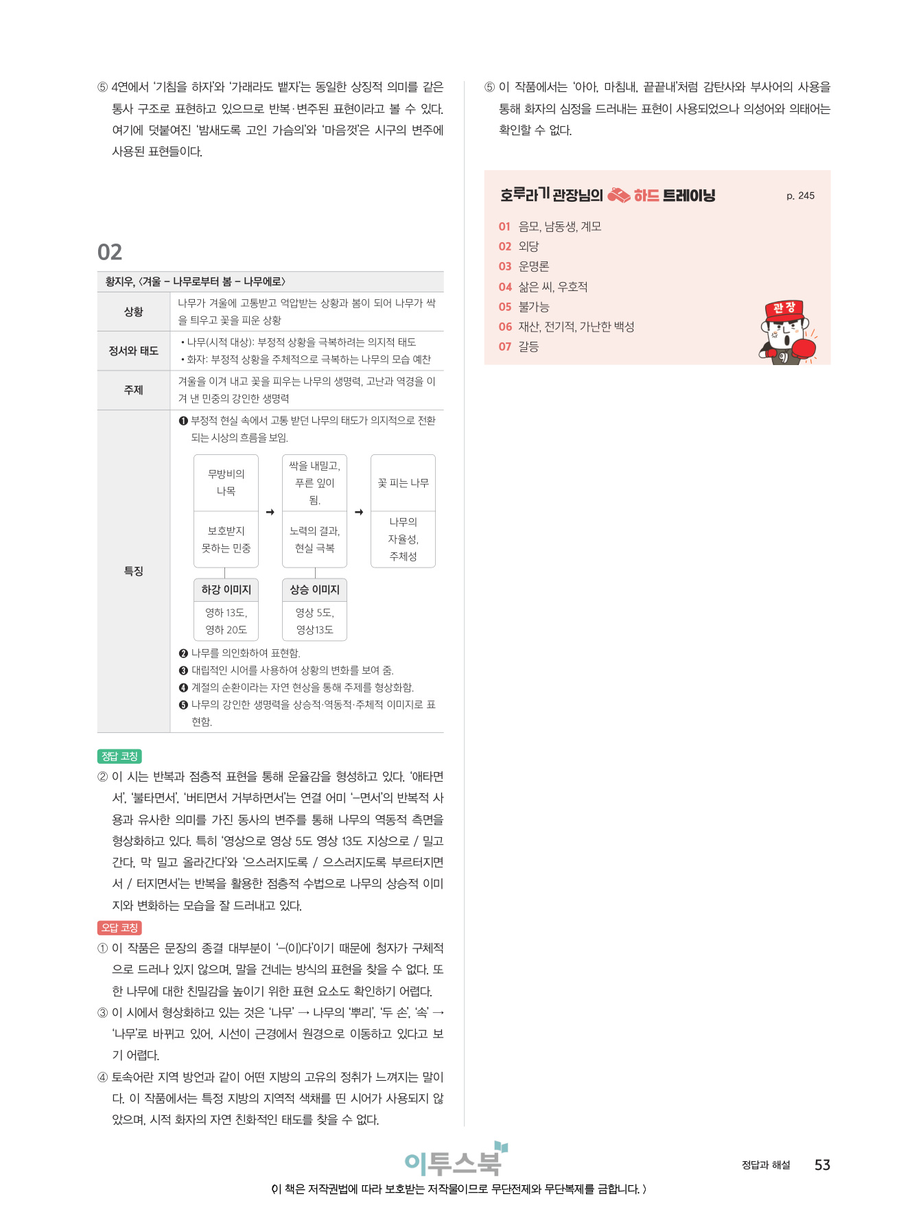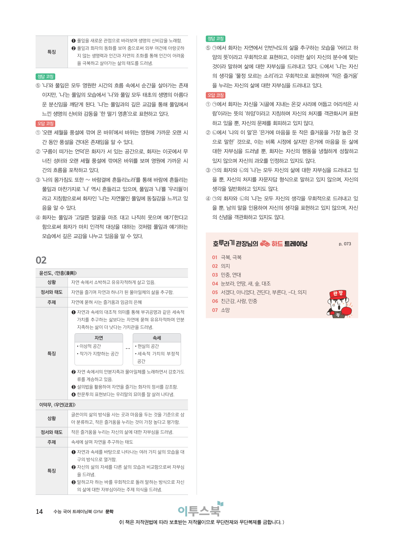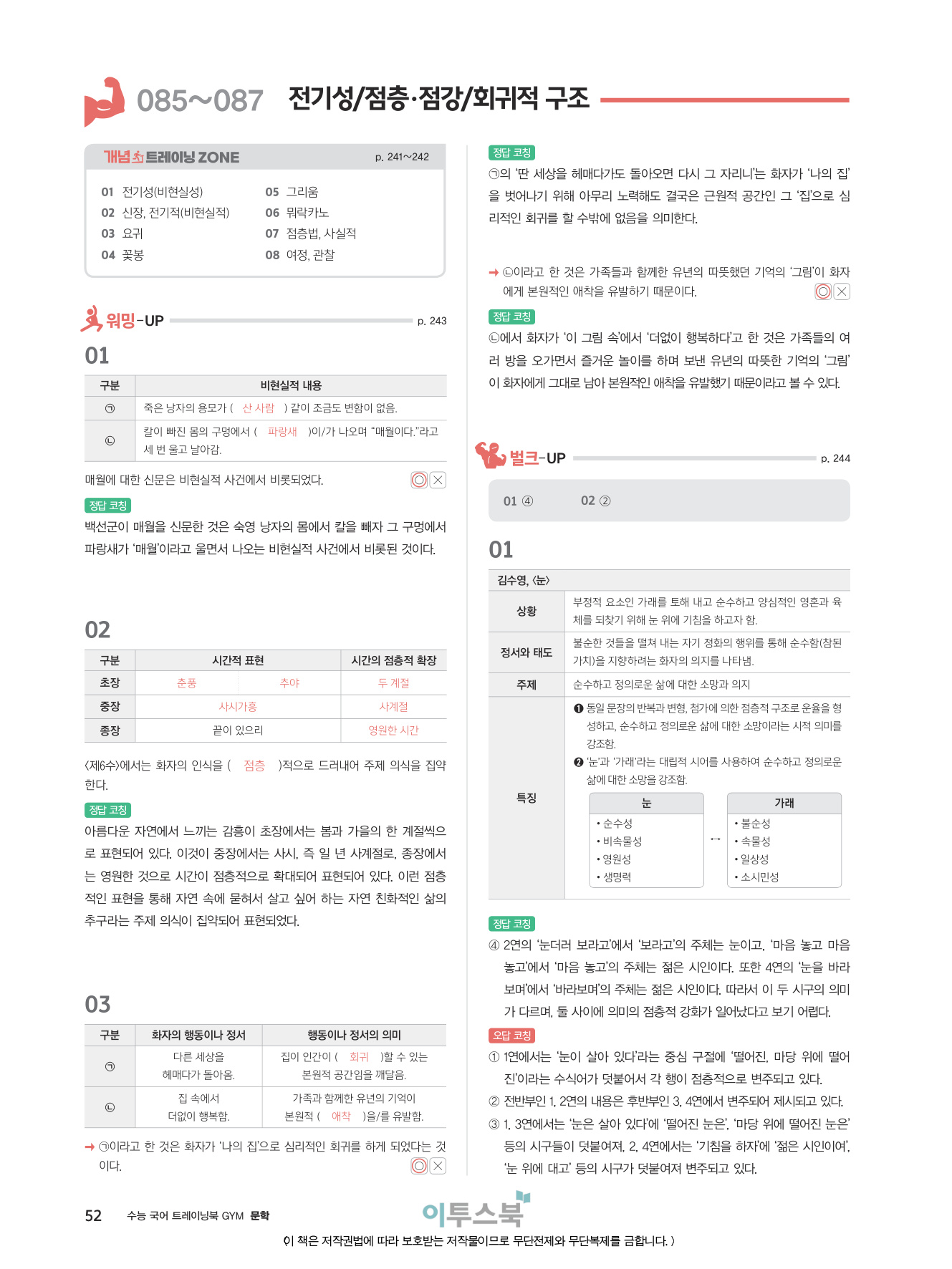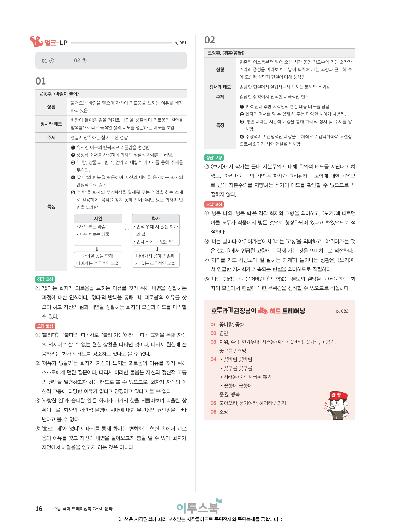 _분석적 작품 읽기 훈련을 통해 지문을 문장 단위, 장면 단위로 이해하고 표현상의 특징을 파악하는 연습을 집중적으로 할 수 있습니다.