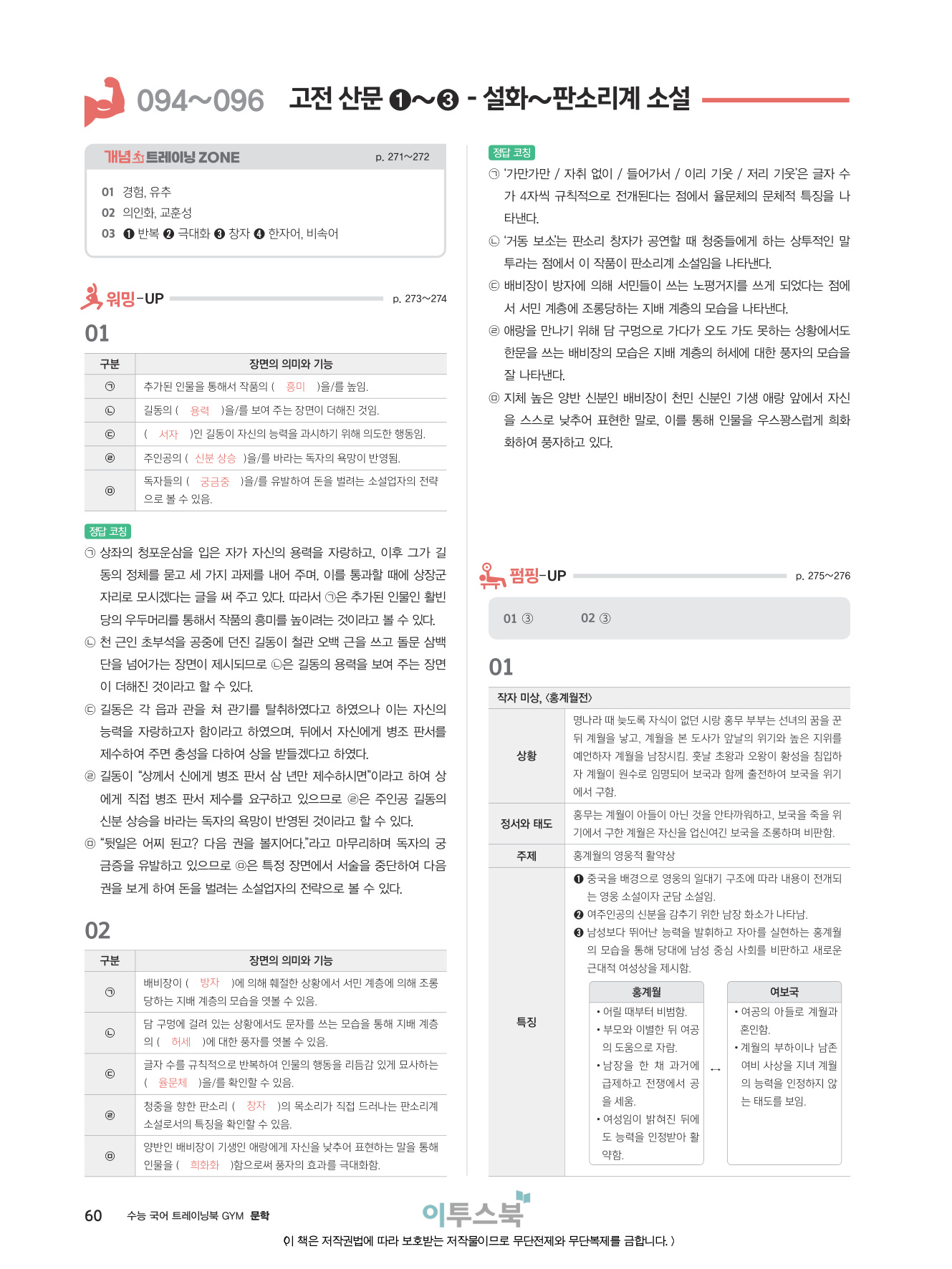 094~096 고전 산문 (1)(설화 · 가전 · 설) / (2)(영웅 · 군담소설) / (3)(판소리계 소설)