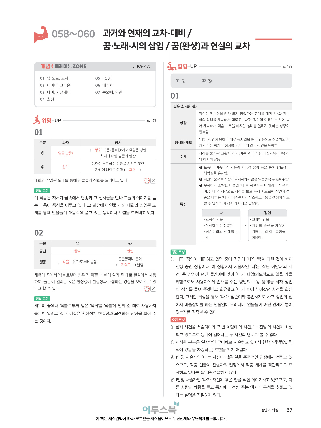 058~060 과거와 현재의 교차 · 대비 / 꿈 · 노래 · 시의 삽입 / 꿈(환상)과 현실의 교차