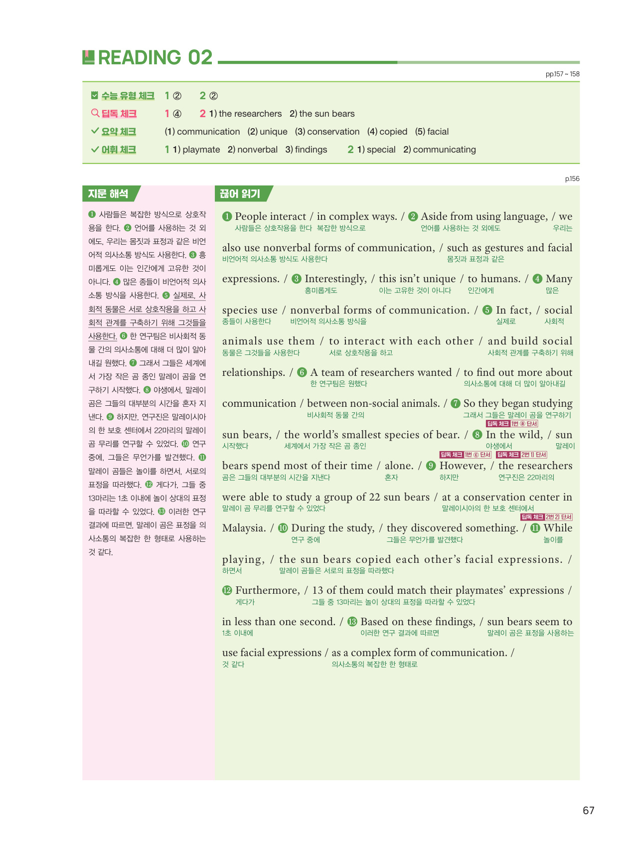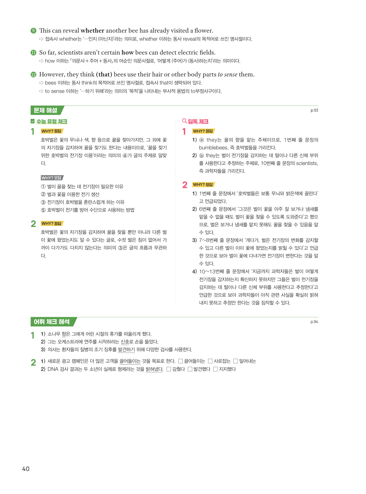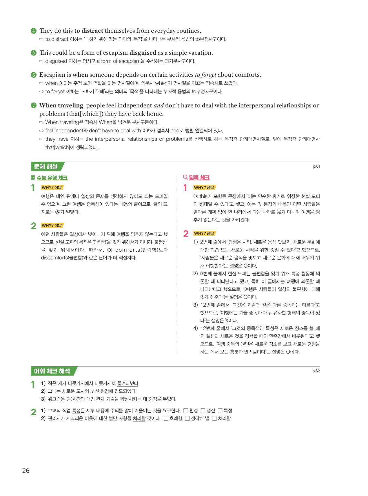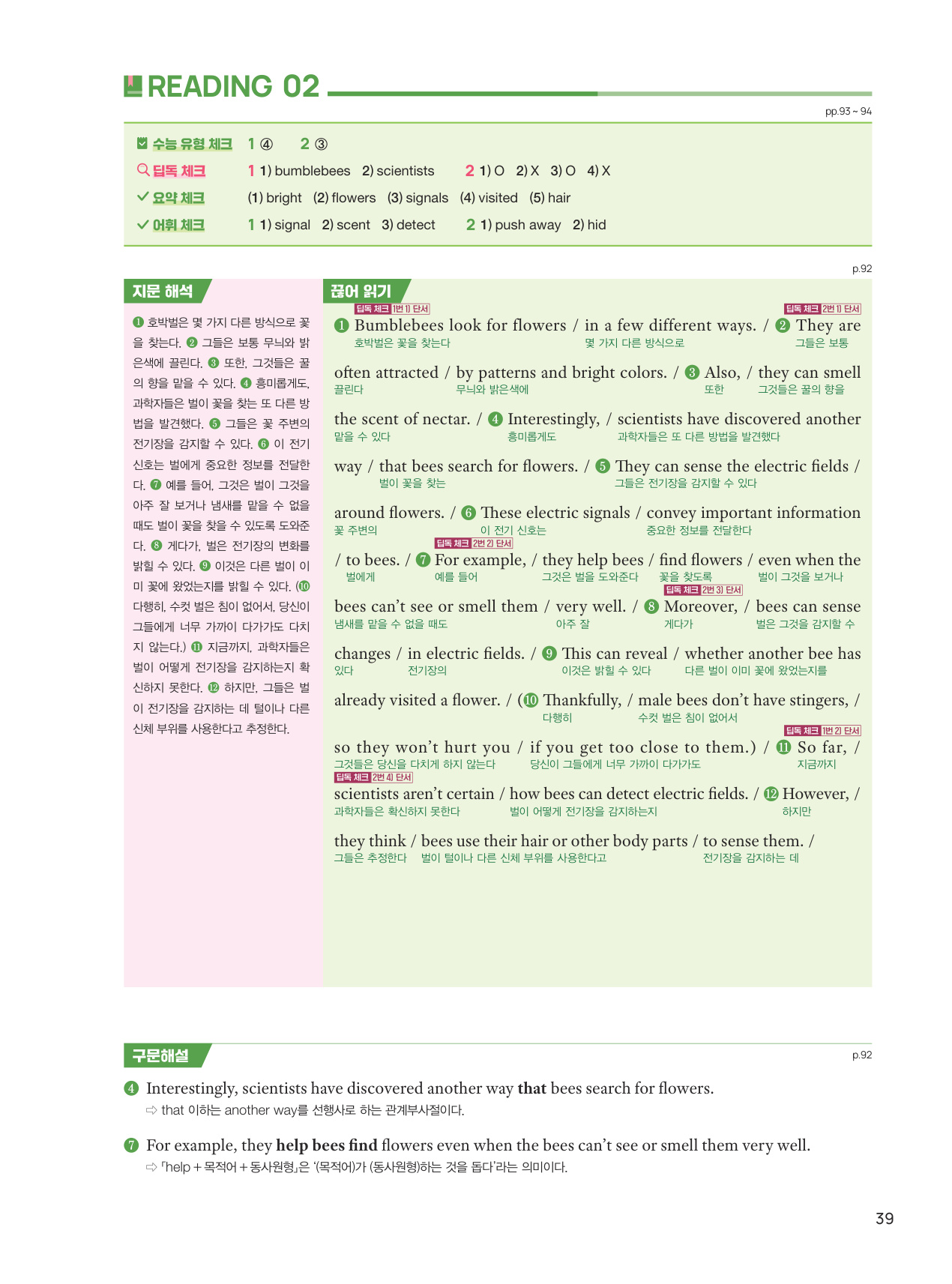 수능 영어 지문에 대한 학습자들의 최신 반응을 살펴보면 ‘해석은 되었으나, 답을 고르기 어렵다’는 응답이 많습니다. 이는 지문에 대한 제대로 된 소화과정을 거치지 못했기 때문입니다. 수능 영어 지문은 이제 “꼼꼼하고” “정확하게” 읽어야 하며, 지시하는 부분과 글쓴이의 의도를 추론하는 근거를 명확히 알아야 합니다. 수능 딥독은 학습자가 글을 제대로 소화하기 위한 코너를 곳곳에 마련했습니다. 충실히 따라와 준다면, 딥독의 과정은 체화되어 수능 영어 독해력의 기초 체력을 튼튼하게 해 줄 것입니다.